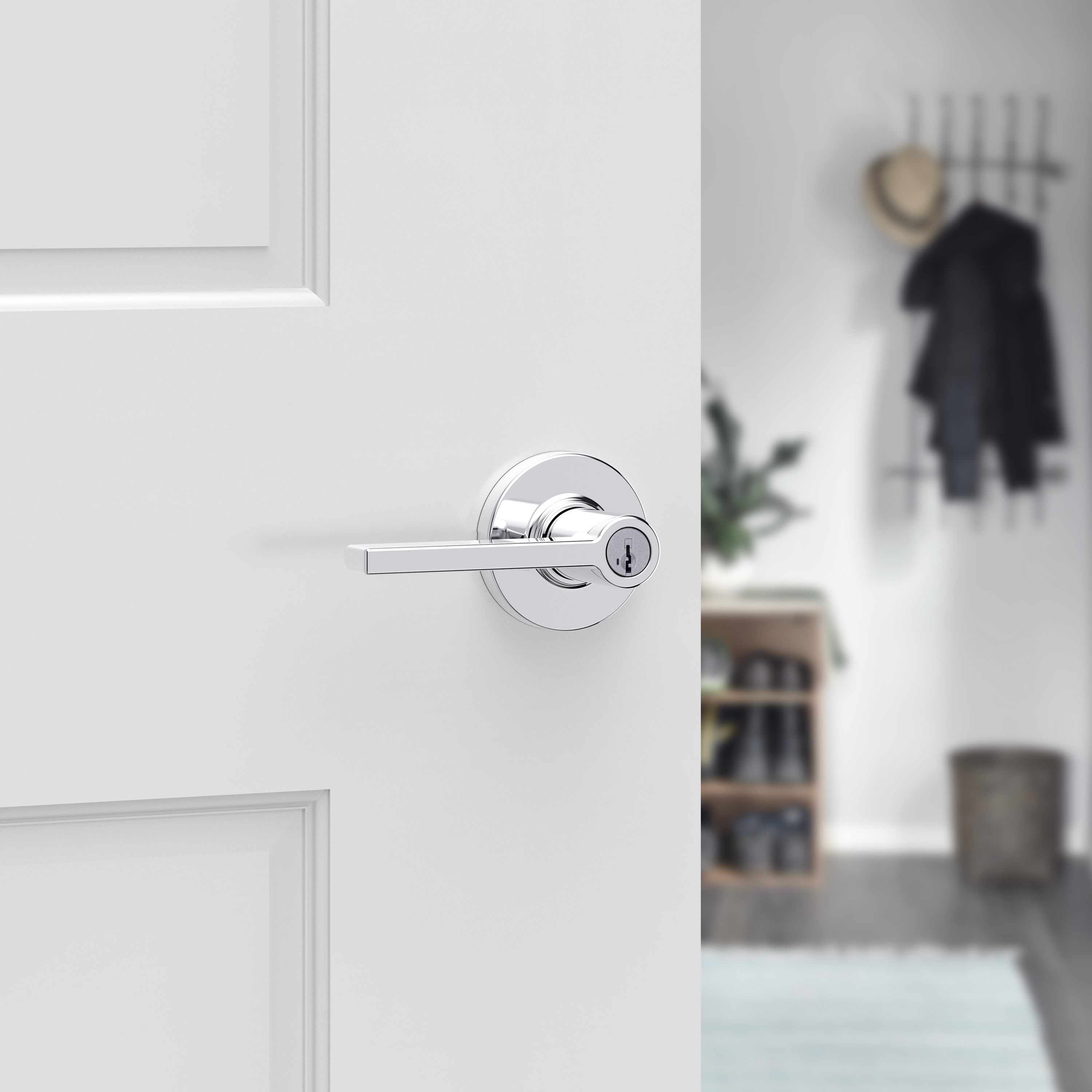 Casey Keyed Entry Lever in Polished Chrome featuring SmartKey Security