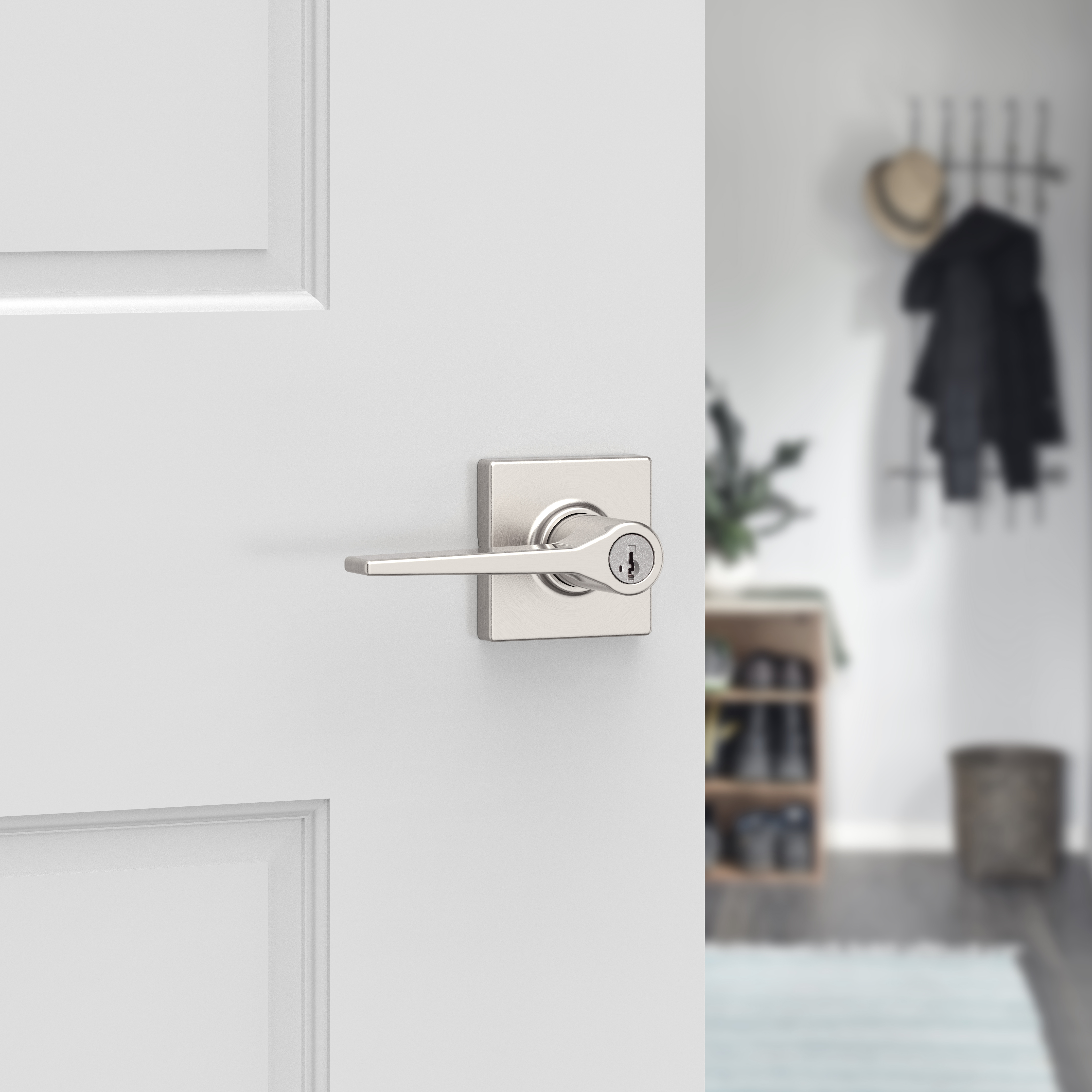 The Hollis lever combines the strength and quality of a Kwikset door lock in a stylish and