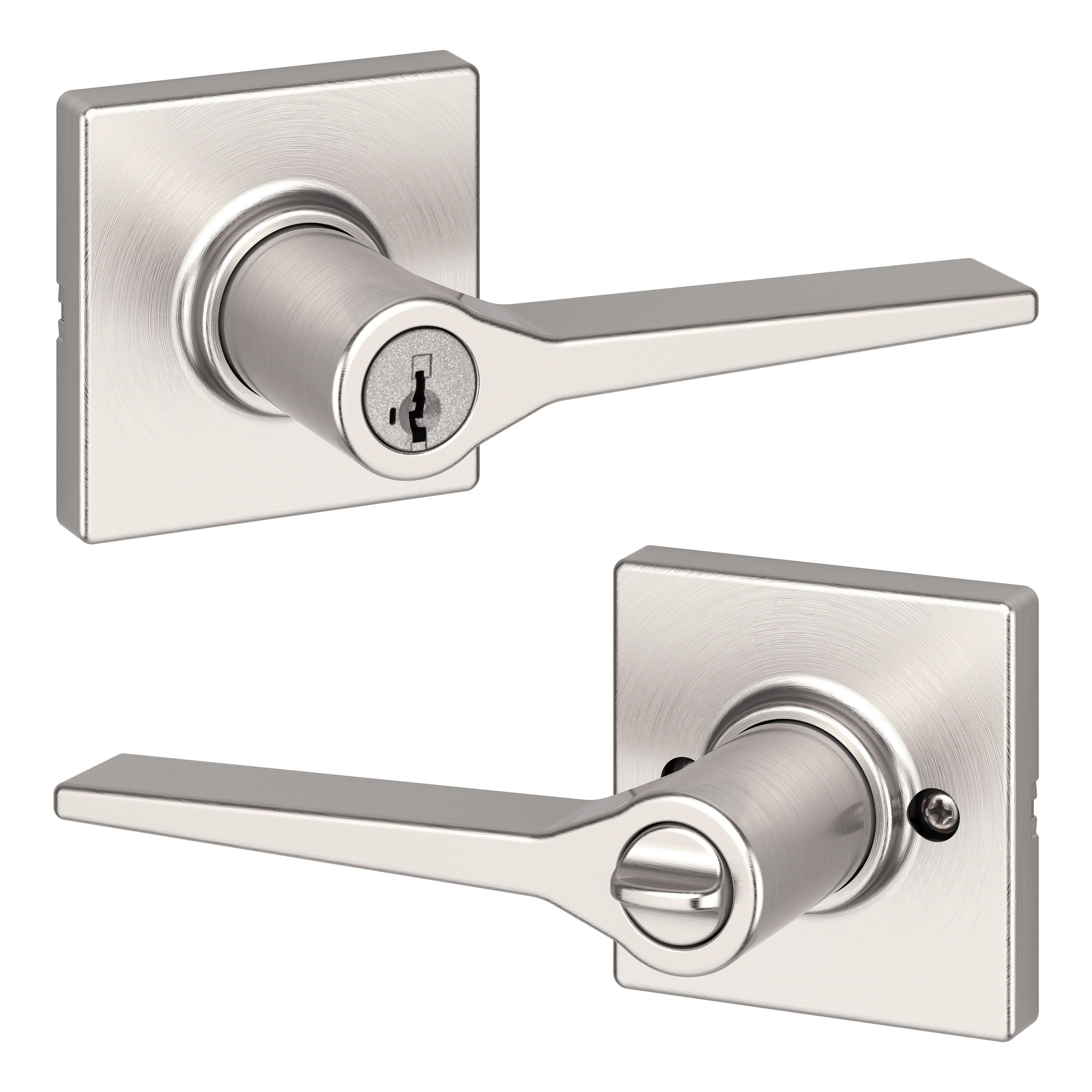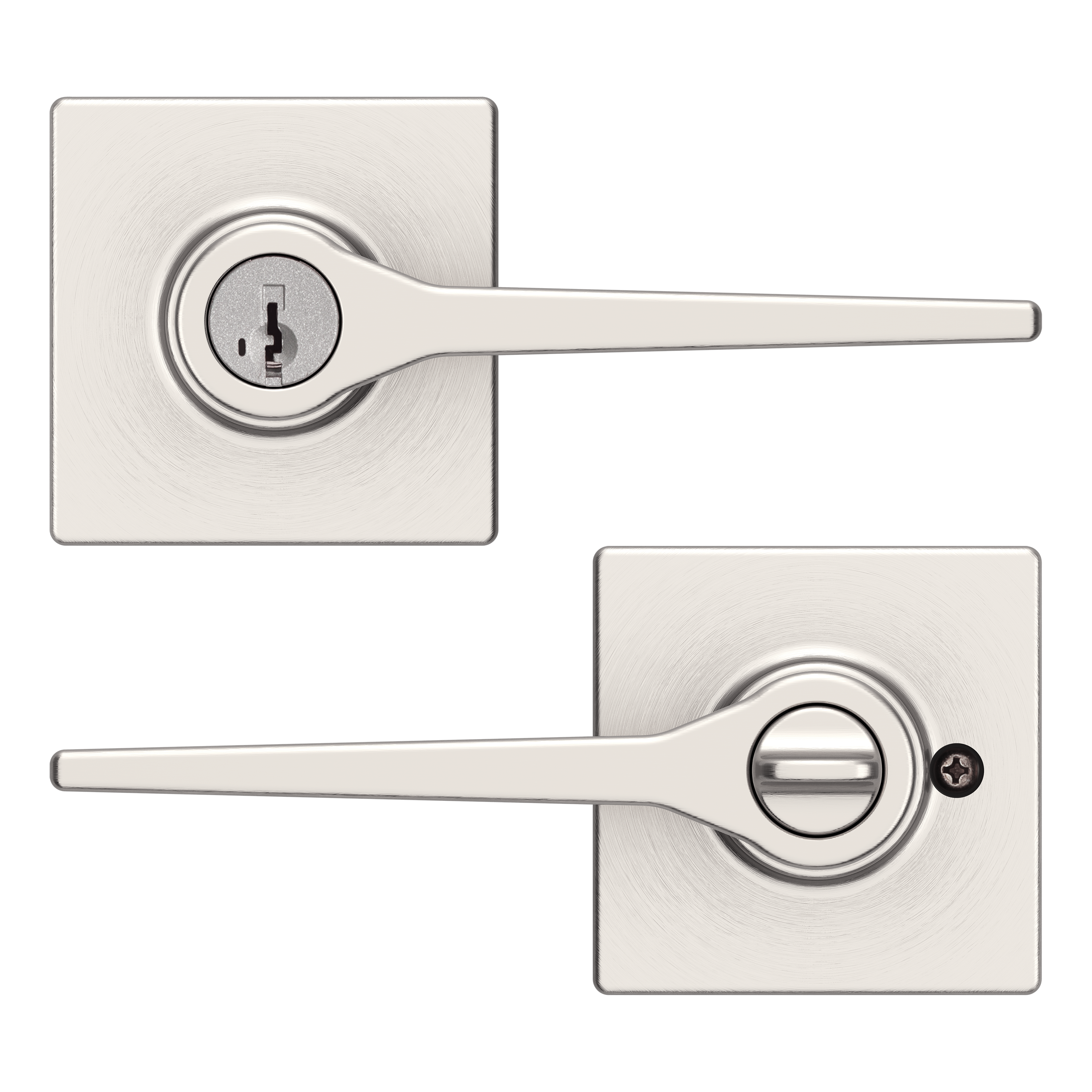 Box Includes: Box Includes entry levers, Adjustable Latch with round and square front options or drive-in collar, round corner strike, SmartKey tool, 2 Kwikset keys, designer rosette, screws and Allen wrench