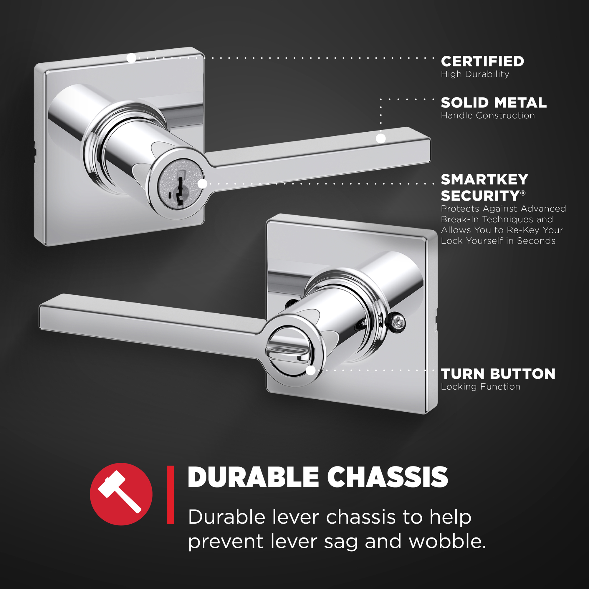 Casey Keyed Entry Lever featuring SmartKey Security™ in Polished Chrome 4 Pack
