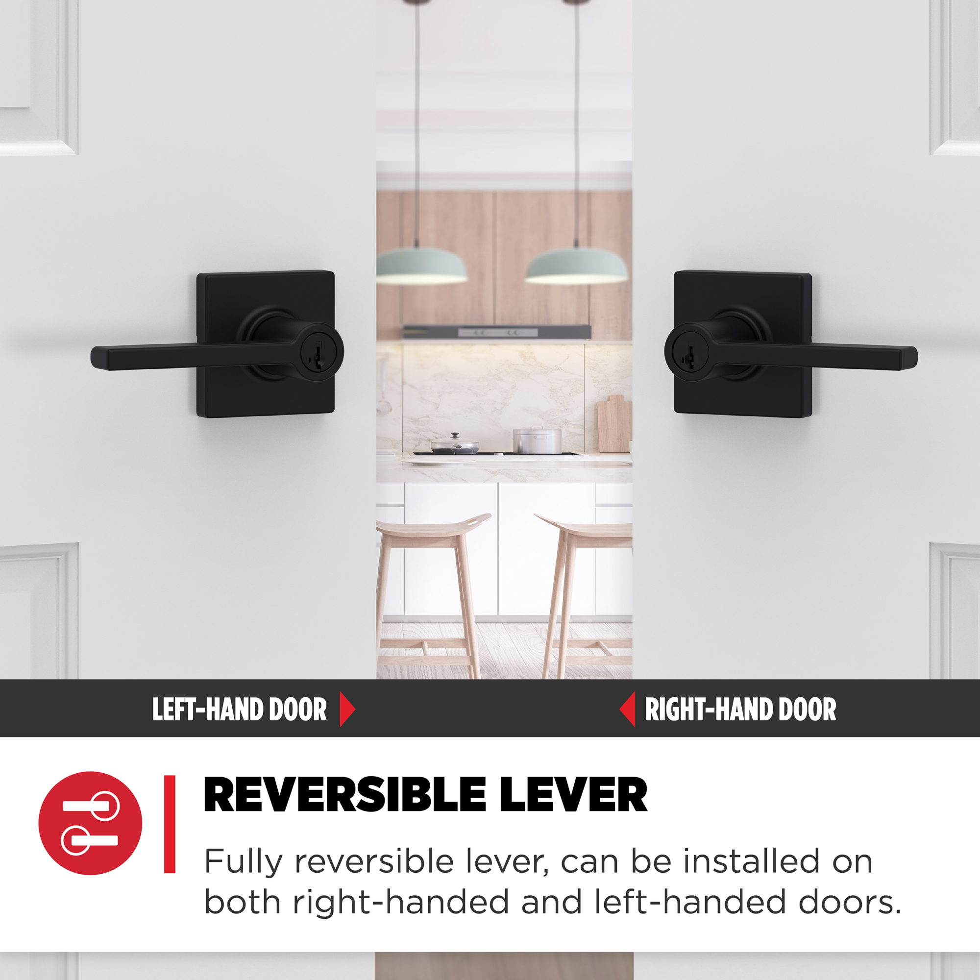 EASY INSTALL REVERSIBLE LEVER: Do it yourself, installs in minutes with just a screwdriver. Reversible handle for left- or right-handed doors, detailed directions provided