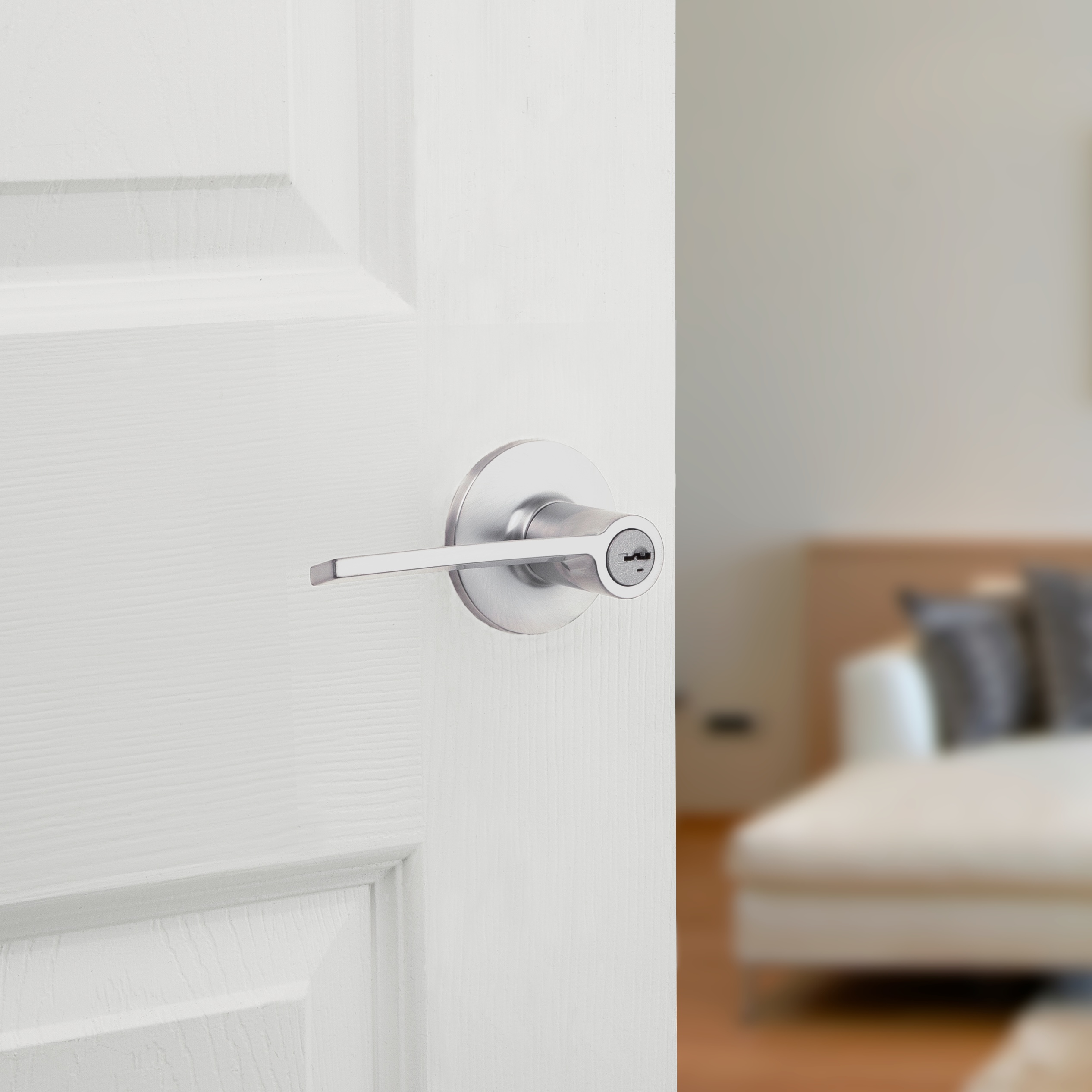 Palmina Right-Handed Keyed Entry UL Lever featuring SmartKey Security™ in Satin Chrome