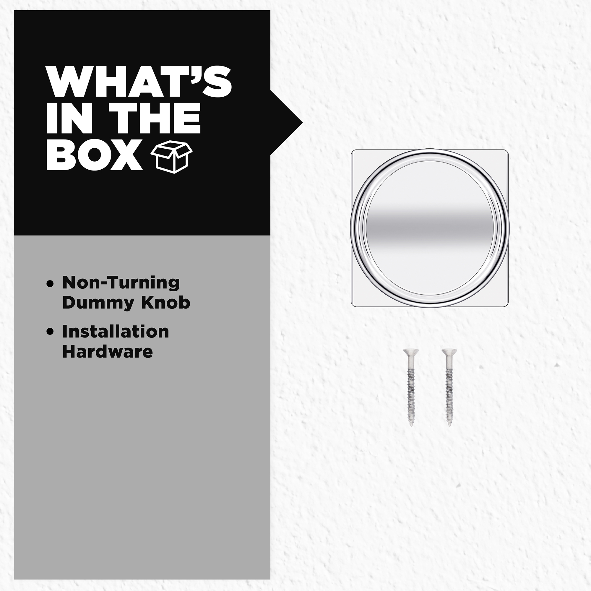 Box Includes Non-turning knob, installation hardware and Allen wrench