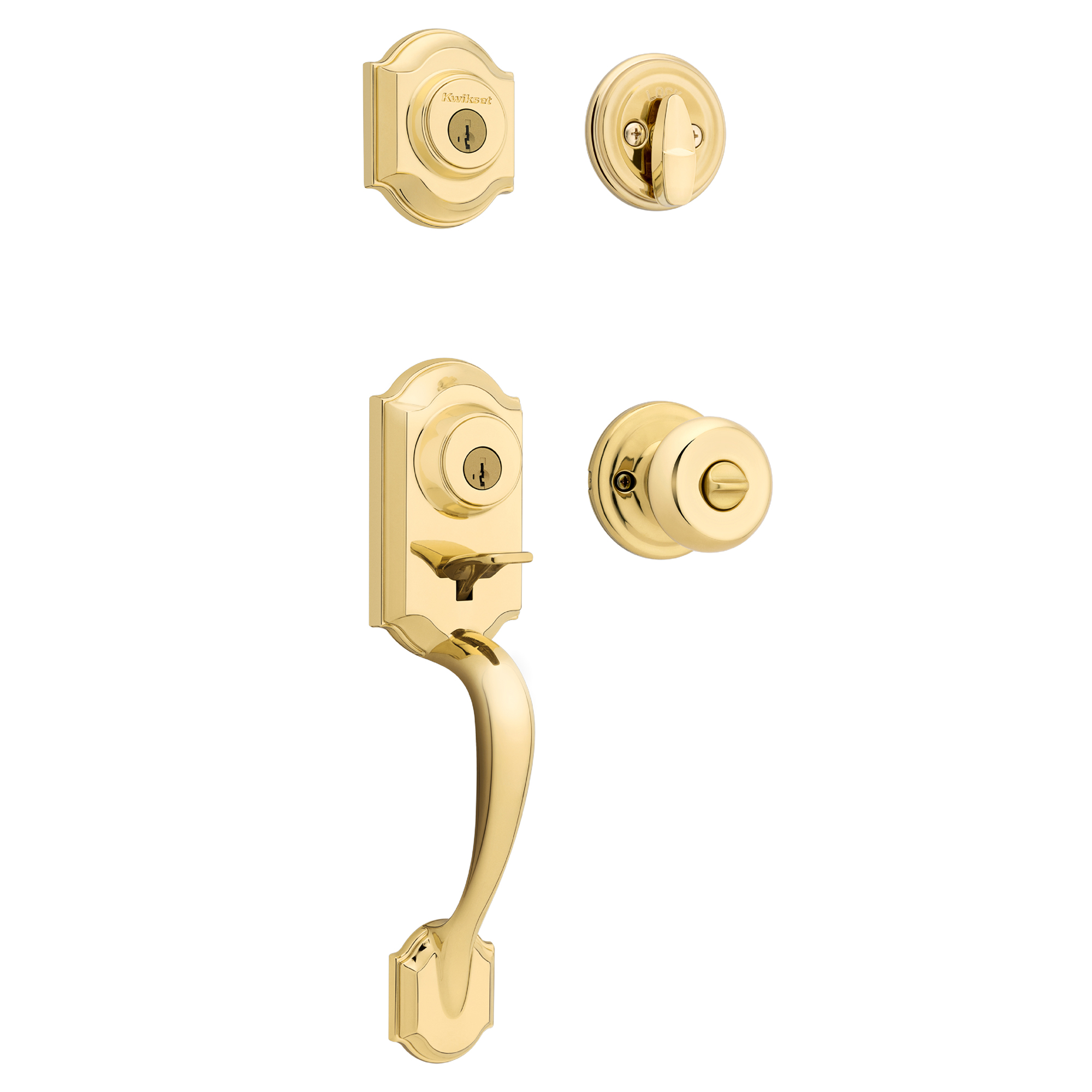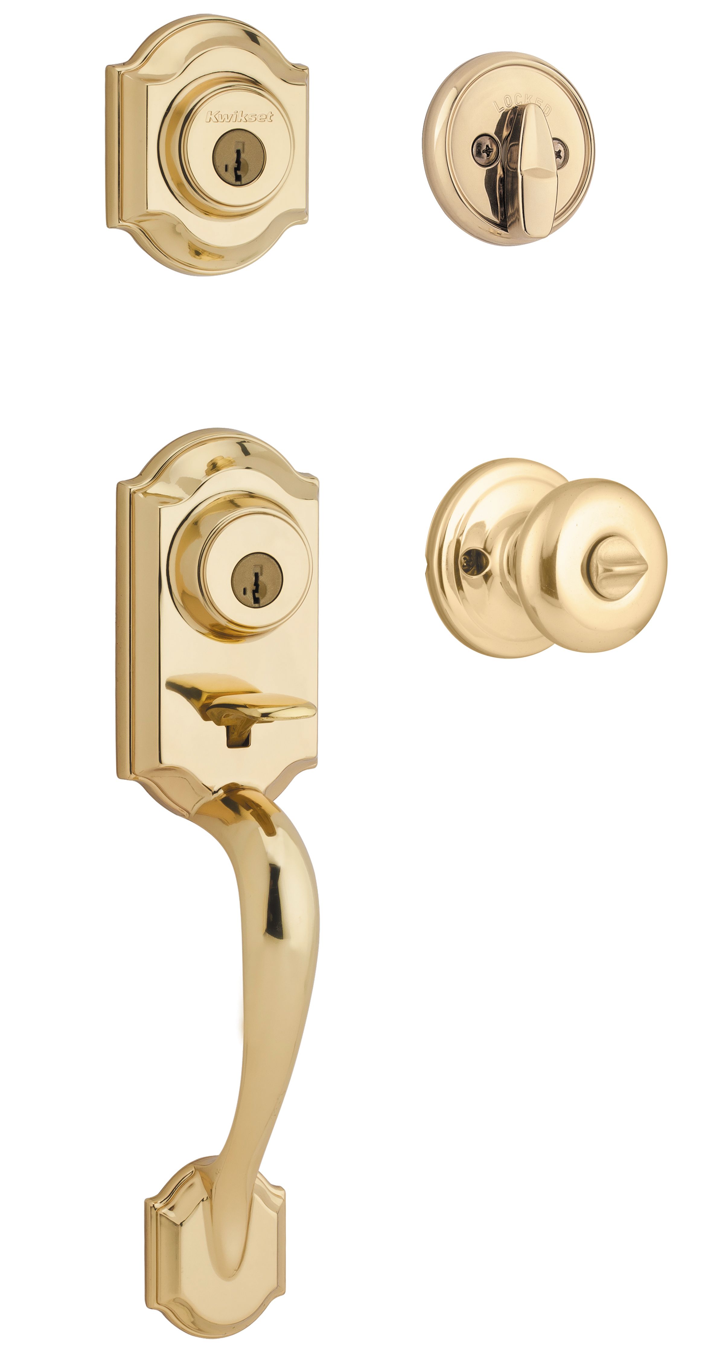 2-Point Locking Handlset with Deadbolt: For exterior front doors with two bore holes, comes with exterior Keyed Deadbolt, interior turn piece, keyed grip and interior knob, key operated from outside