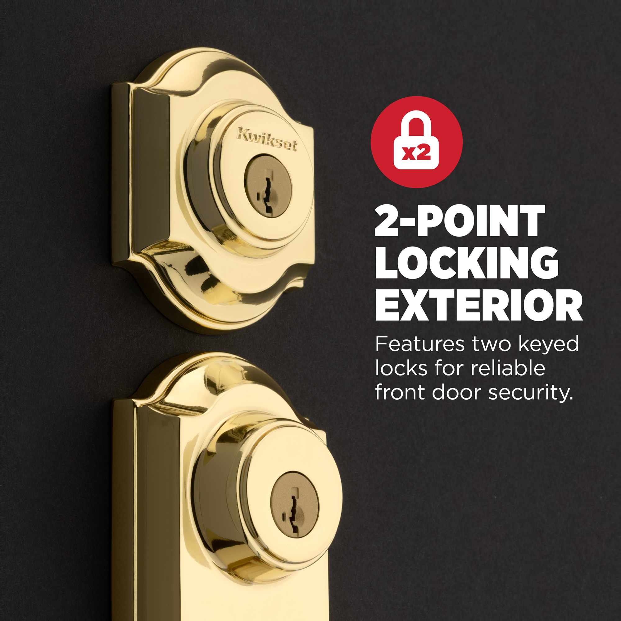 2-Point Locking Exterior: Exterior includes a Keyed Deadbolt and keyed grip, providing two distinct points of locking for reliable front door security, both require a key to open
