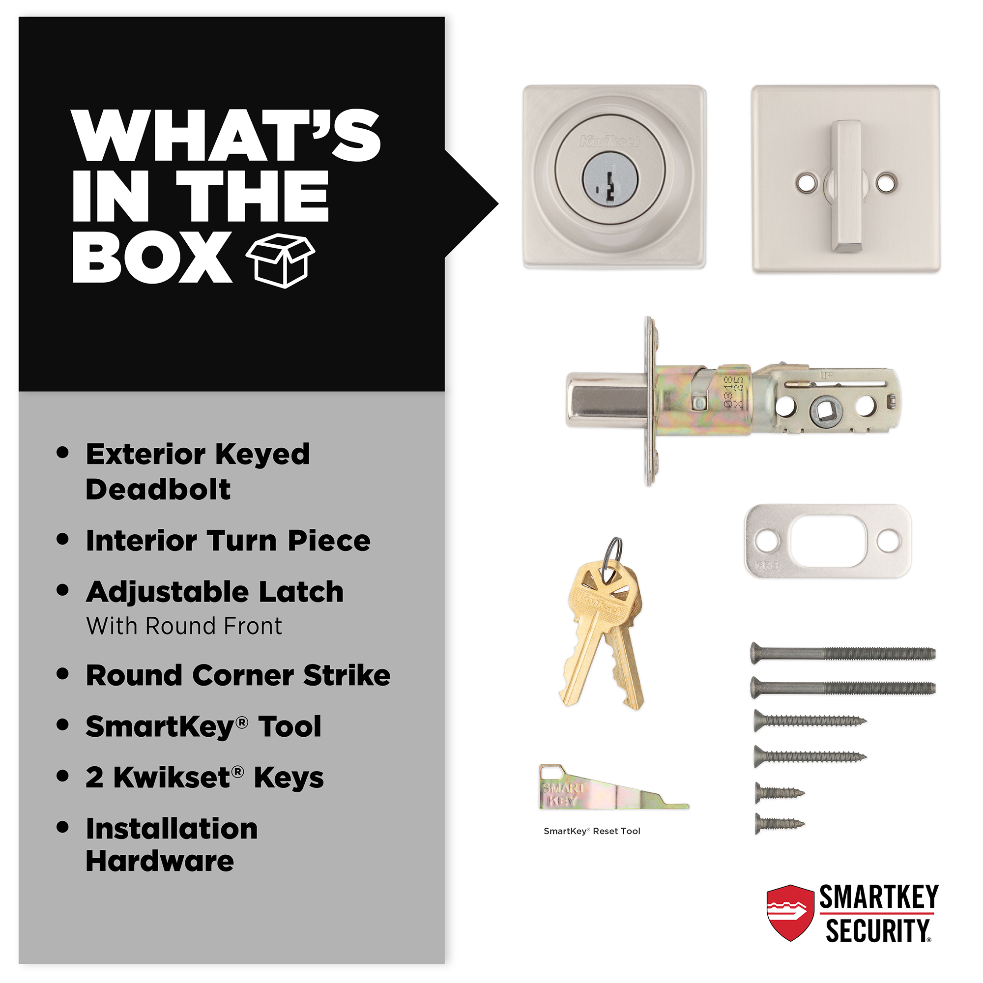 SmartKey Security: Kwikset’s SmartKey Security technology protects against advanced break-in techniques and allows you to re-key your lock yourself in seconds