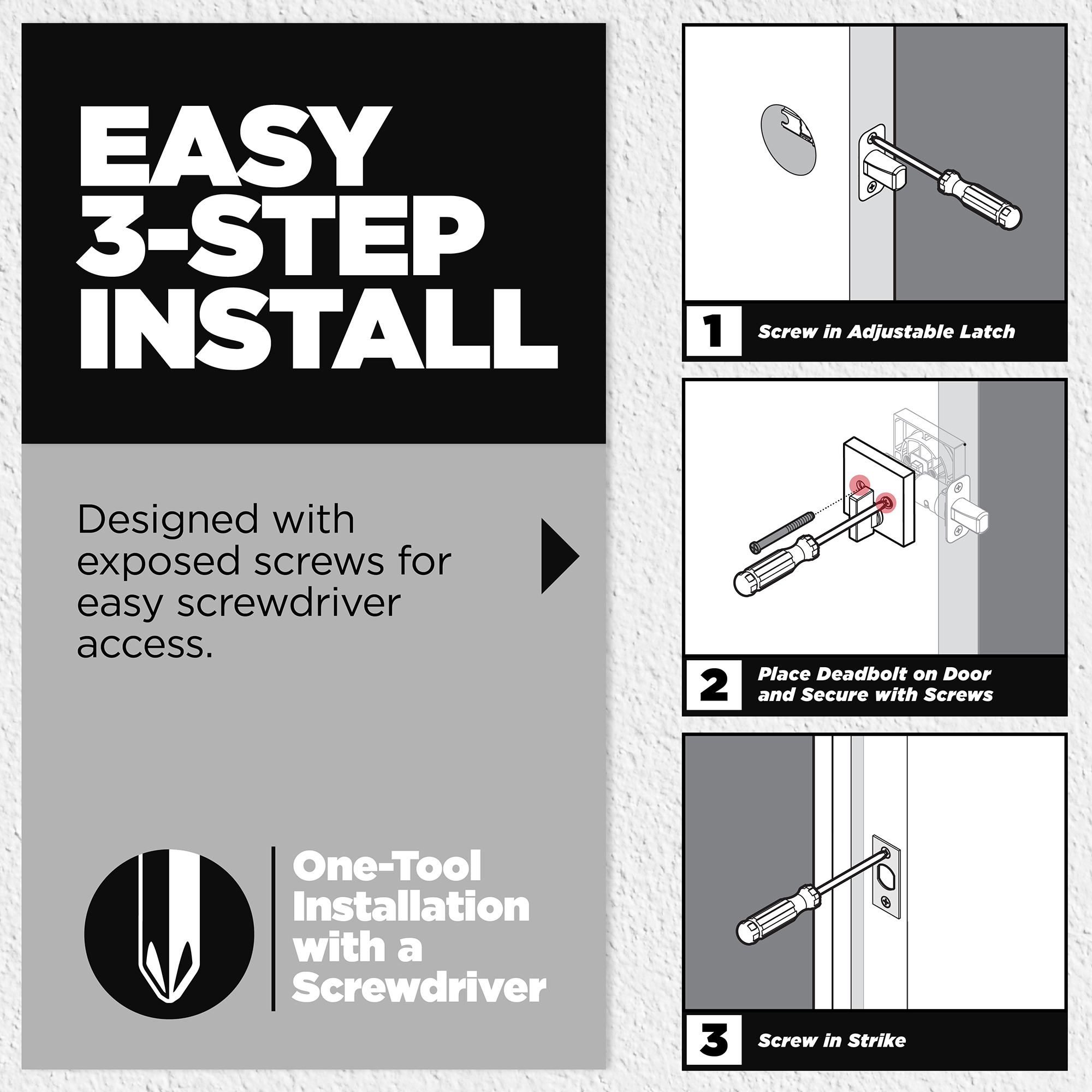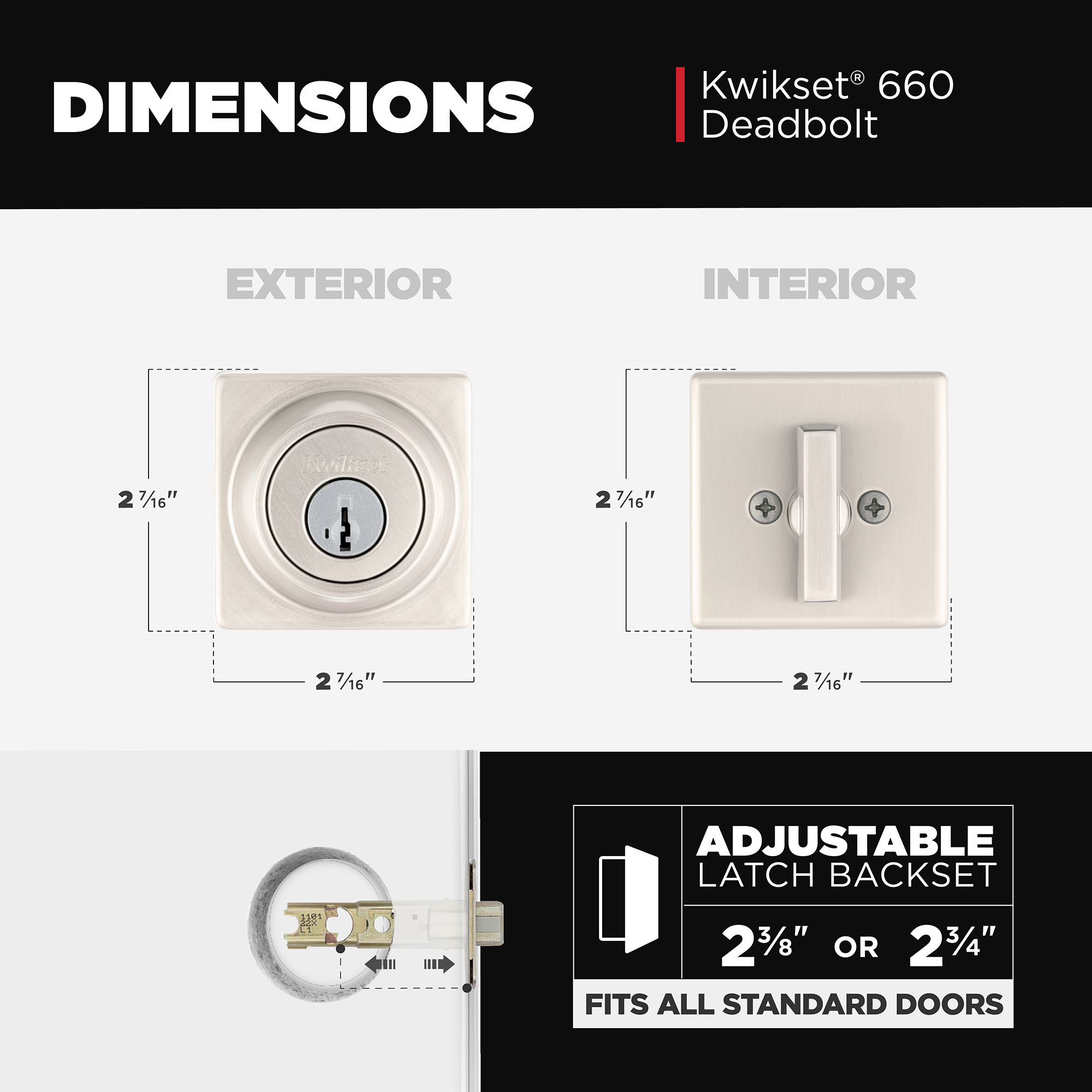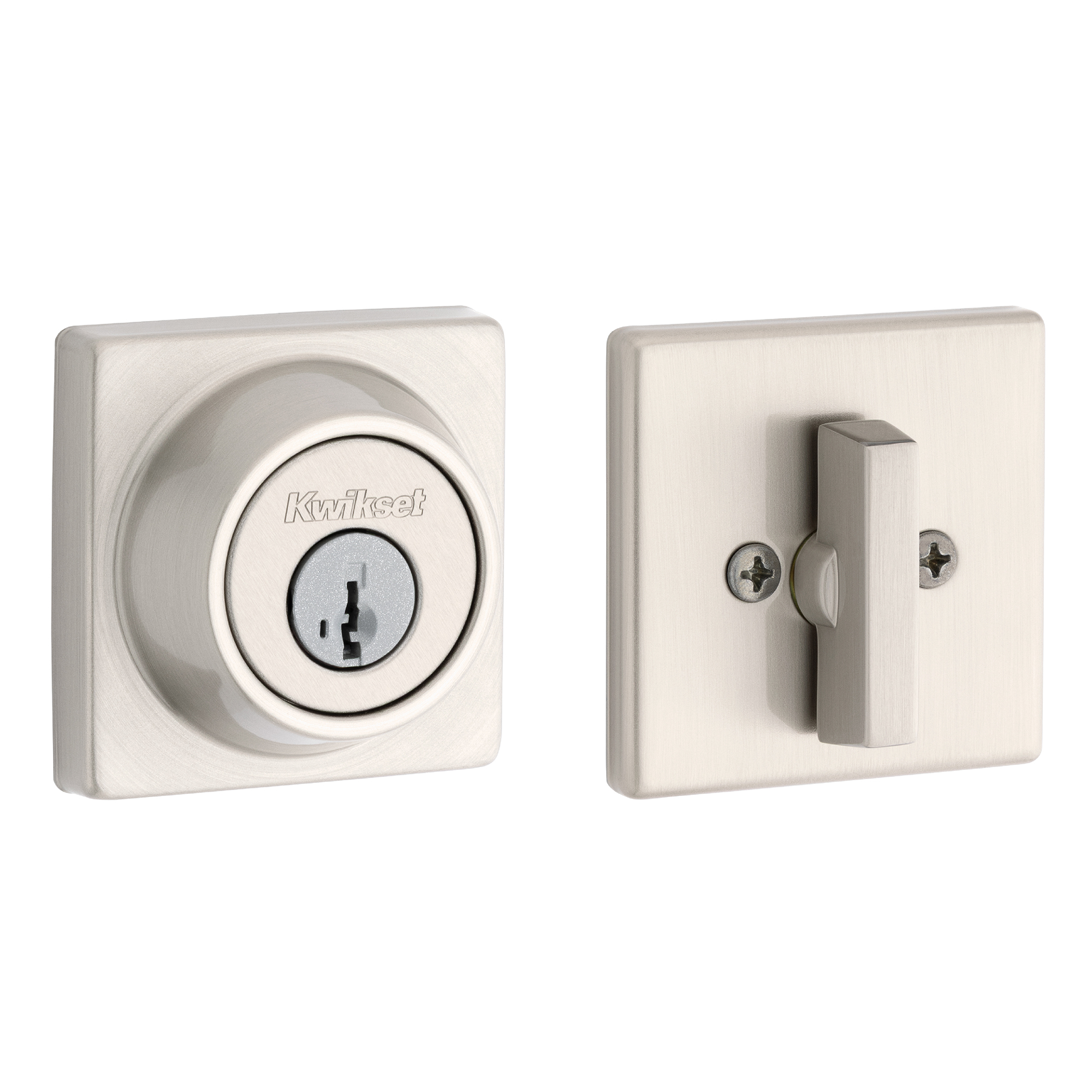 As the industry leader, Kwikset has provided trusted security for over 70 years and has become synonymous with security, peace of mind, style and innovation. Kwiksets Contemporary Deadbolt has a sleek and simple design. Priced affordably, this deadbolt offers achievable style while maintaining superior security. This single cylinder deadbolt is operated by a key on the outside or a thumb turn on the inside.