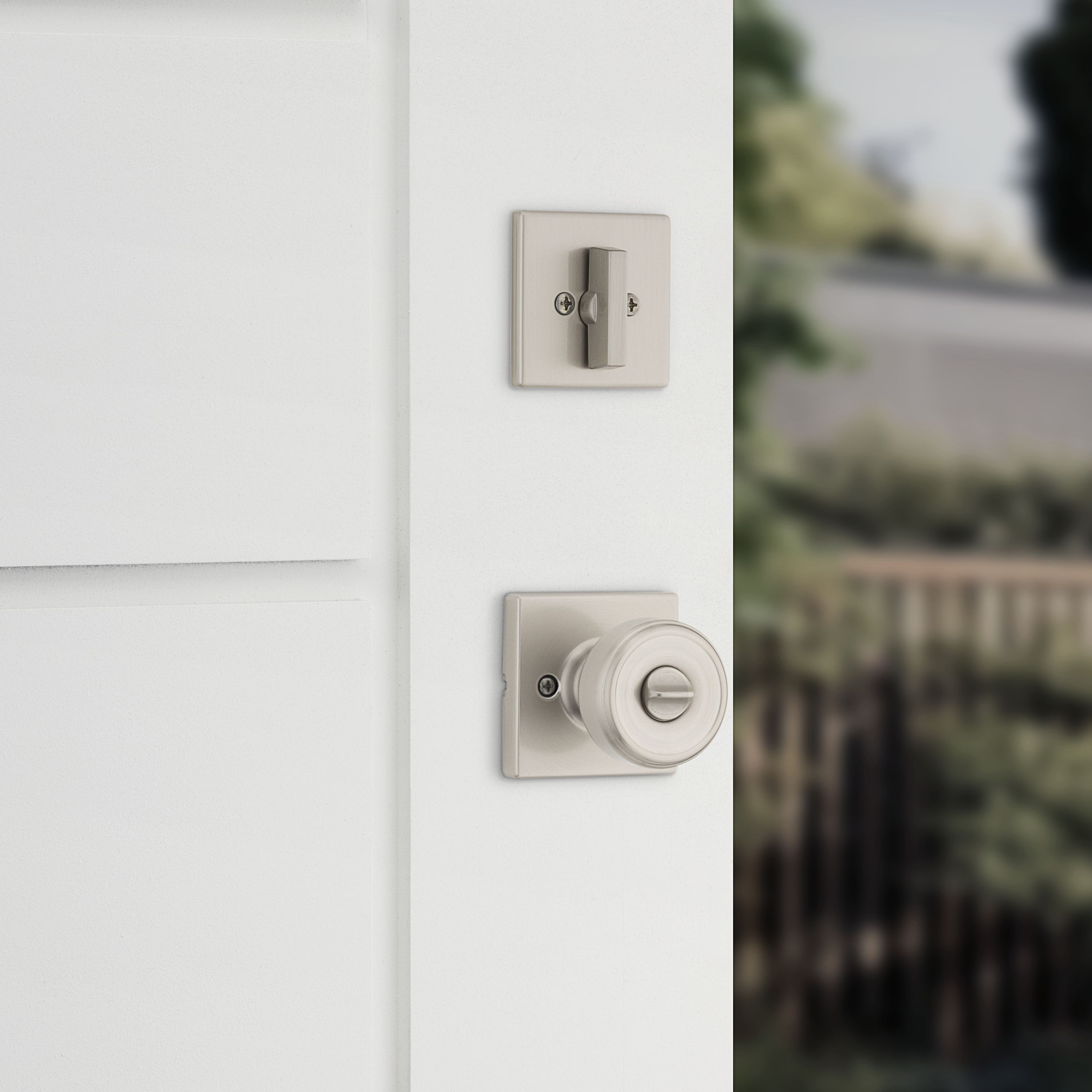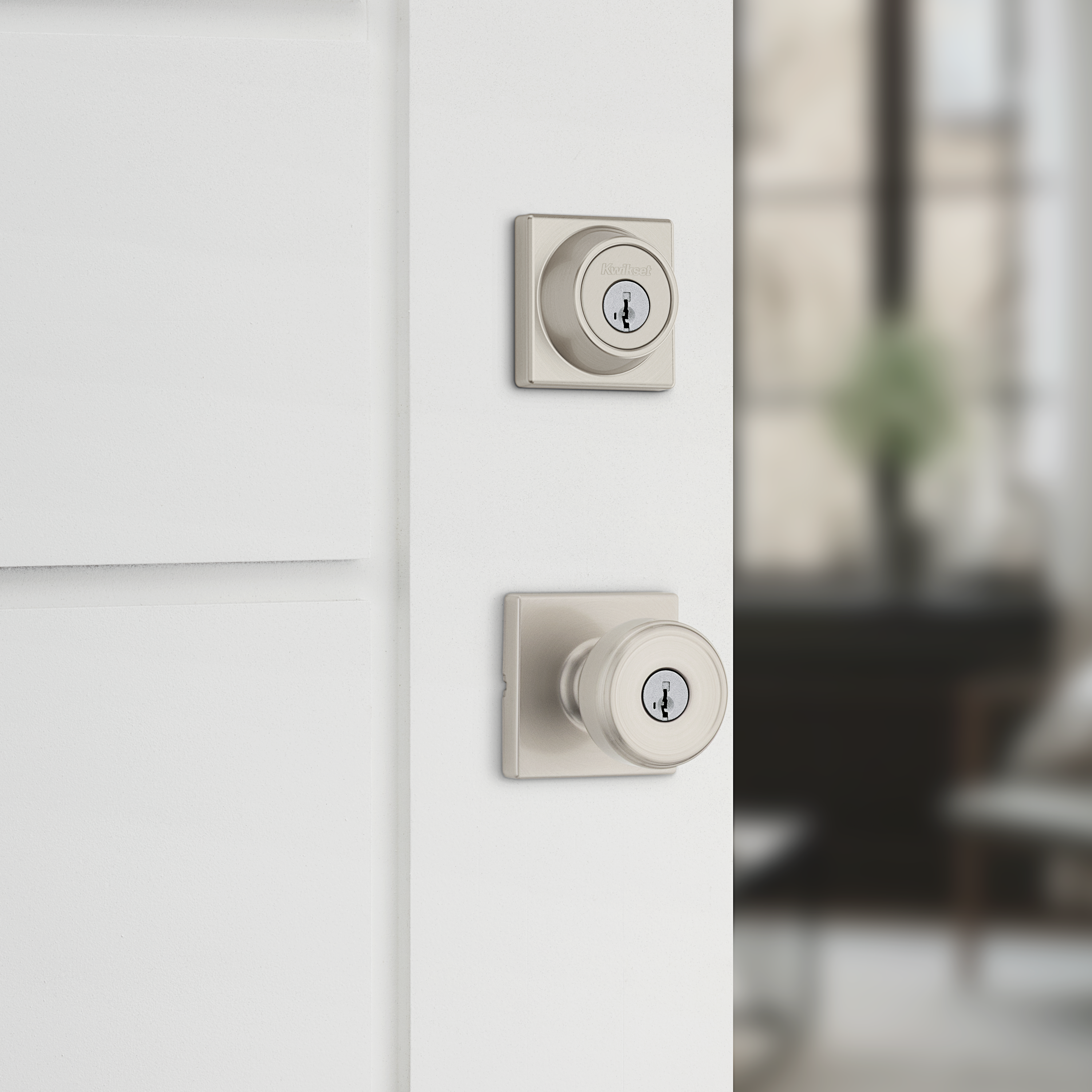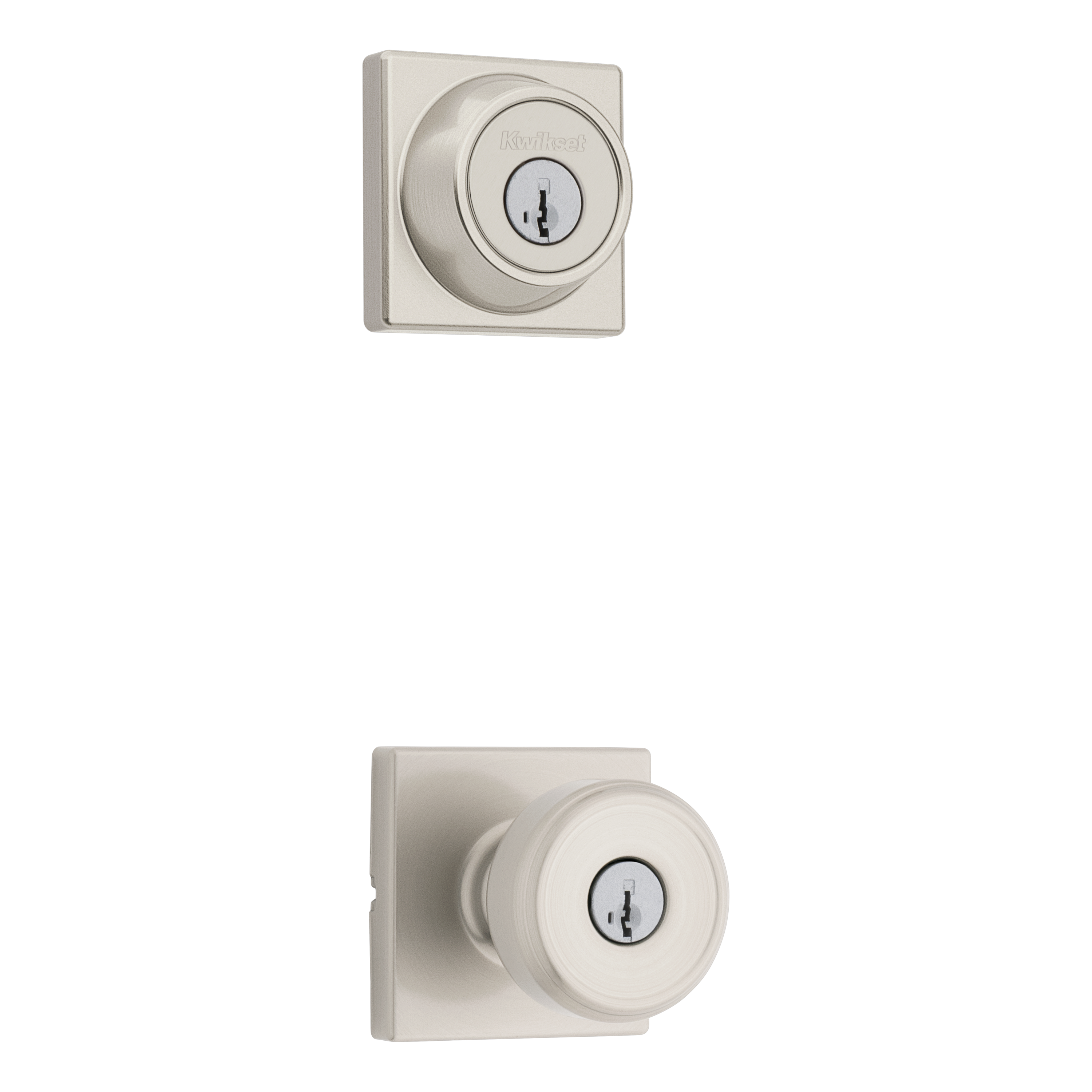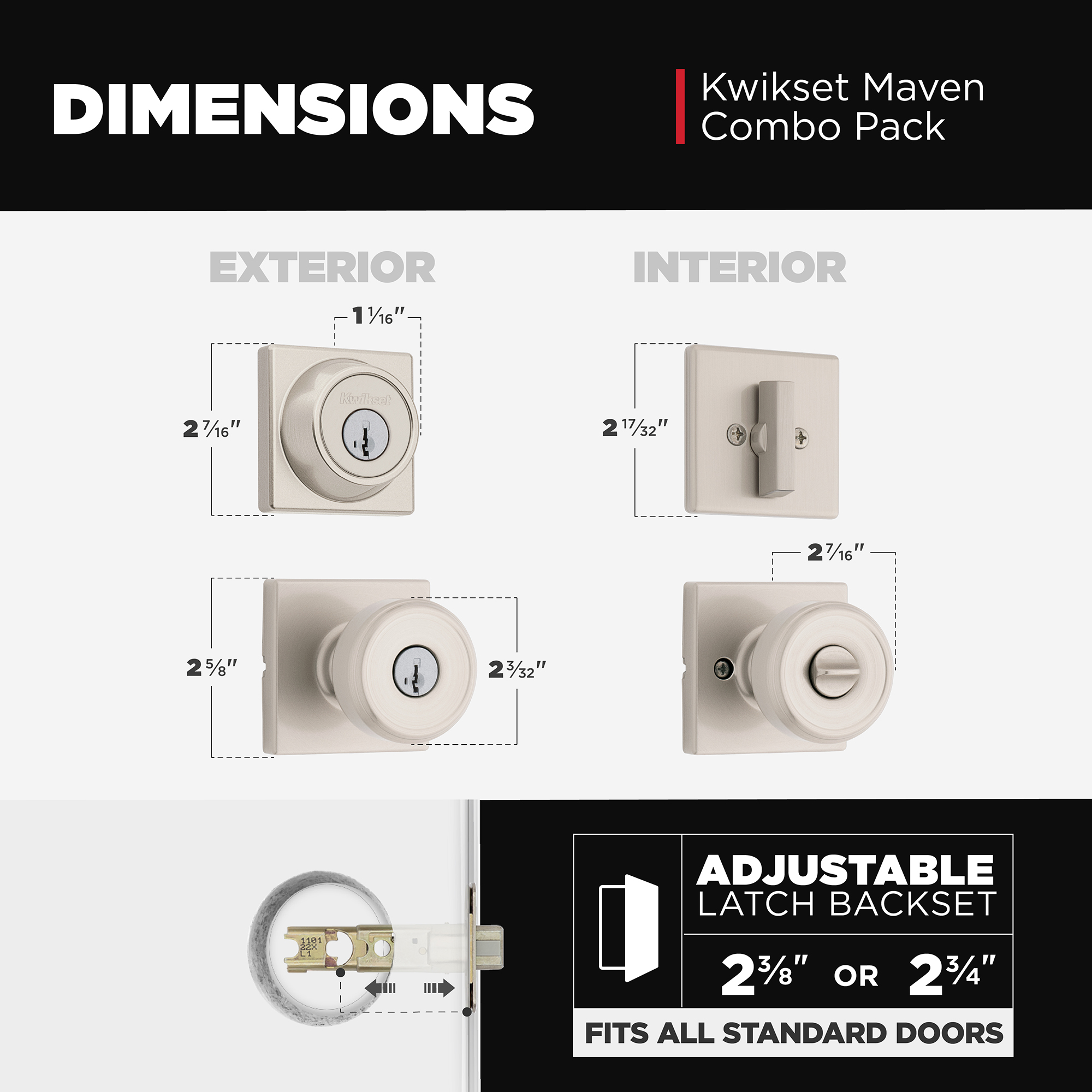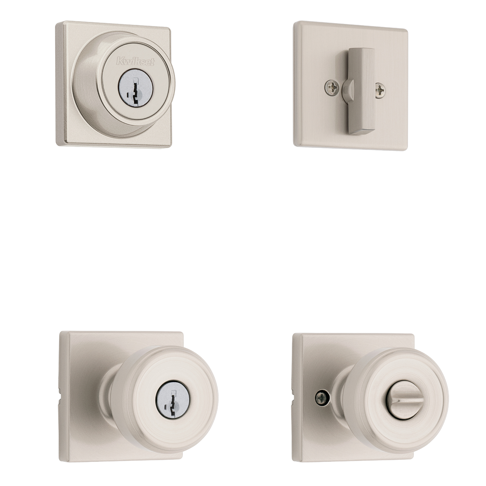 Maven Square Keyed Entry Door Knob Combo Pack in Satin Nickel featuring SmartKey Security