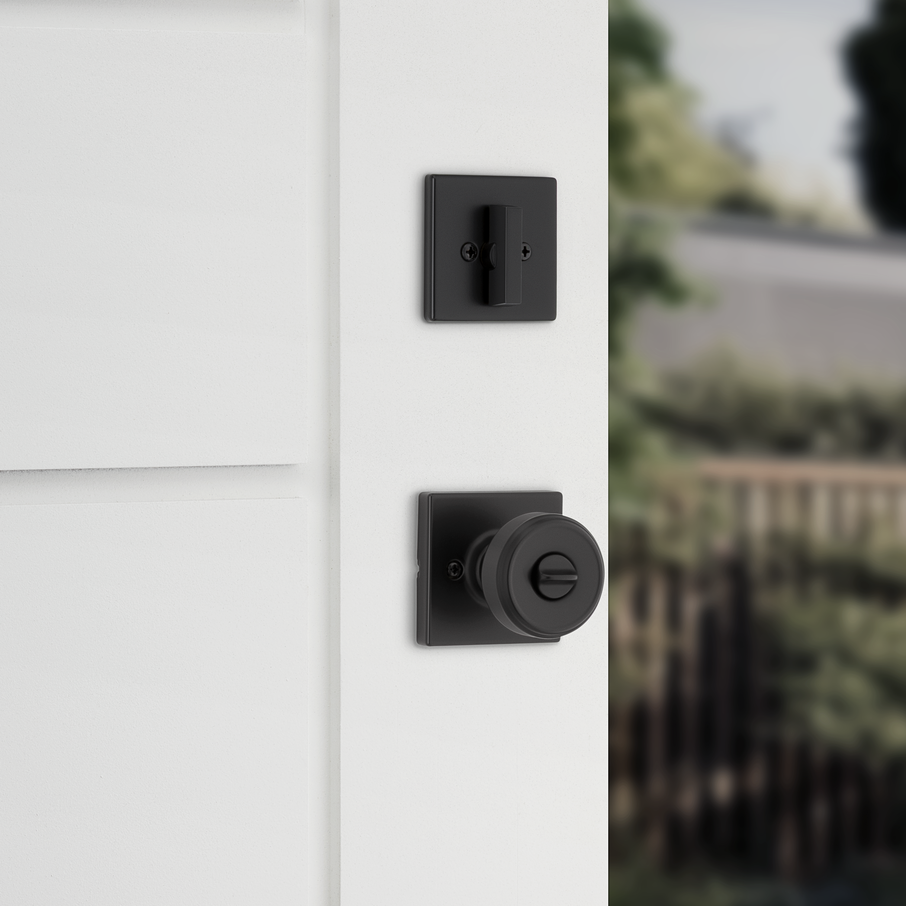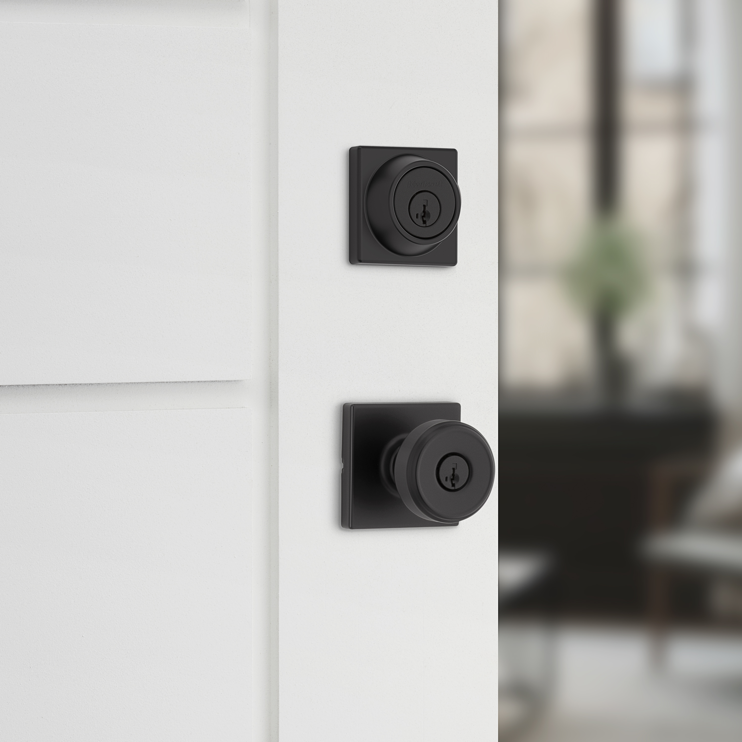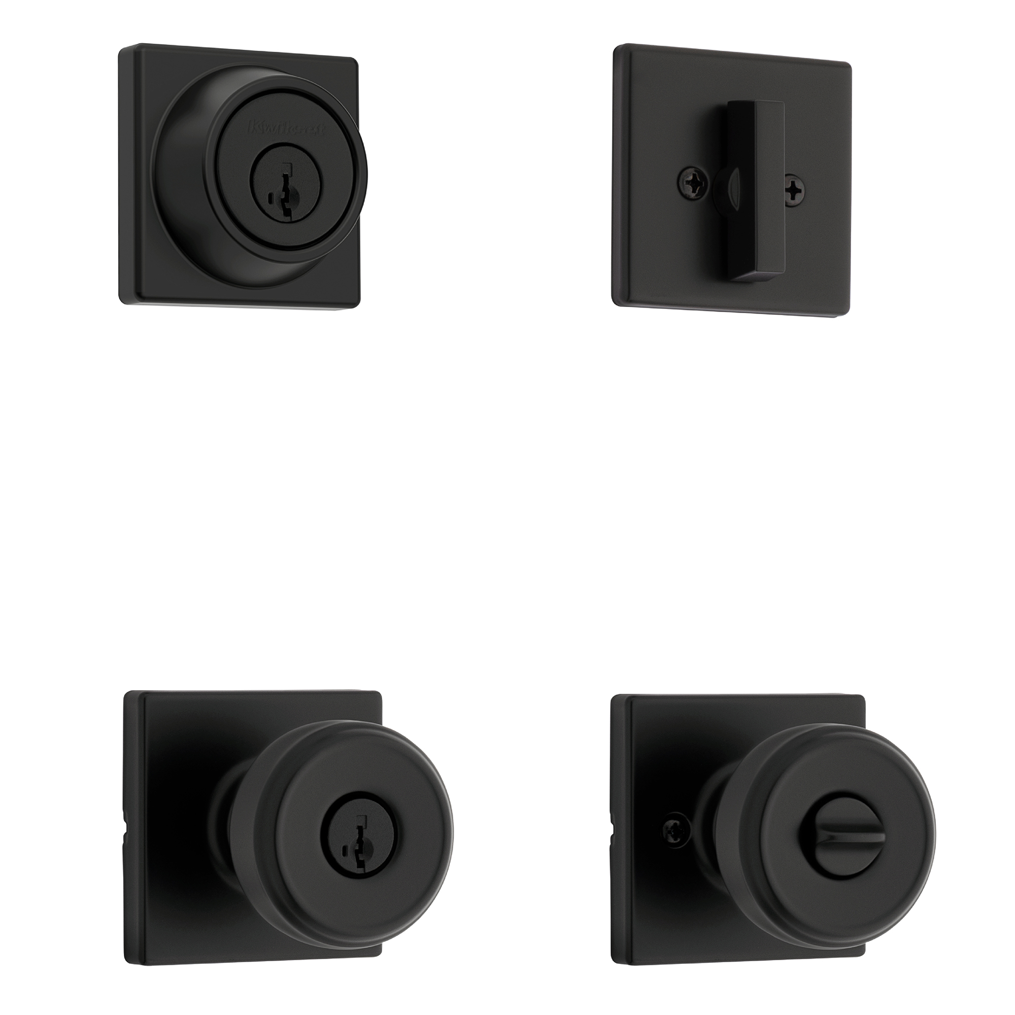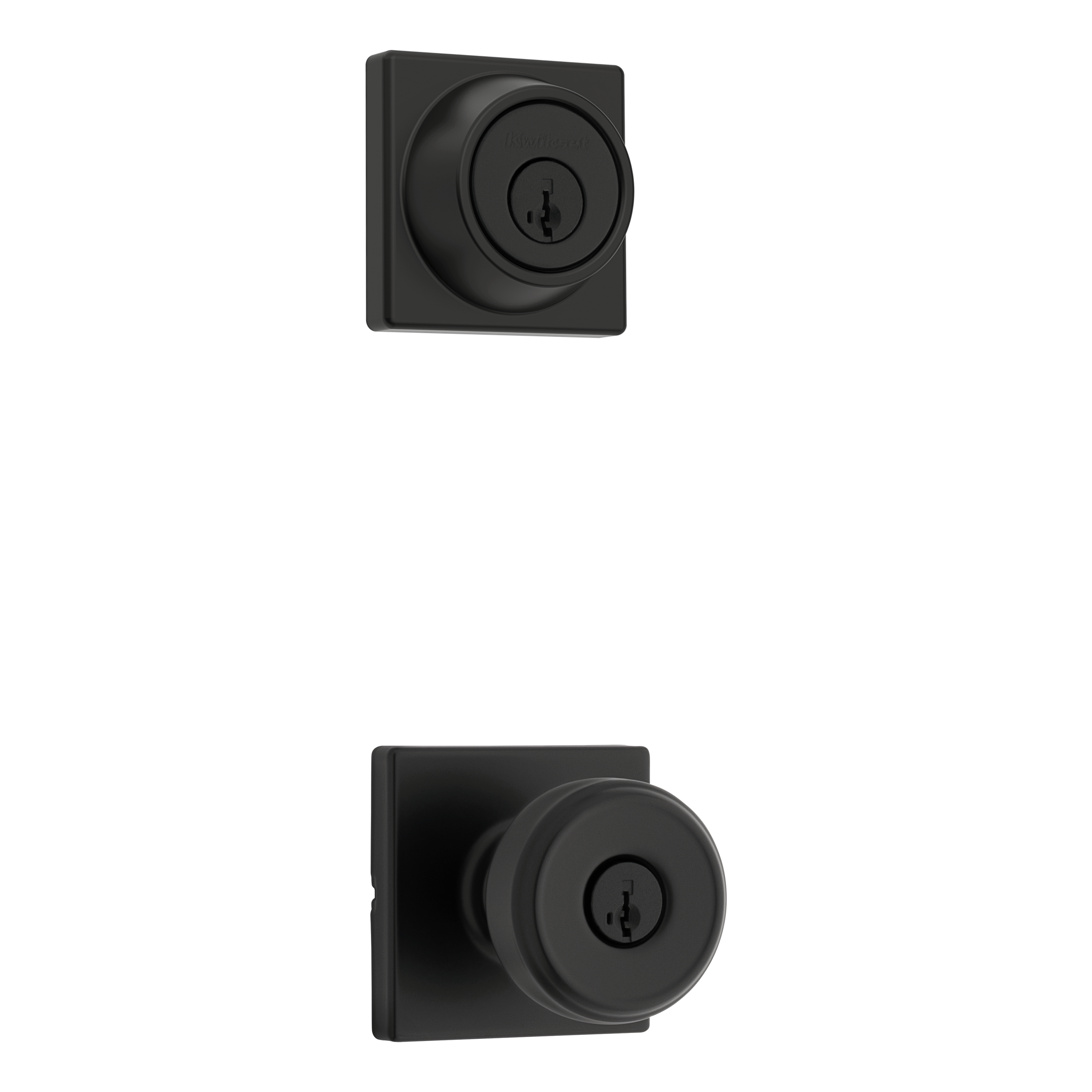 Maven Square Keyed Entry Door Knob Combo Pack in Matte Black featuring SmartKey Security