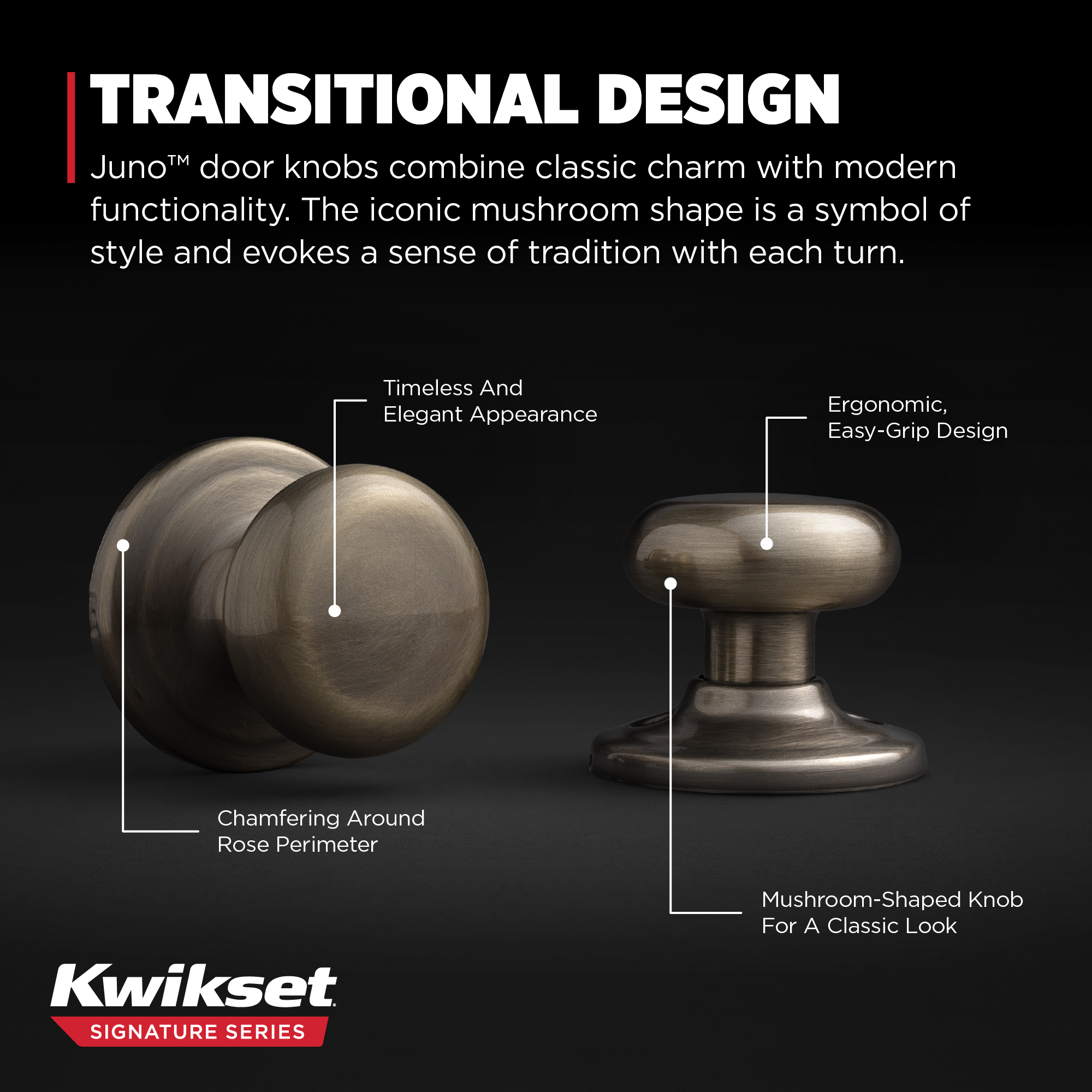 Juno™ door knobs combine classic charm with modern functionality. The iconic mushroom shape is a symbol of style and evokes a sense of tradition with each turn. The knob’s smooth surface offers a comfortable grip, while its timeless design elevates any décor.