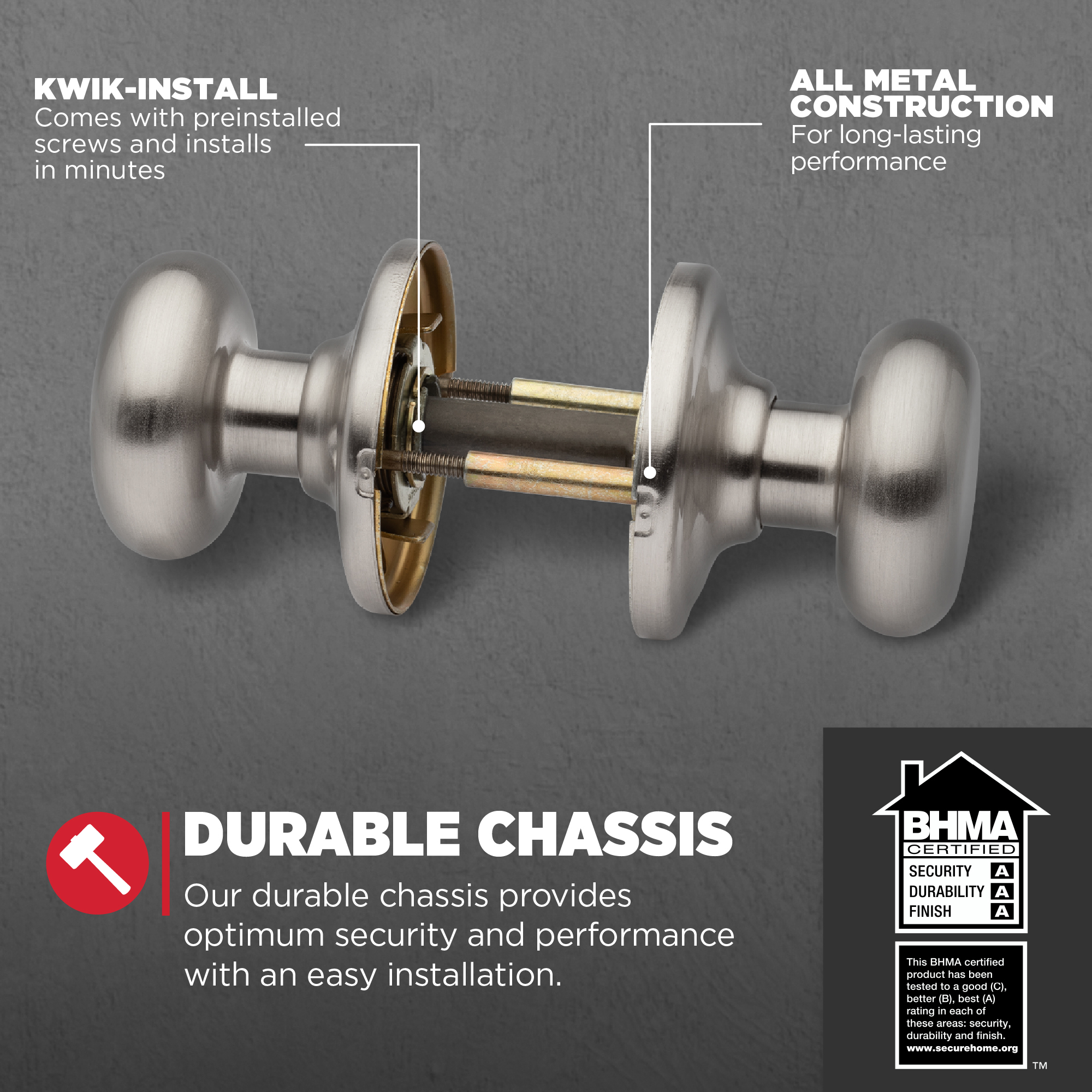 Certified Trusted Quality: Security, Durability and Finish are Grade 3 BHMA certified, designed for reliable protection, providing peace of mind at home