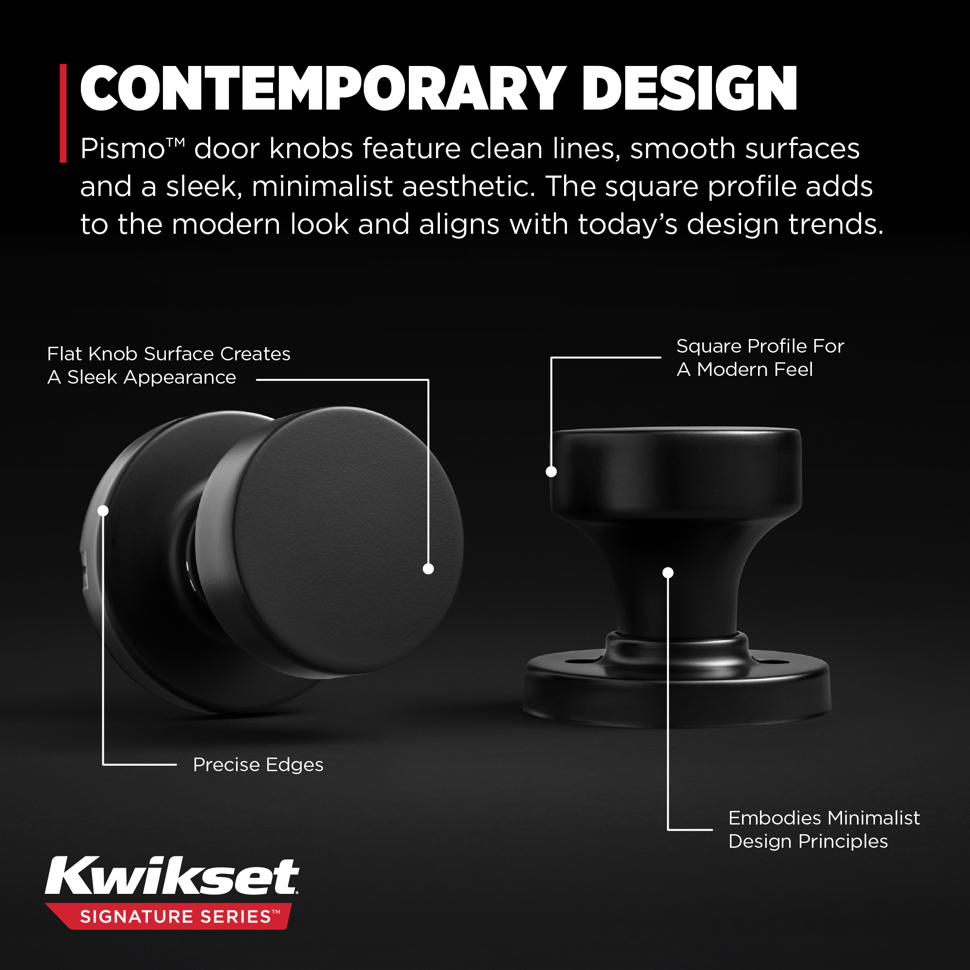 When it comes to contemporary design, Pismo™ door knobs hit the mark with clean lines, smooth surfaces and a sleek, minimalist aesthetic. The square profile adds to the modern look and aligns with today’s design trends. Elevate your space with Pismo™ and turn every door into a chic style statement.