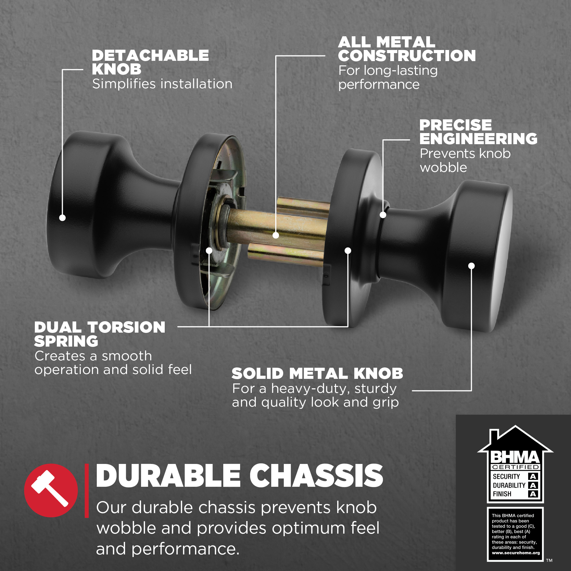 Certified Trusted Quality: Security, Durability and Finish are Grade 3 BHMA certified, designed for reliable protection, providing peace of mind at home