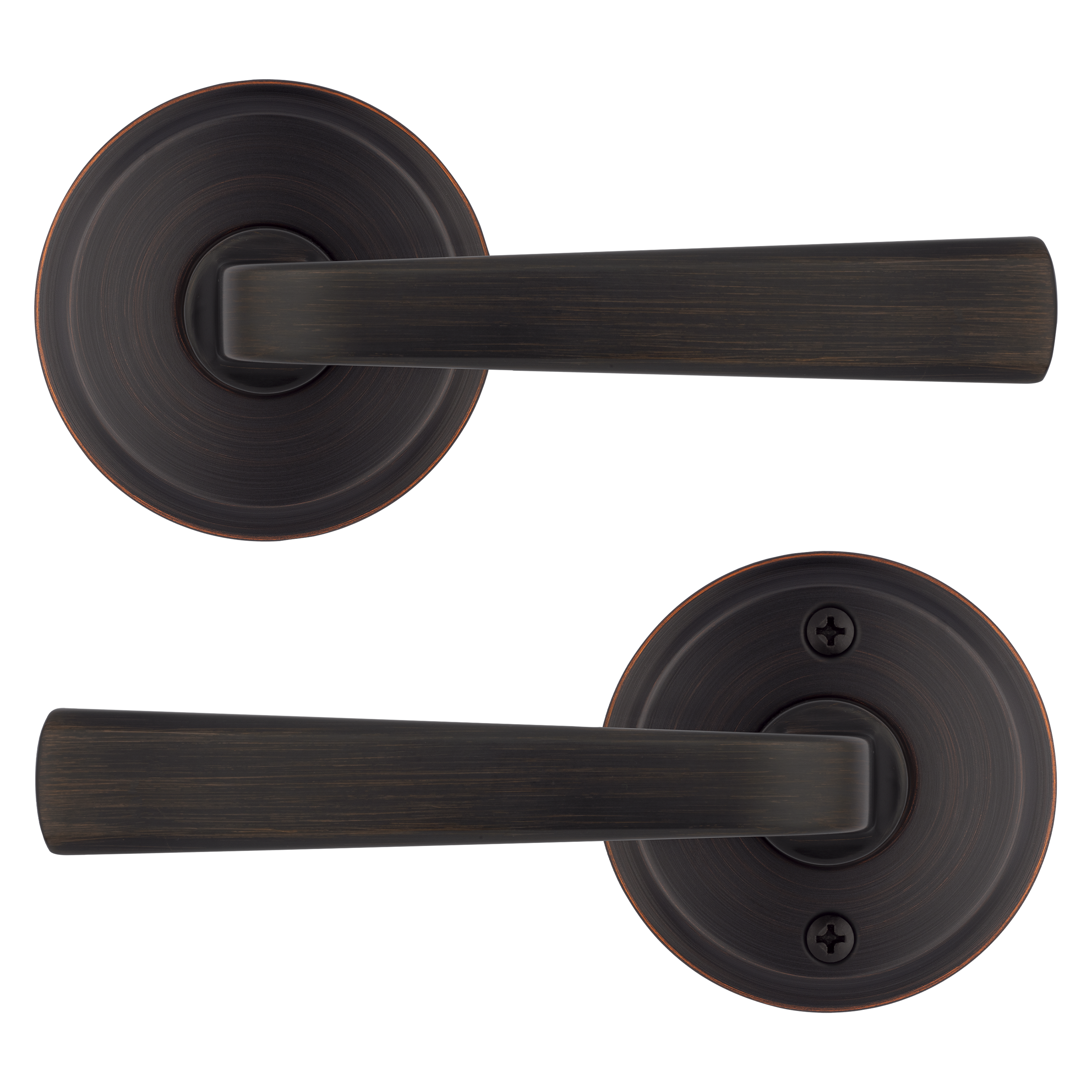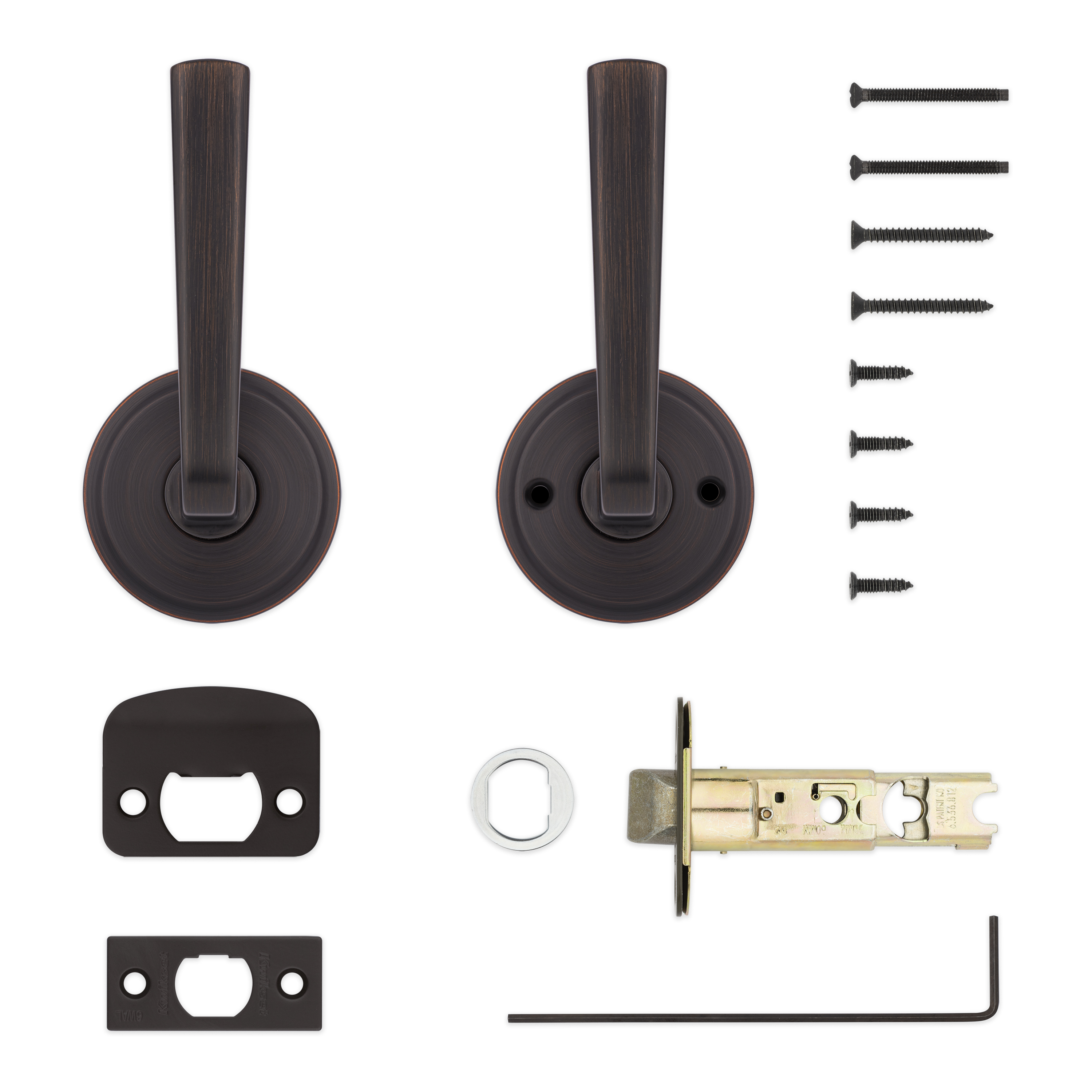 Box Includes: Box Includes passage lever, Adjustable Latch with round and square front options or drive-in collar, round corner strike, designer rosette, screws and Allen wrench