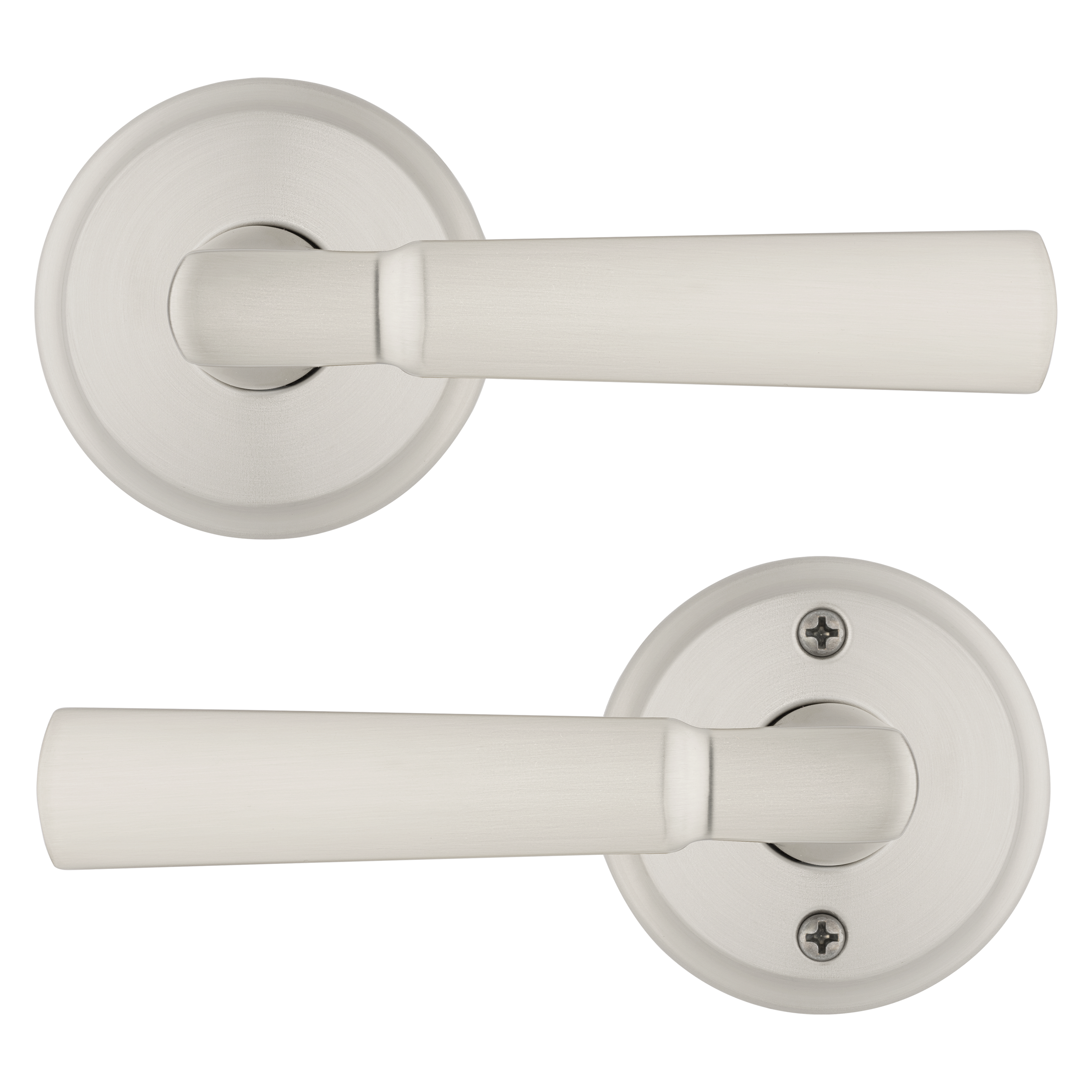 - Box Includes: Box Includes passage lever, Adjustable Latch with round and square front options or drive-in collar, round corner strike, designer rosette, screws and Allen wrench