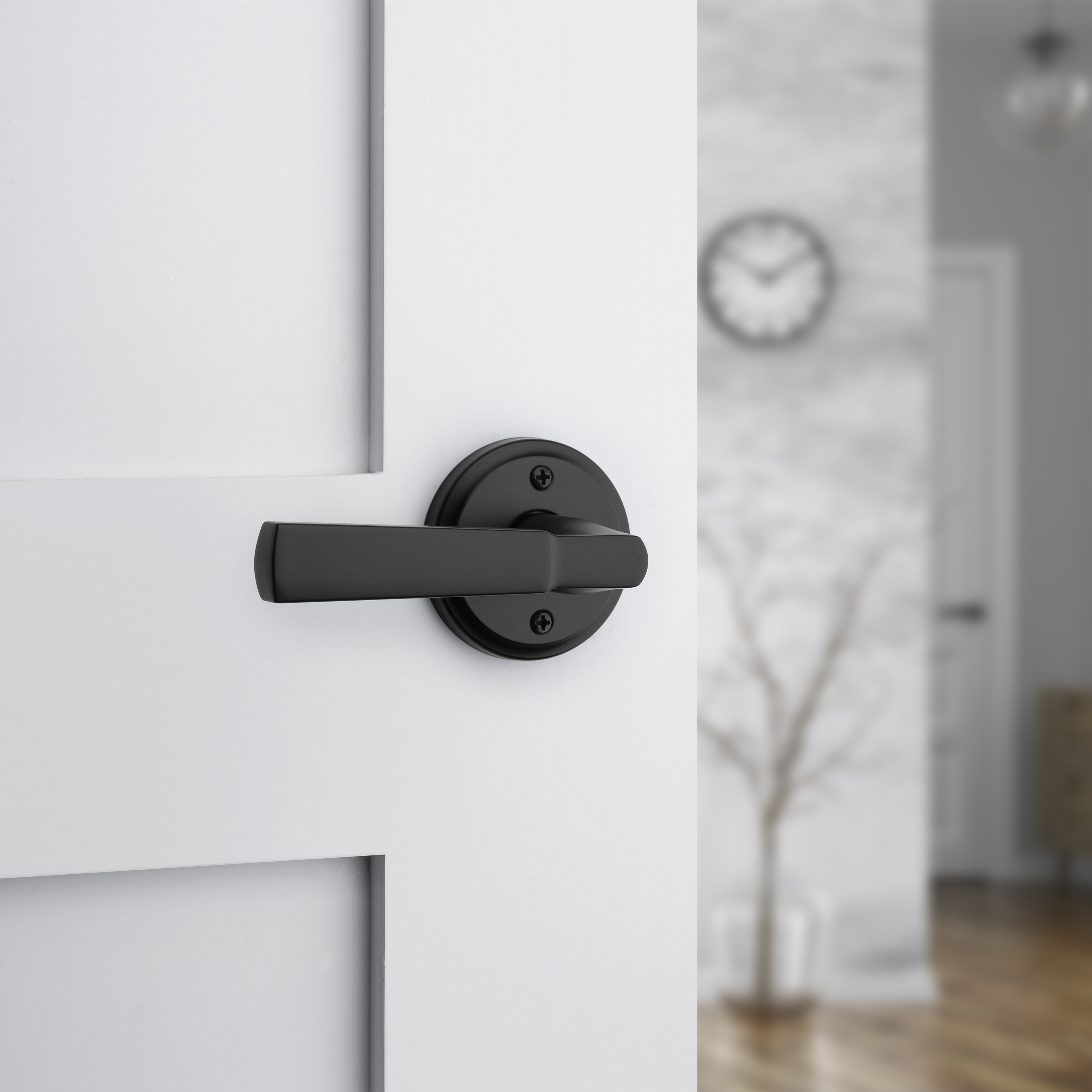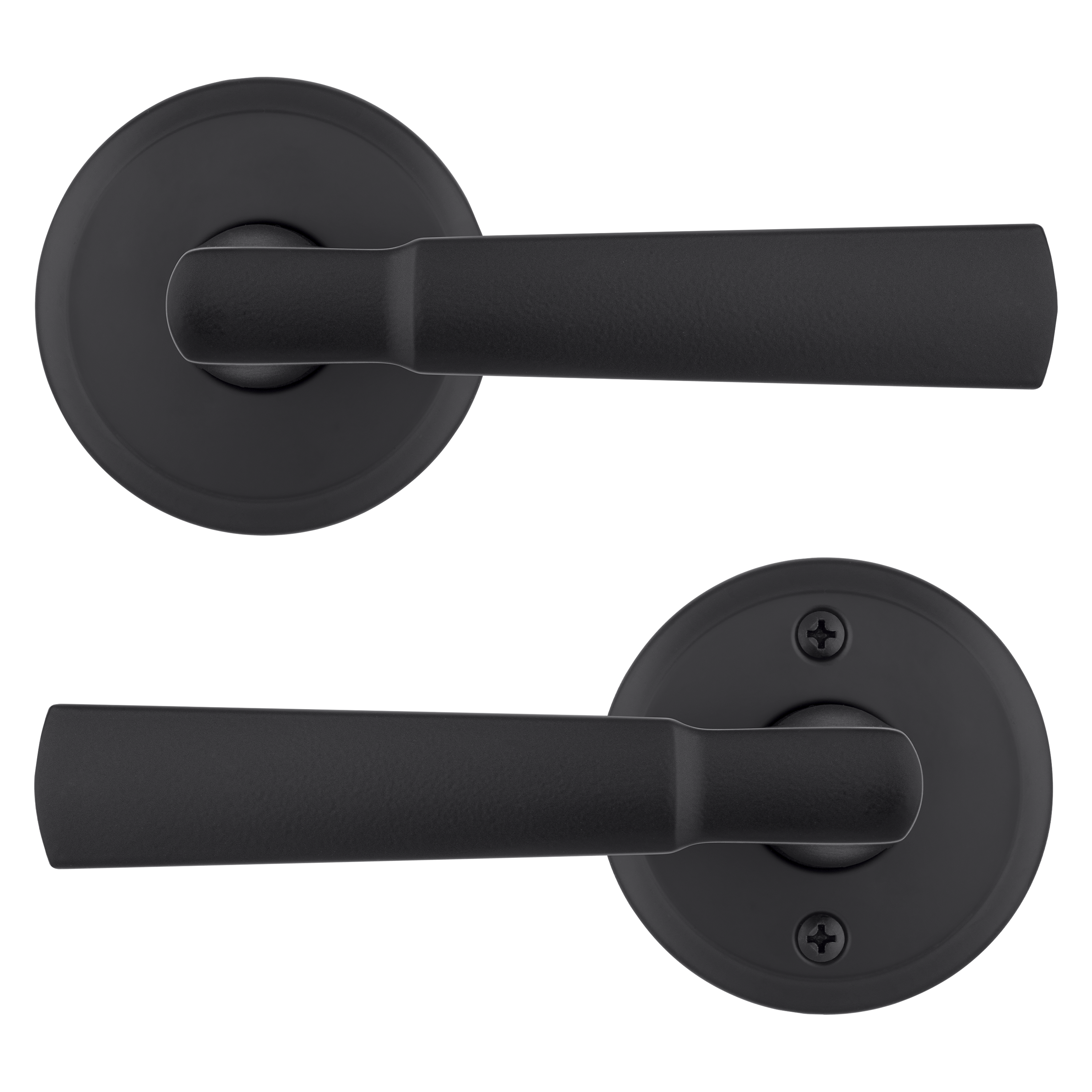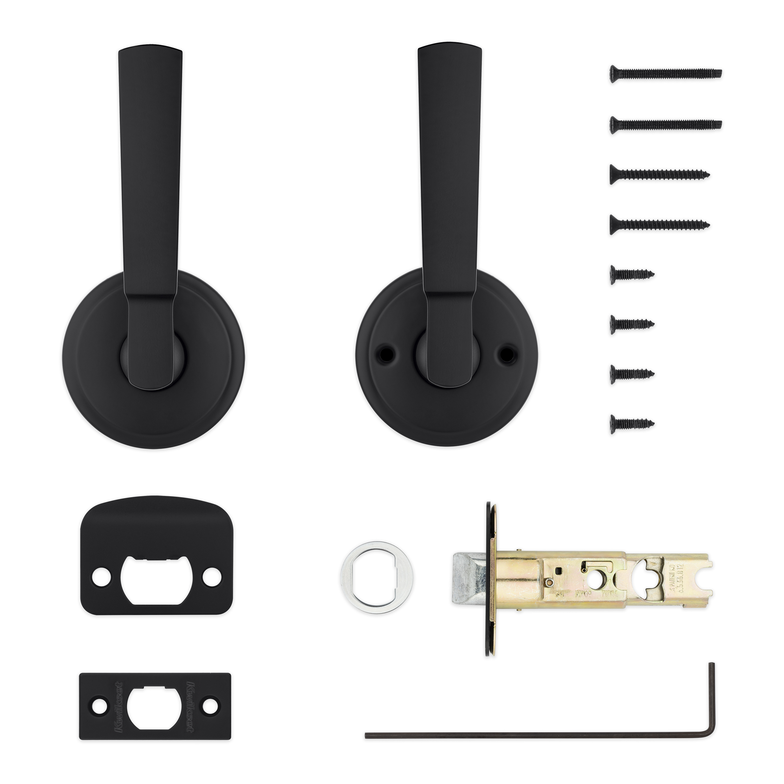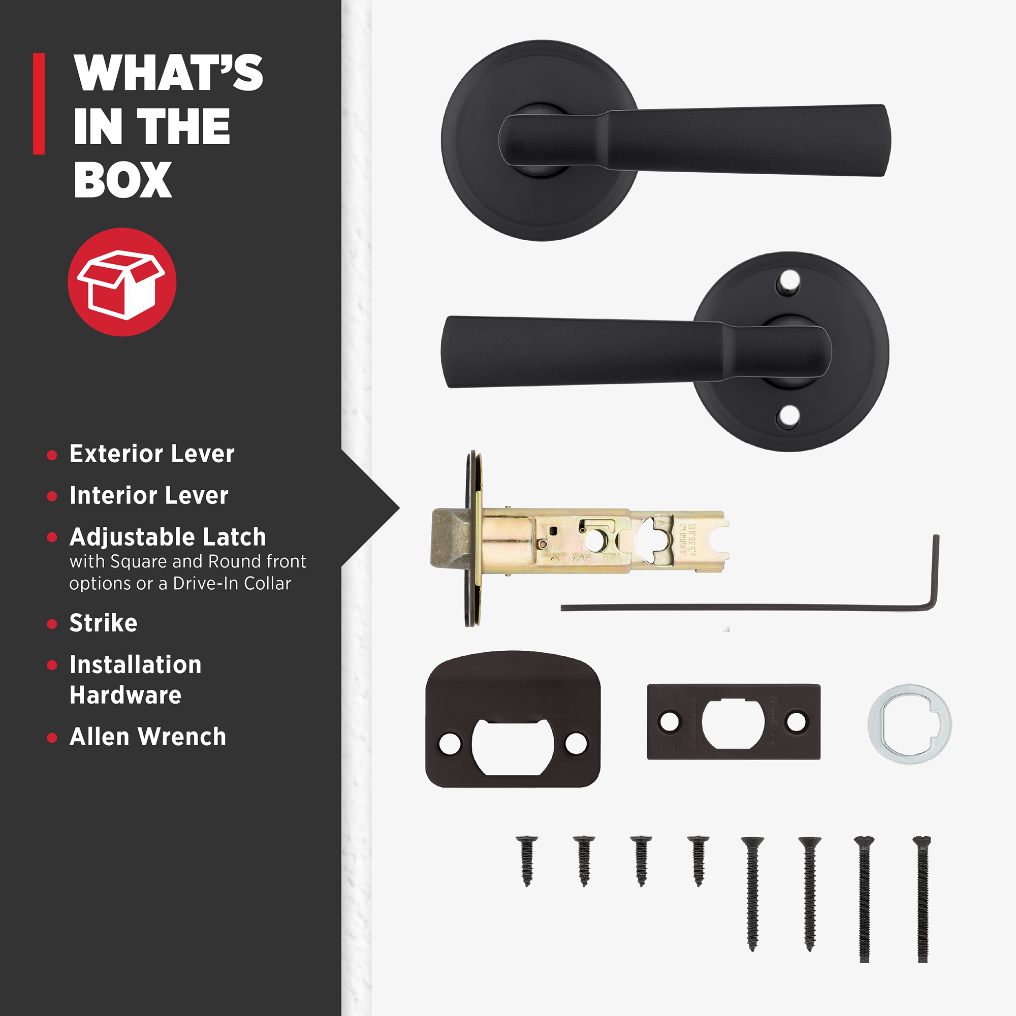 - Box Includes: Box Includes passage lever, Adjustable Latch with round and square front options or drive-in collar, round corner strike, designer rosette, screws and Allen wrench