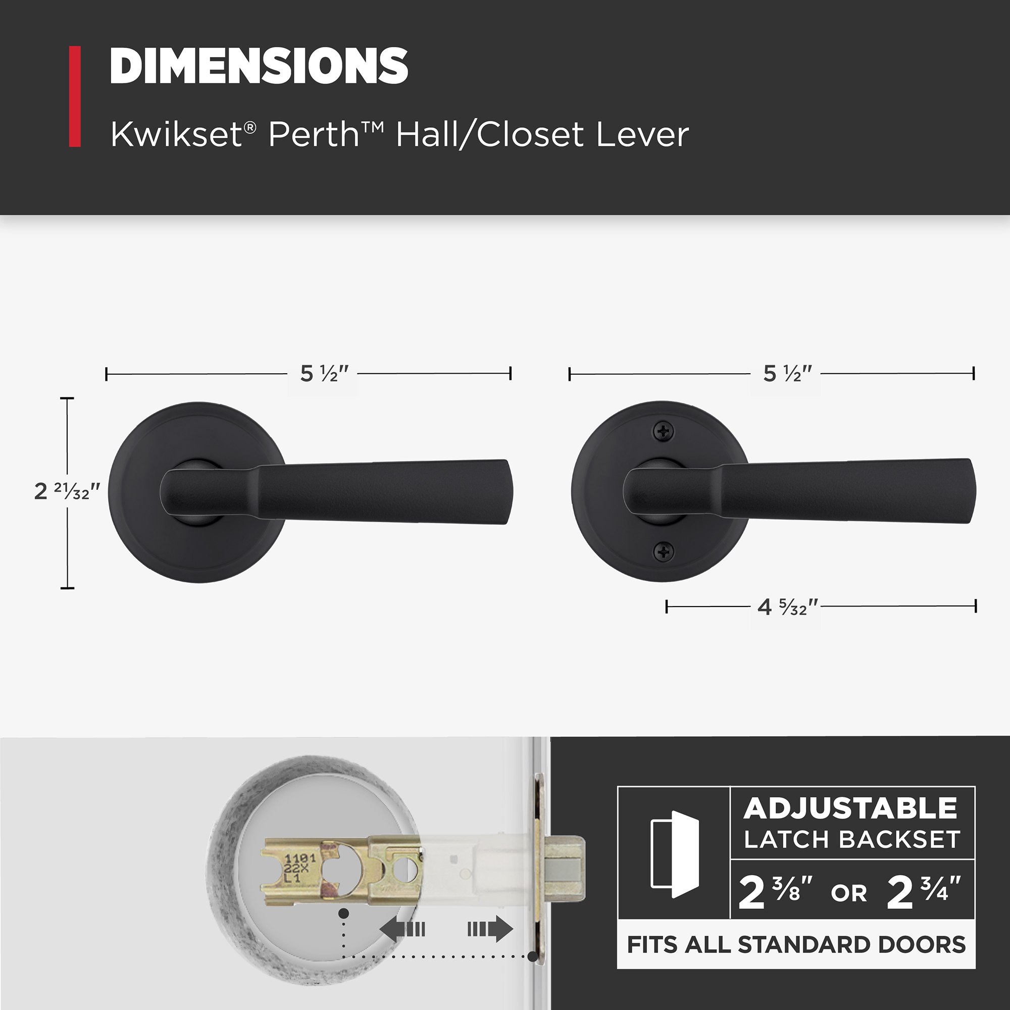 - Fits Standard Doors: Fits standard size doors 1-3/8" to 1-3/4" thick, latch backset adjusts to either 2-3/8" or 2-3/4" by sliding the adjustment pin during installation