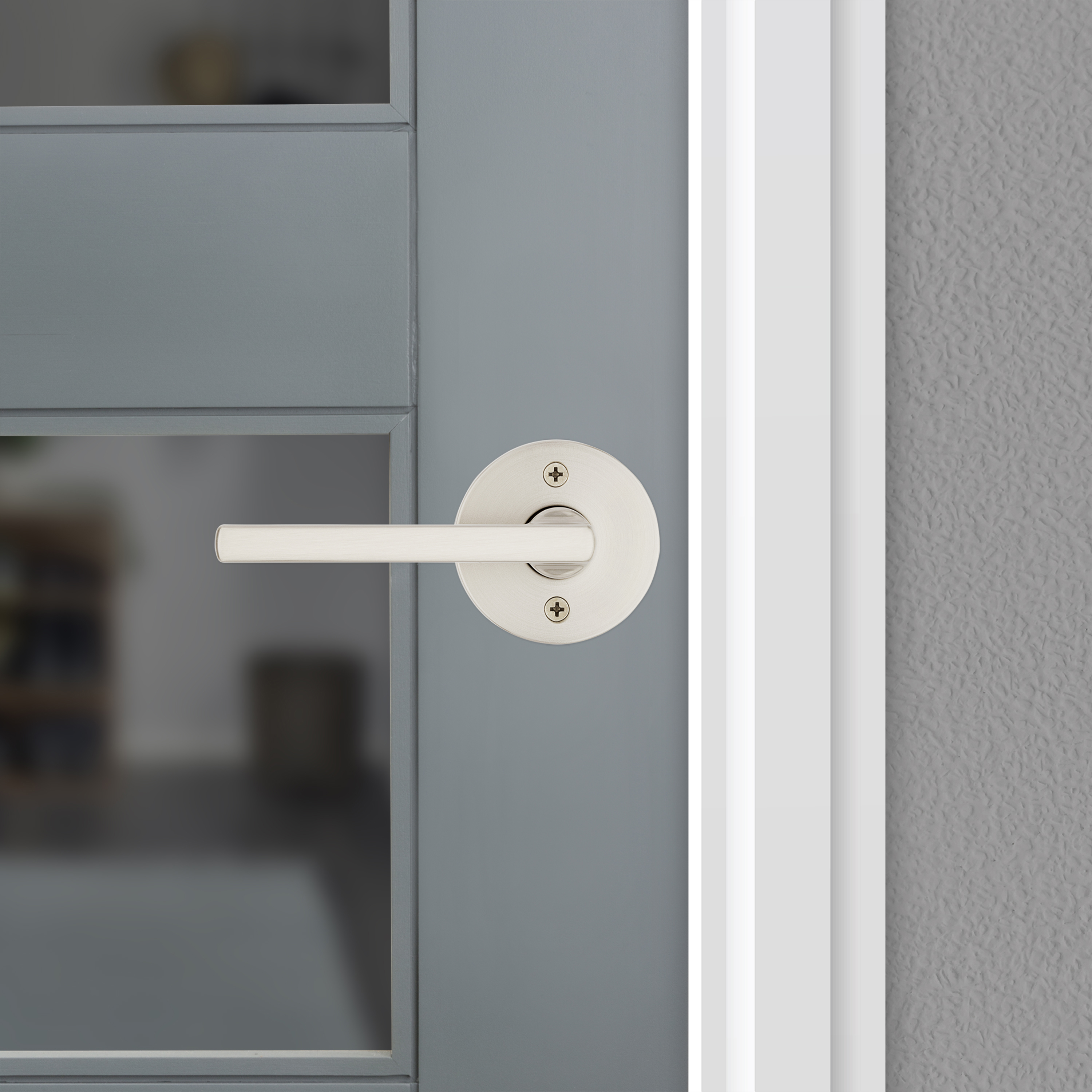 Halifax Hall/Closet UL Door Lever with Round Rose in Satin Nickel