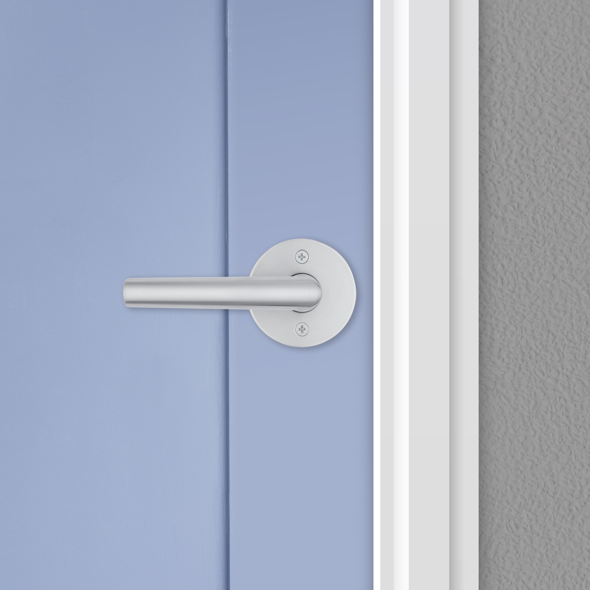 Milan Hall/Closet Round UL Door Lever w/ Round Rose in Satin Chrome