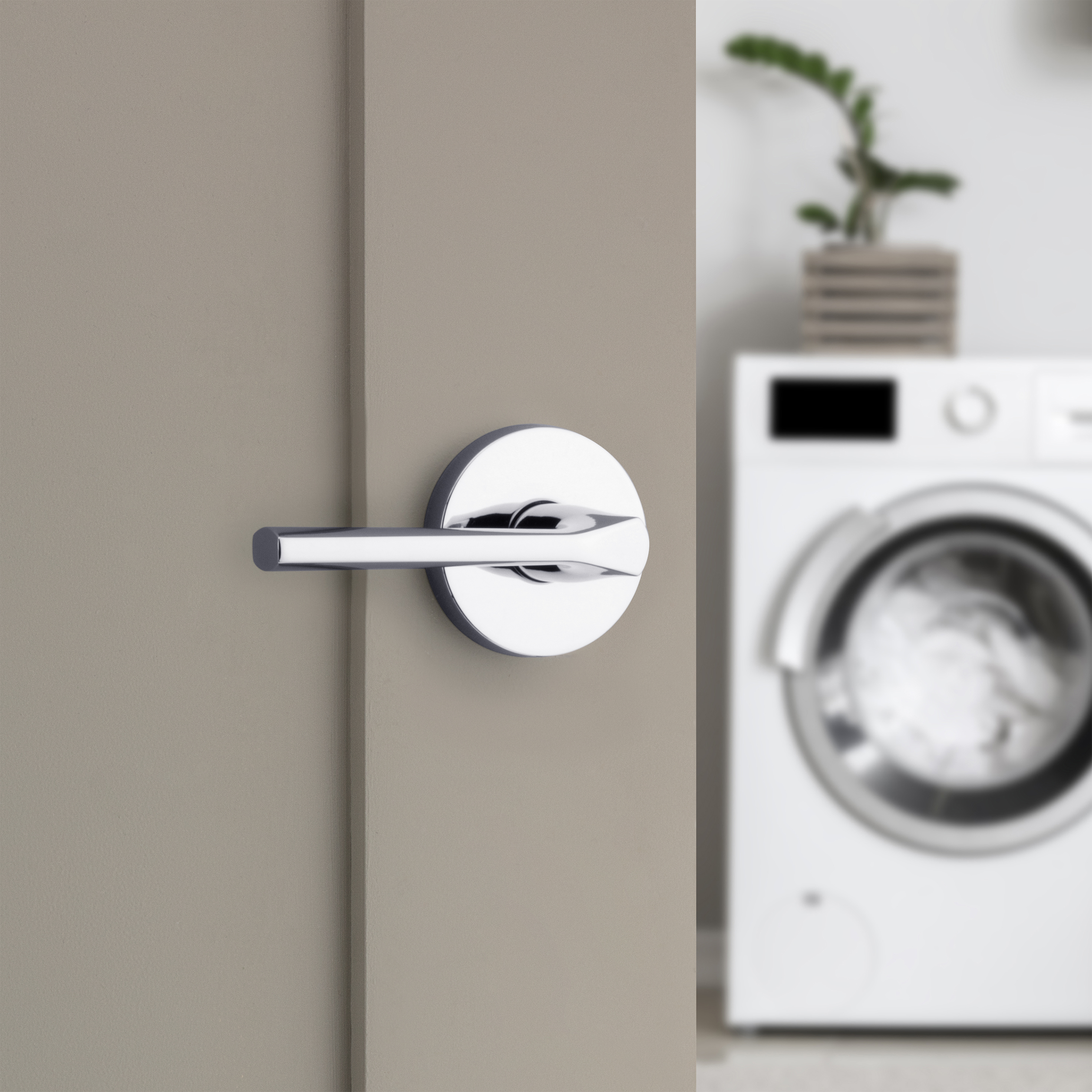 Lisbon Hall/Closet Door Lever with Round Rosette in Polished Chrome