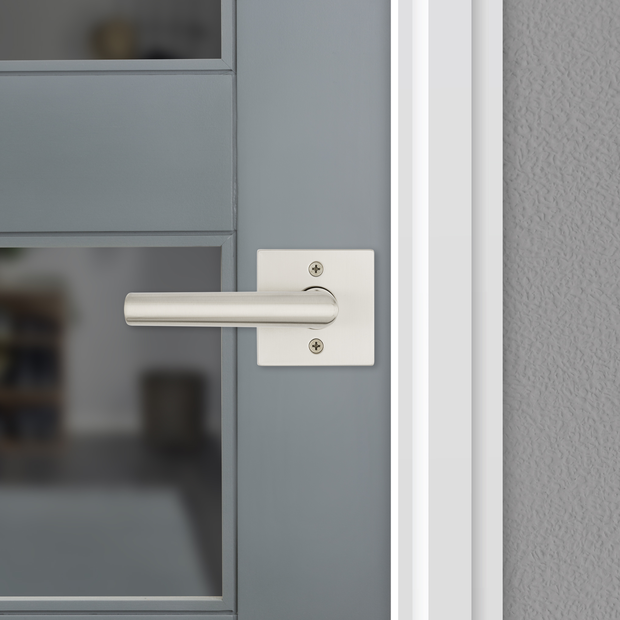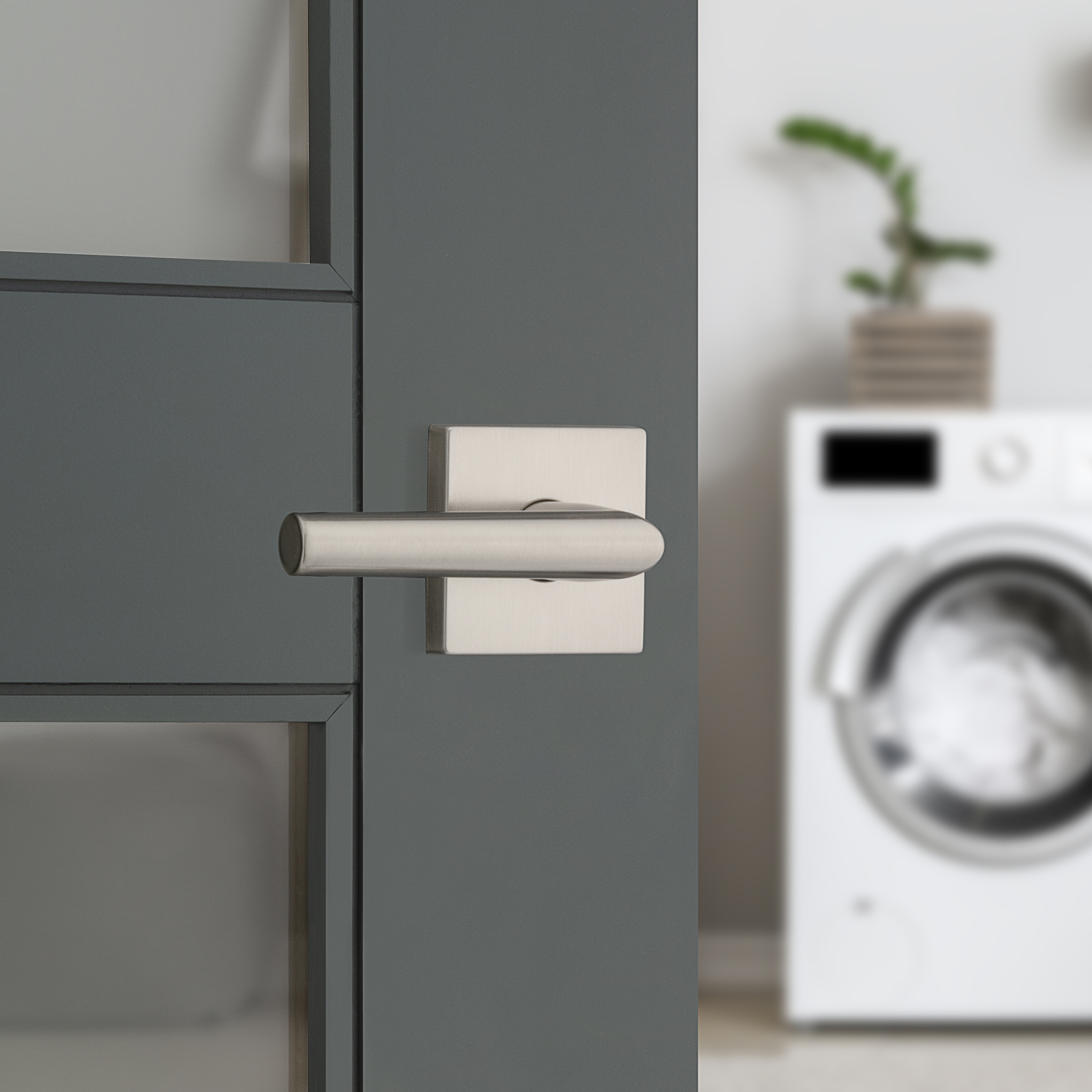 Milan Hall/Closet Door Lever with Square Rosette in Satin Nickel