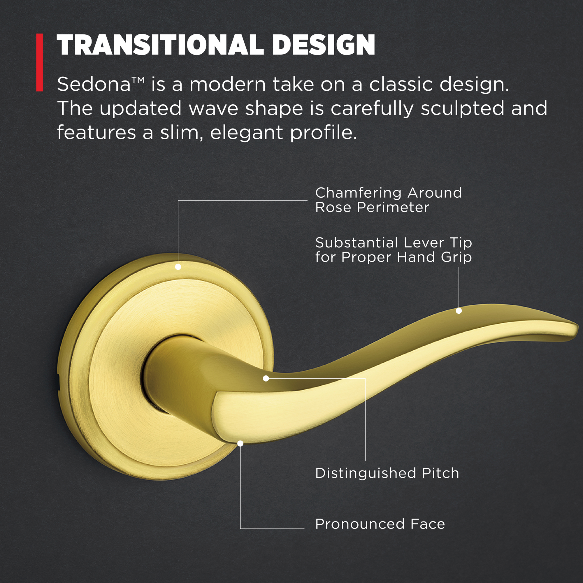 Sedona Hall/Closet Lever in Satin Brass