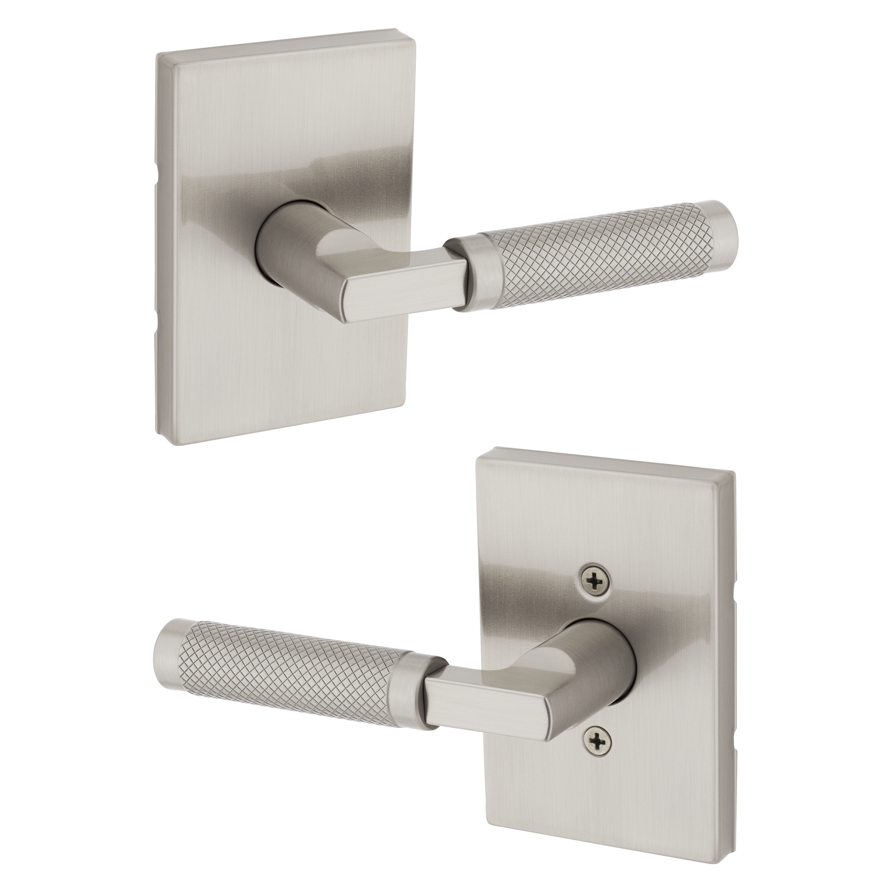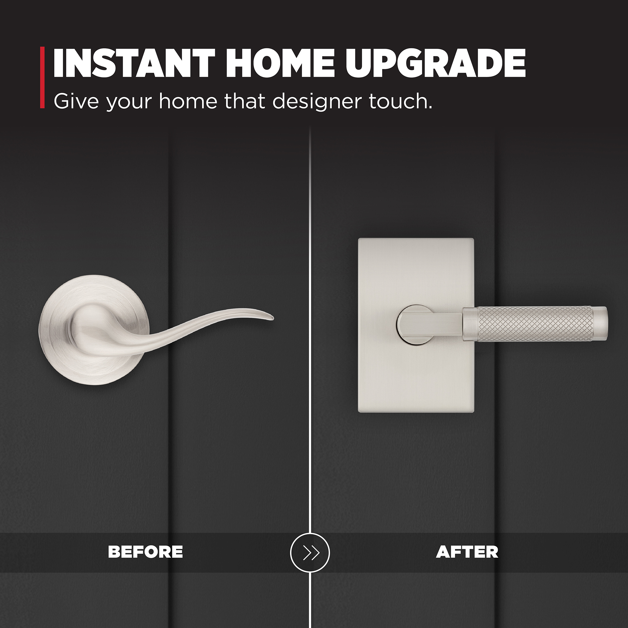 - Box Includes: Box Includes passage lever, Adjustable Latch with round and square front options or drive-in collar, round corner strike, designer rosette, screws and Allen wrench