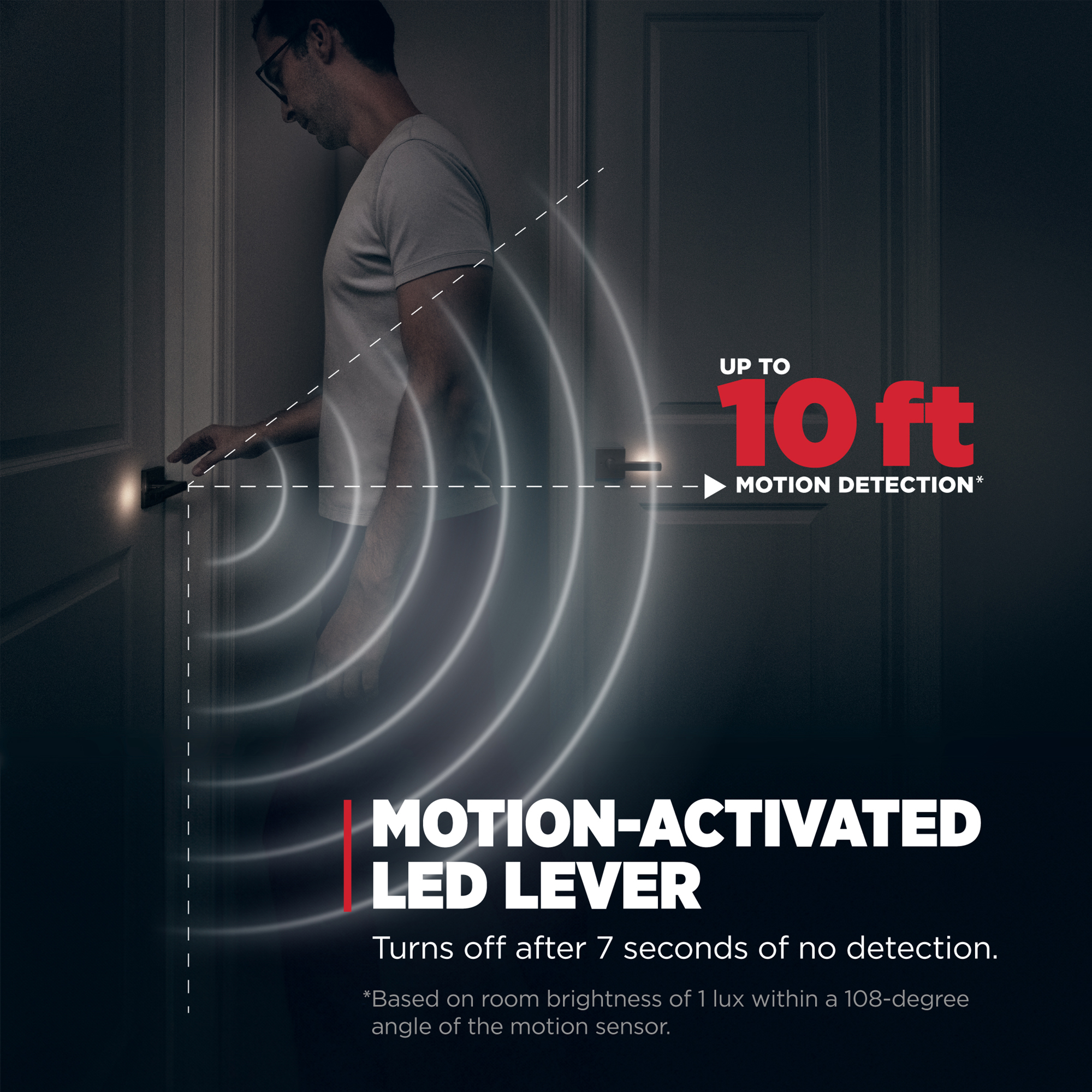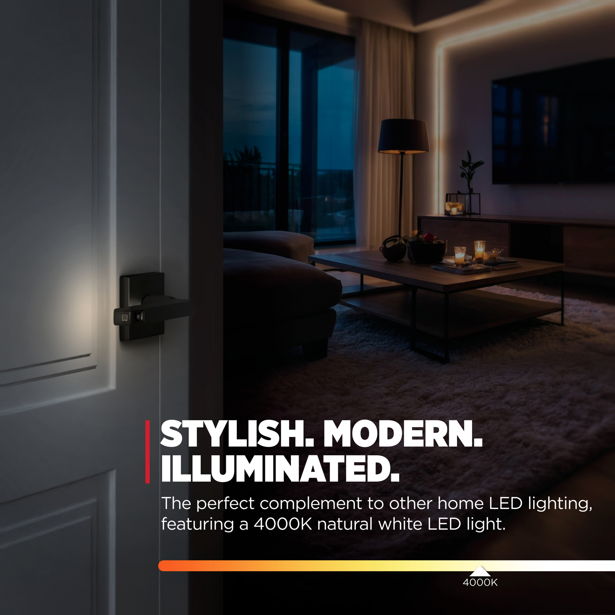 Step into a new era of safety and style with the Halifax™ LED Lever. The LED light illuminates as you approach, making the handle easy to find in the dark, in kids’ bedrooms or during a power outage. Combine it with Halifax™ levers you already own for a unified, modern look throughout your home