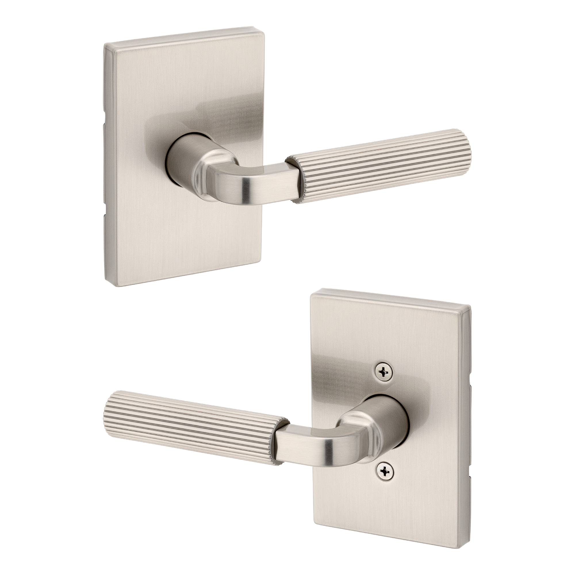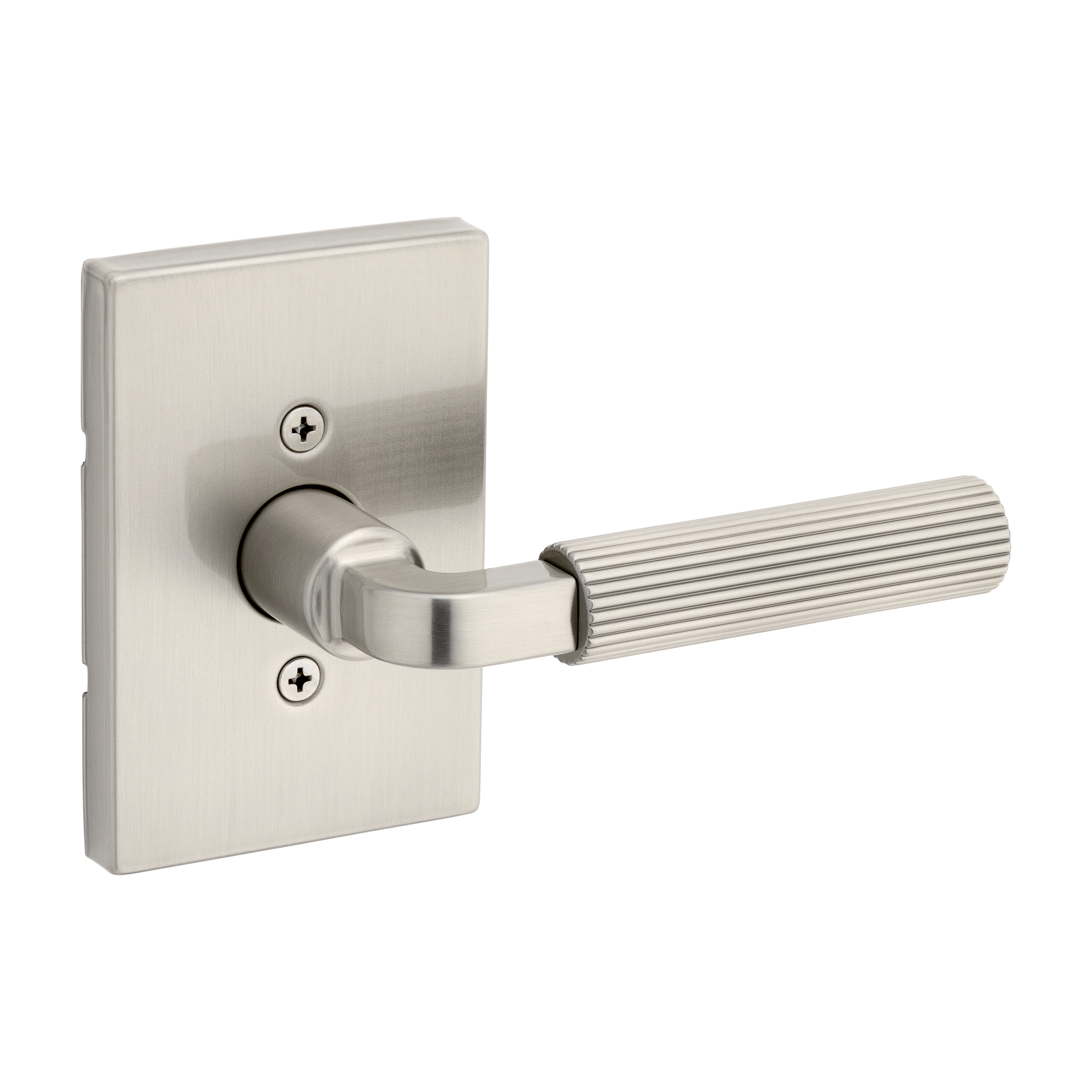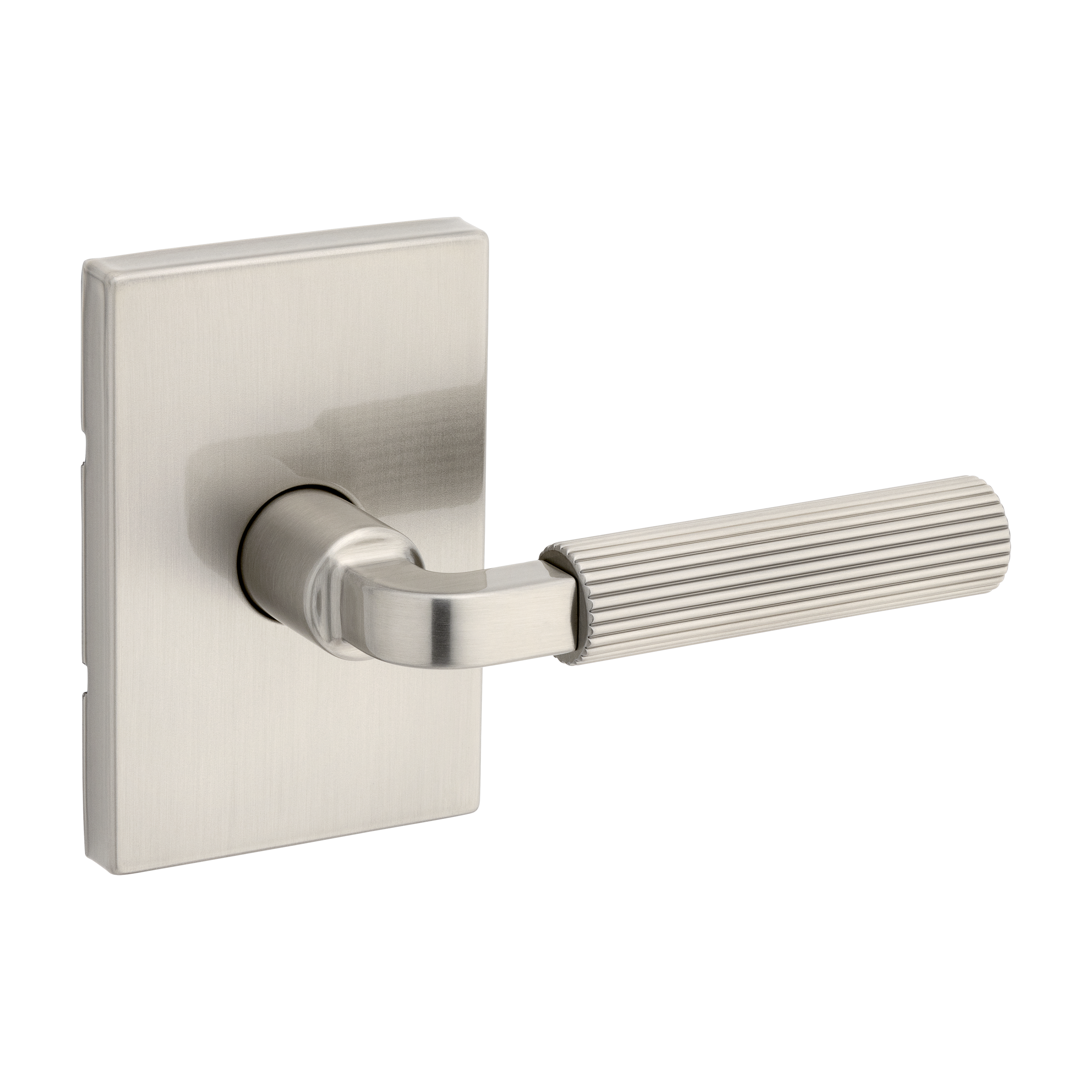 Mirada Reeded Hall/Closet Lever w/ Rectangular Rose in Satin Nickel