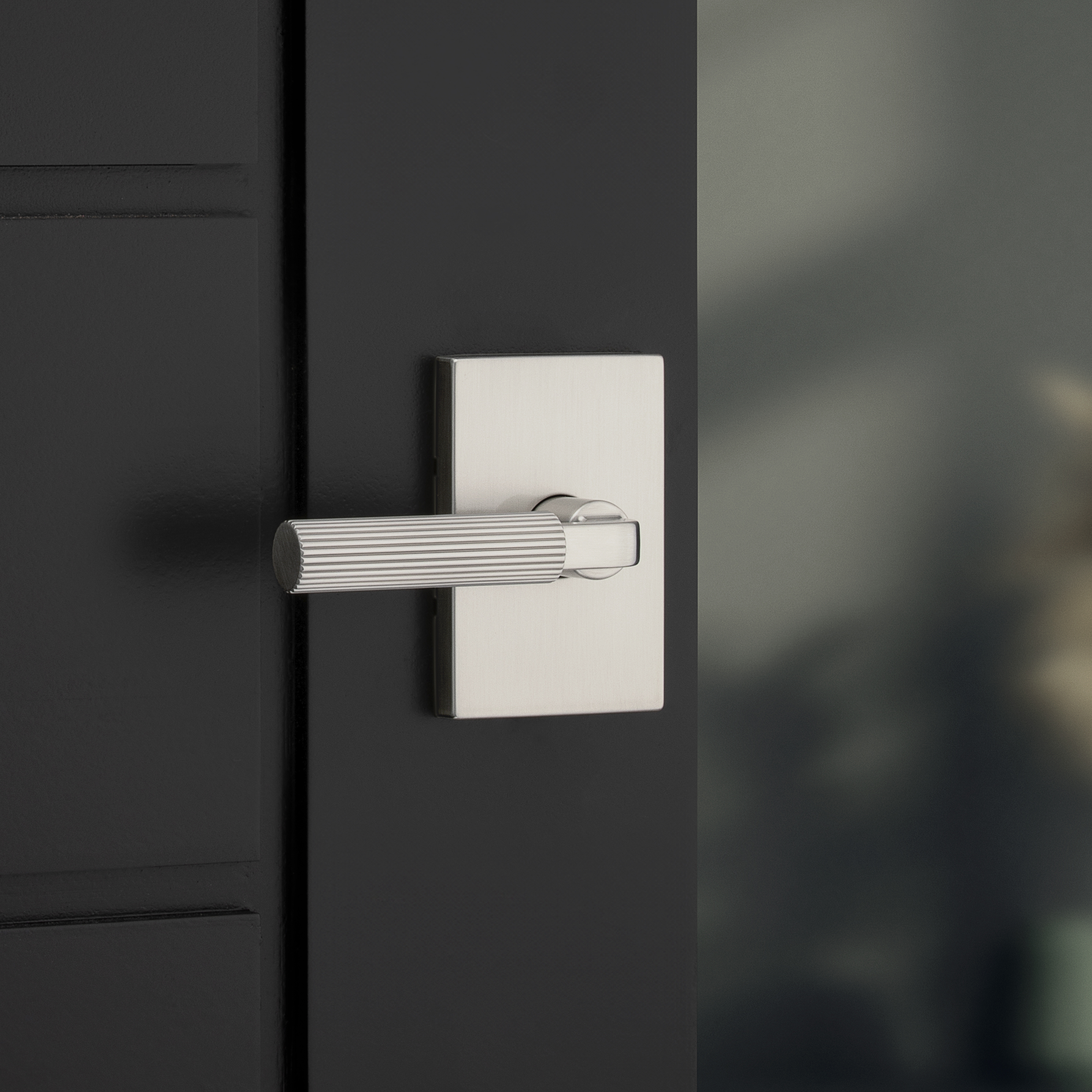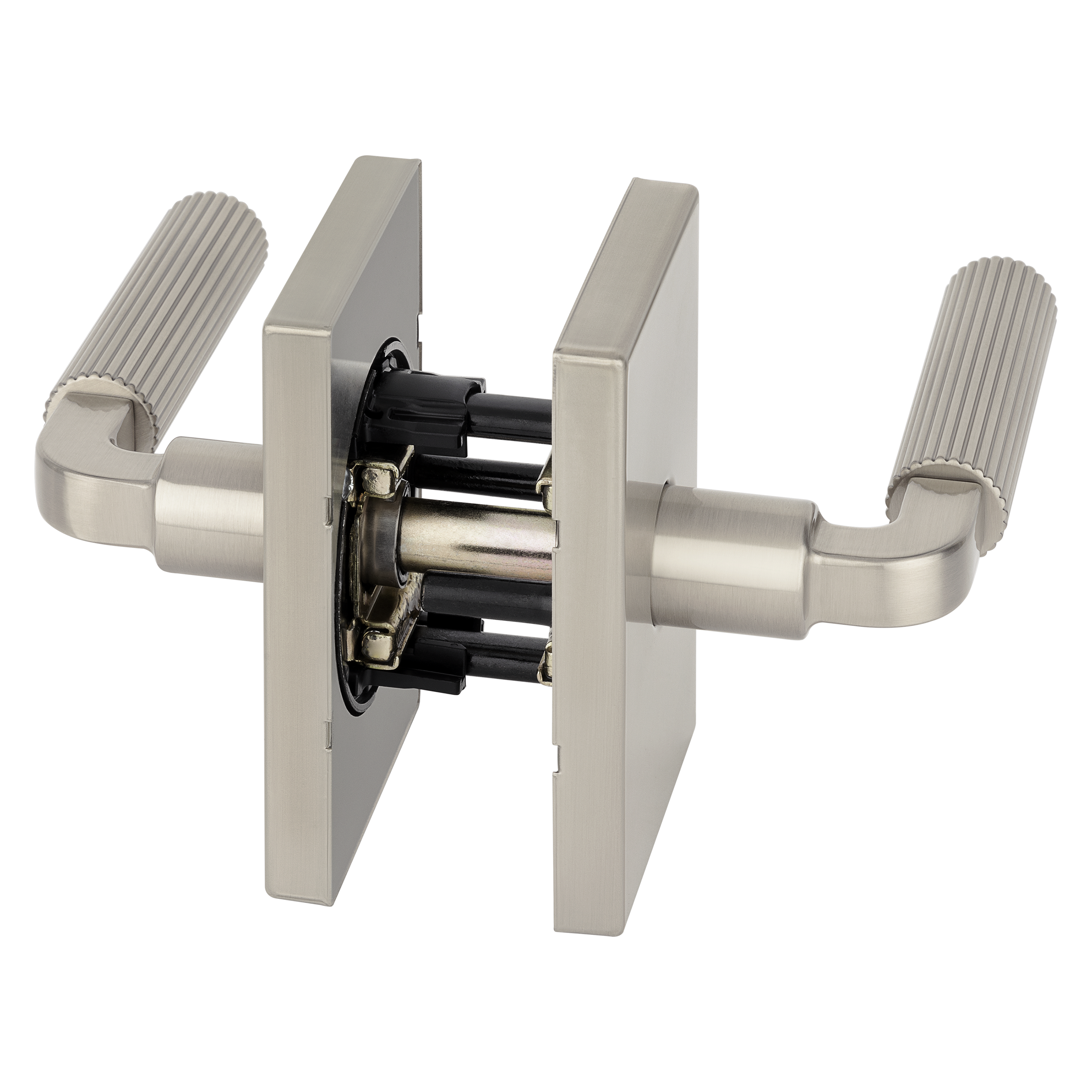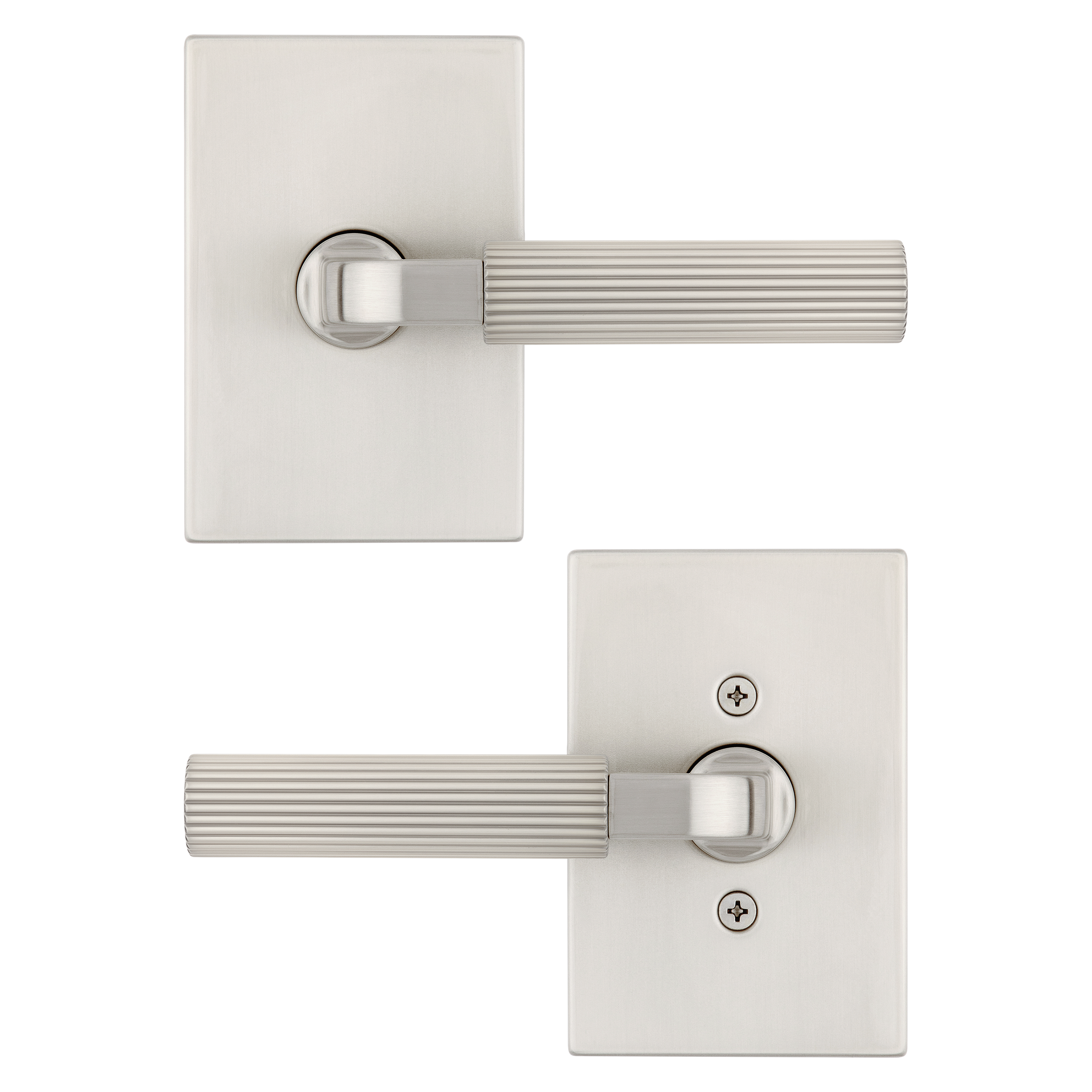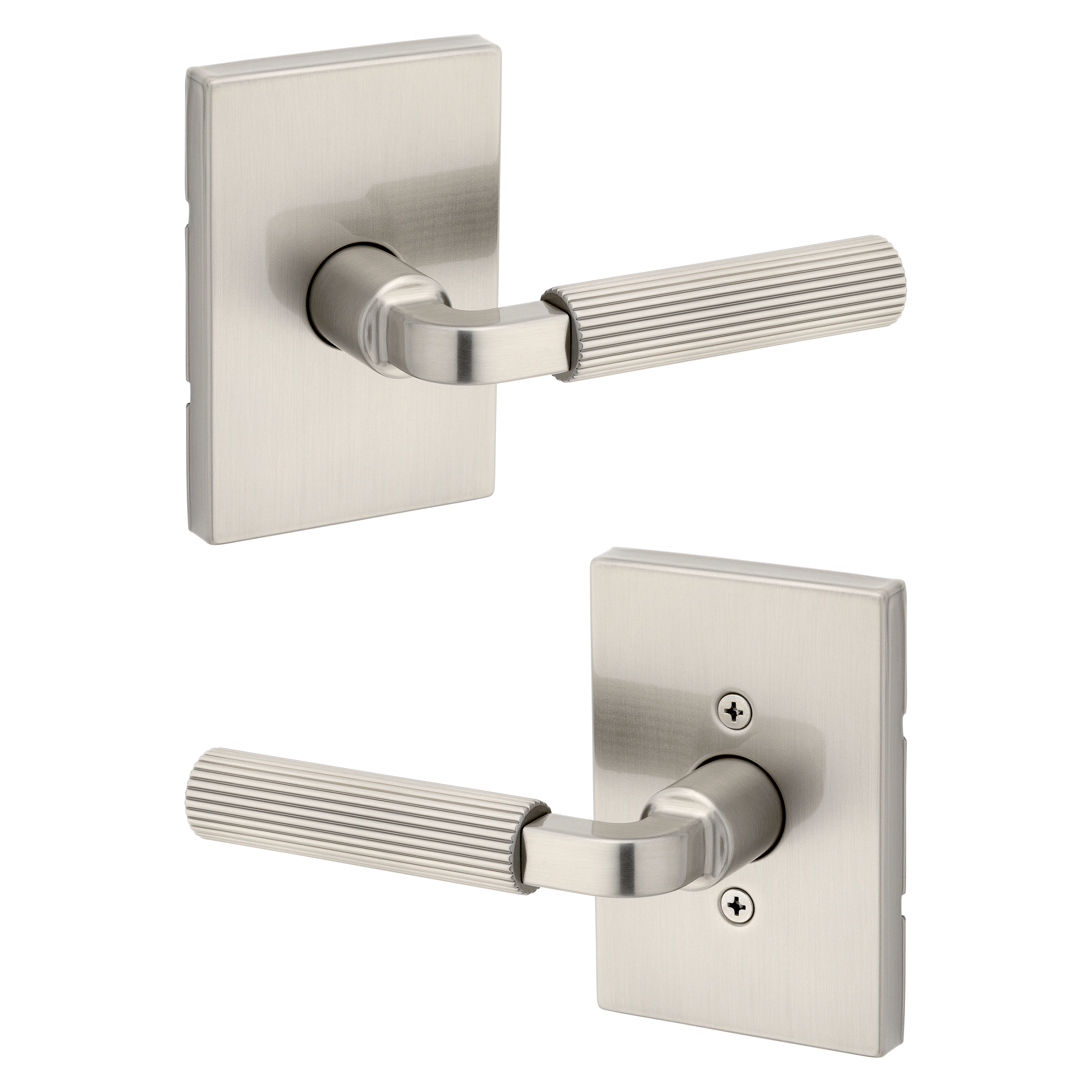 Mirada Reeded Hall/Closet Lever w/ Rectangular Rose in Satin Nickel