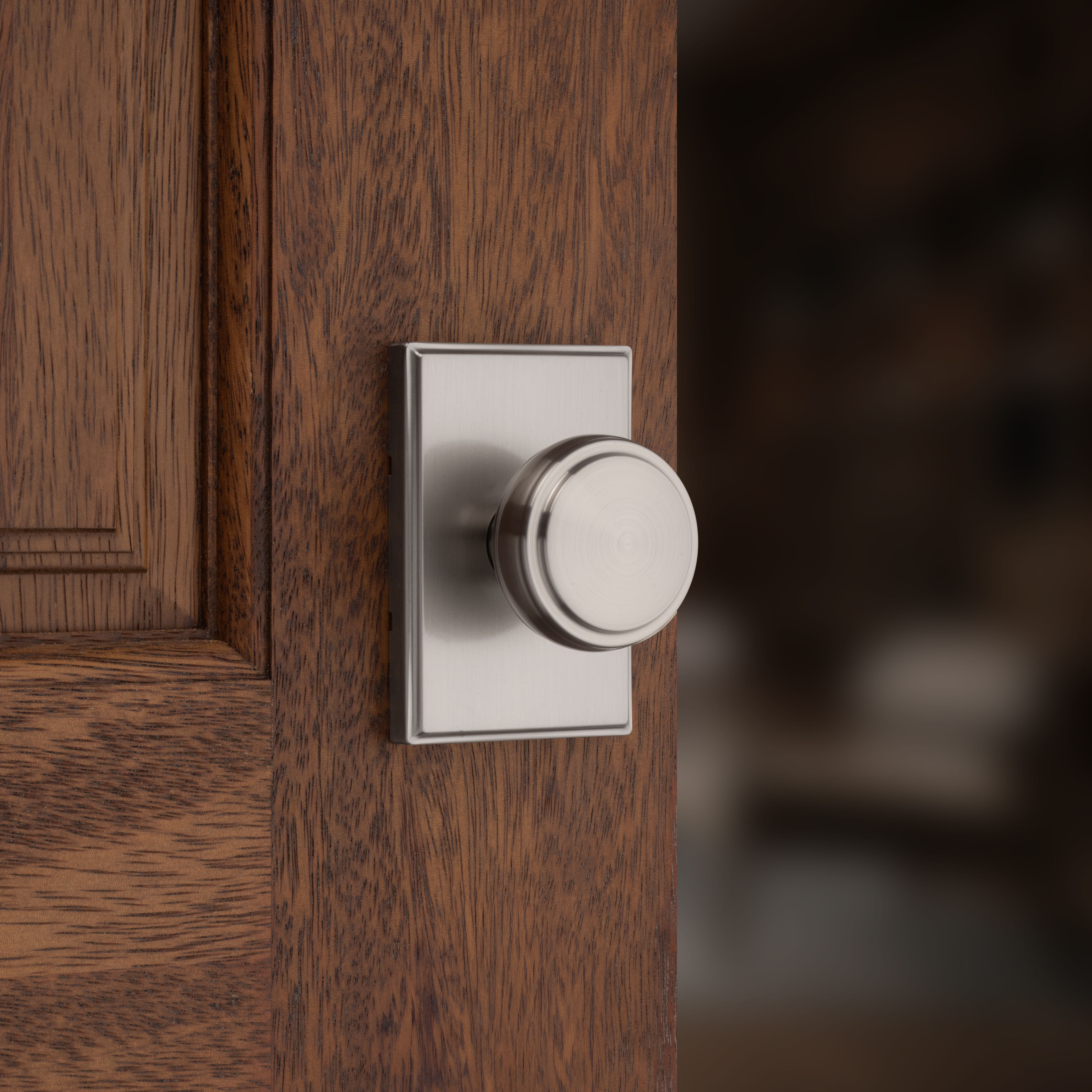 Sora Hall/Closet Knob w/ Rectangular Rose in Satin Nickel