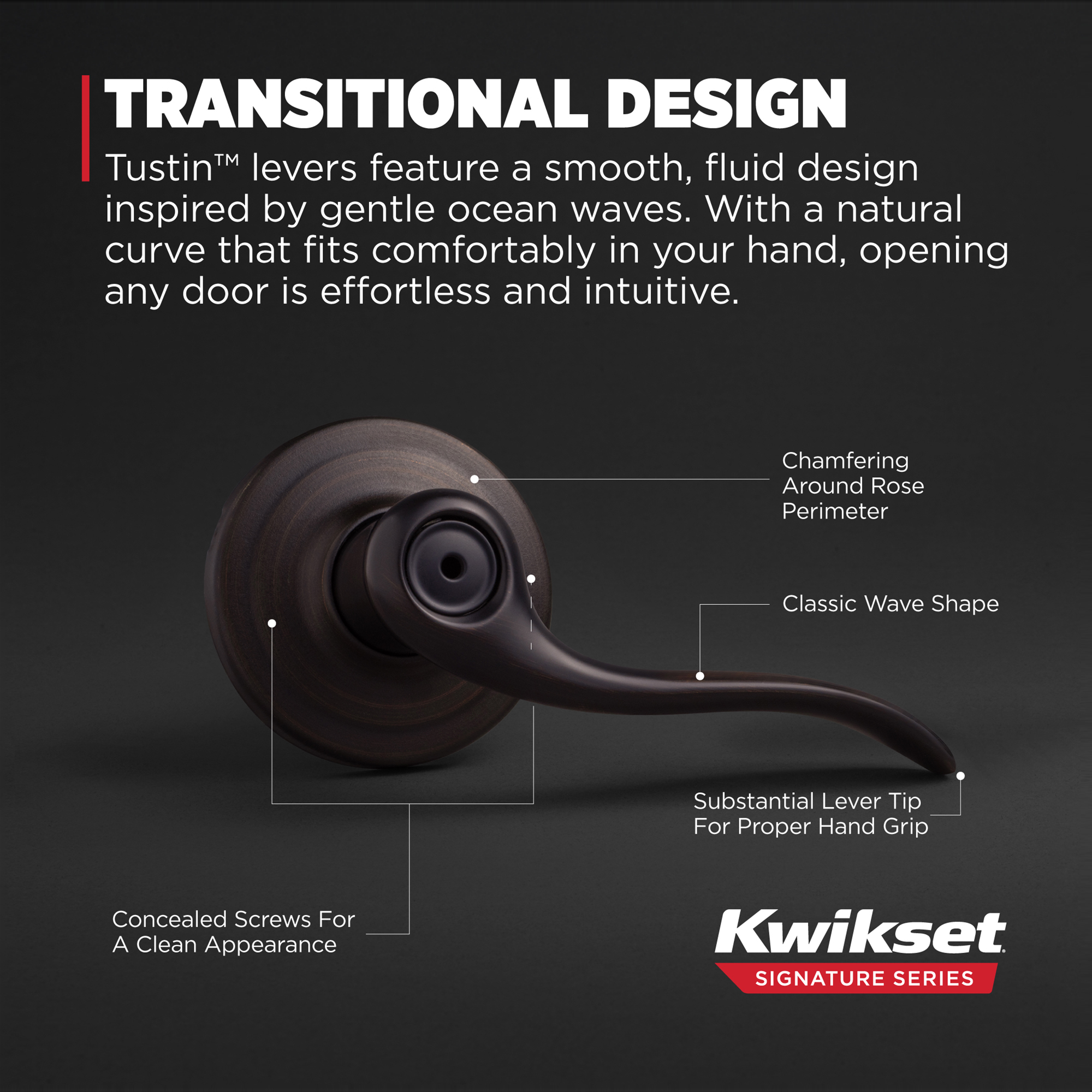 Tustin™ levers feature a smooth, fluid design inspired by gentle ocean waves. With a natural curve that fits comfortably in your hand, opening any door is effortless and intuitive. This sleek yet classic lever offers premium Kwikset® style and quality at a price you’ll love.