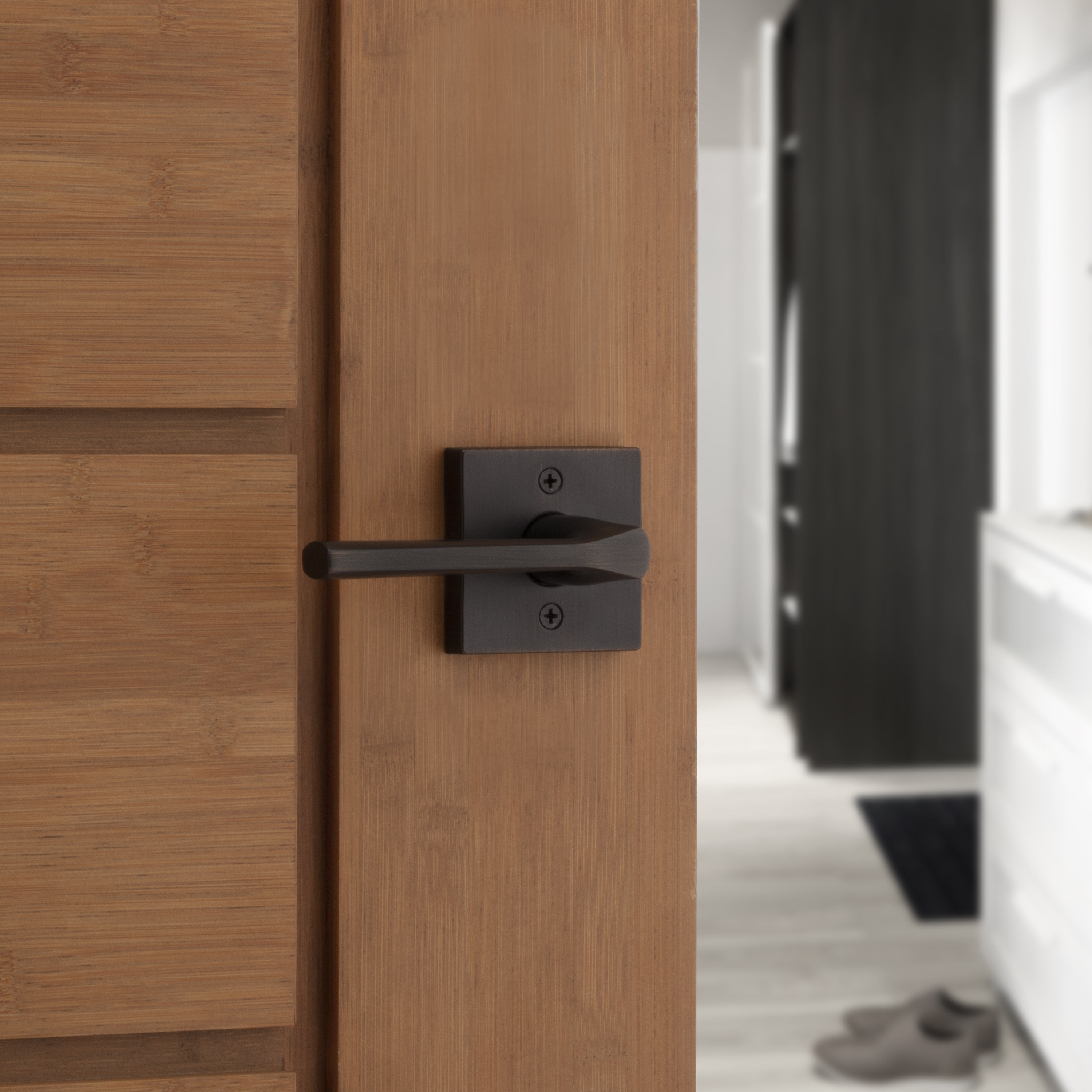 - Box Includes: Box Includes privacy lever, Adjustable Latch with round and square front options or drive-in collar, round corner strike, designer rosette, screws and Allen wrench