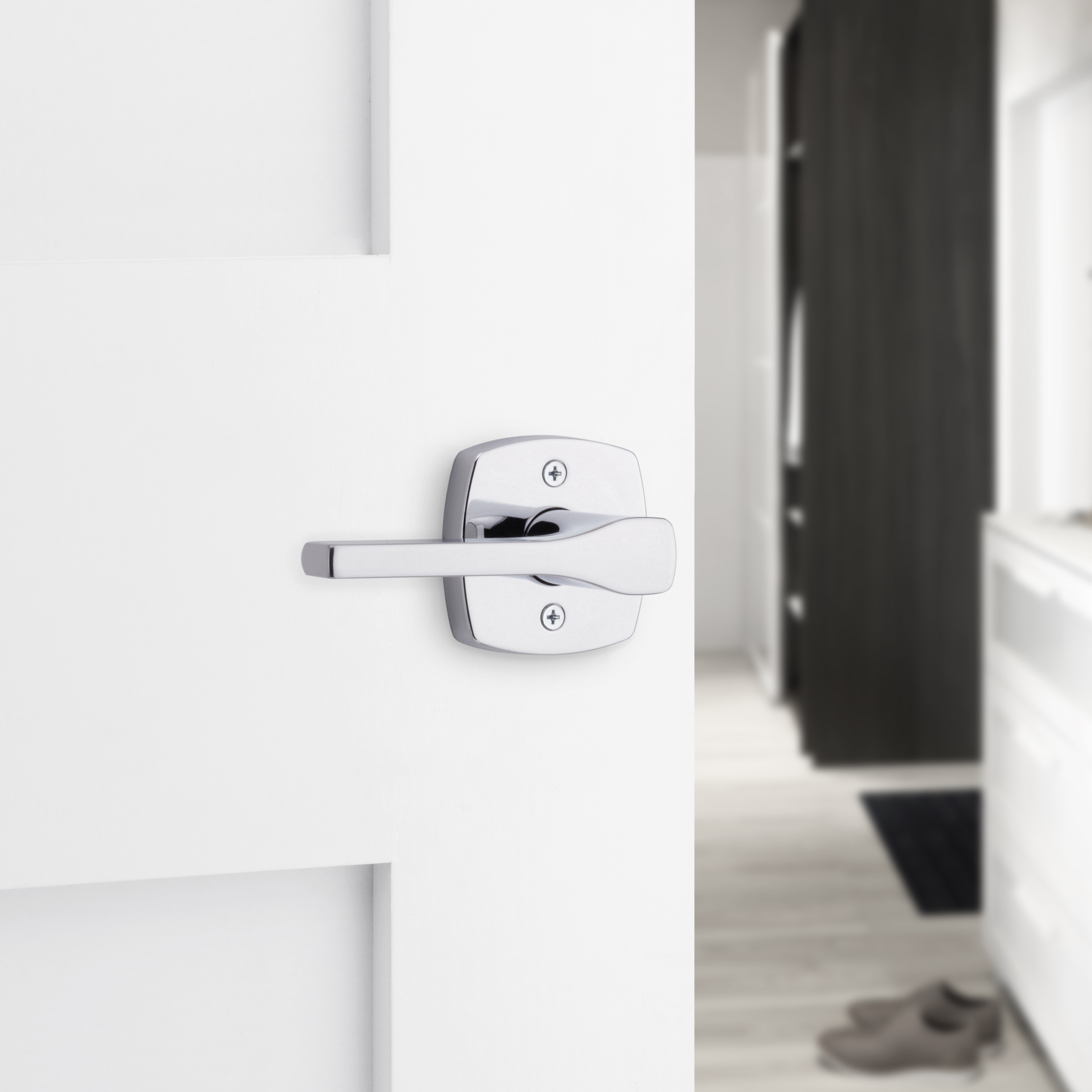 - Box Includes: Box Includes privacy lever, Adjustable Latch with round and square front options or drive-in collar, round corner strike, designer rosette, screws and Allen wrench
