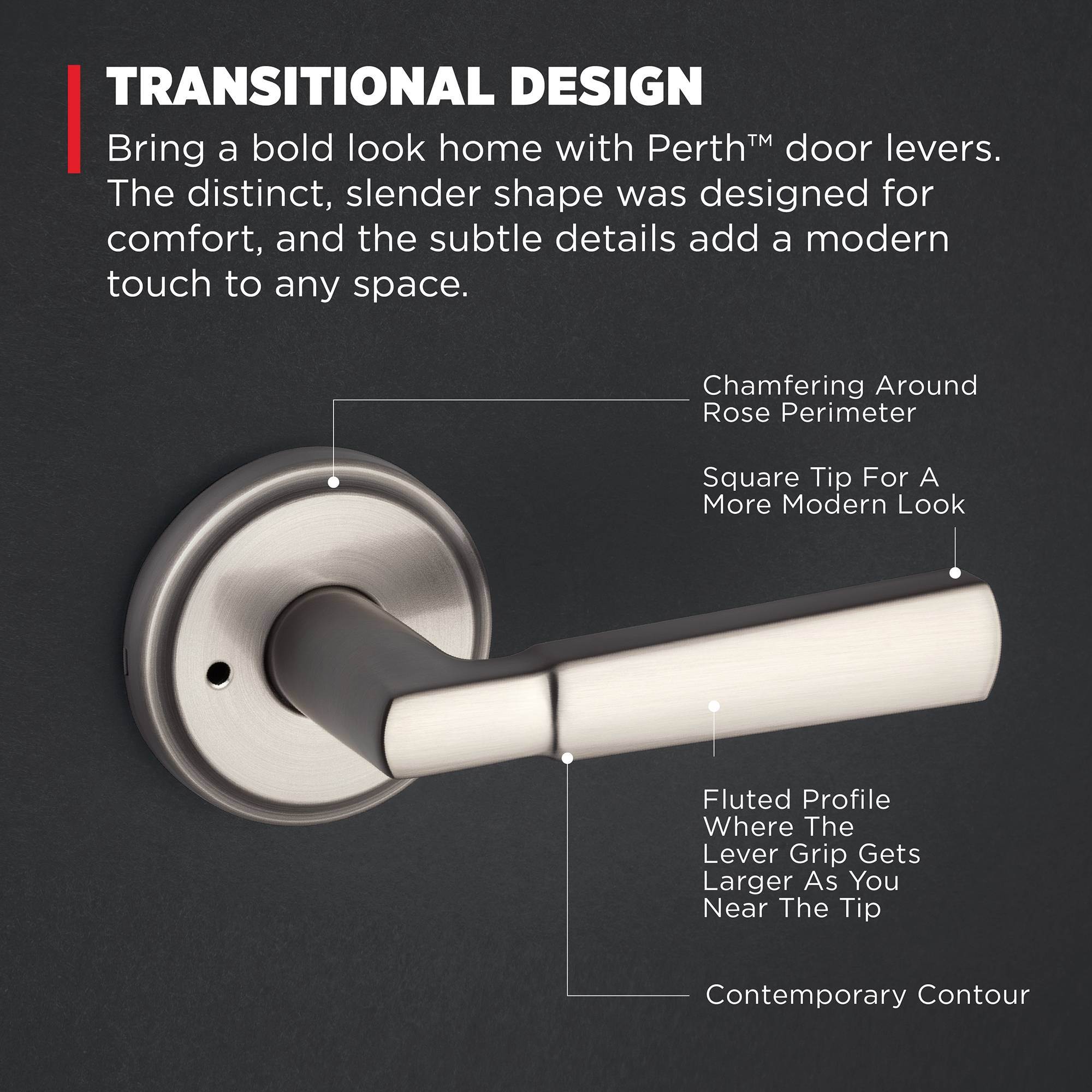 Perth Bed/Bath Lever in Satin Nickel