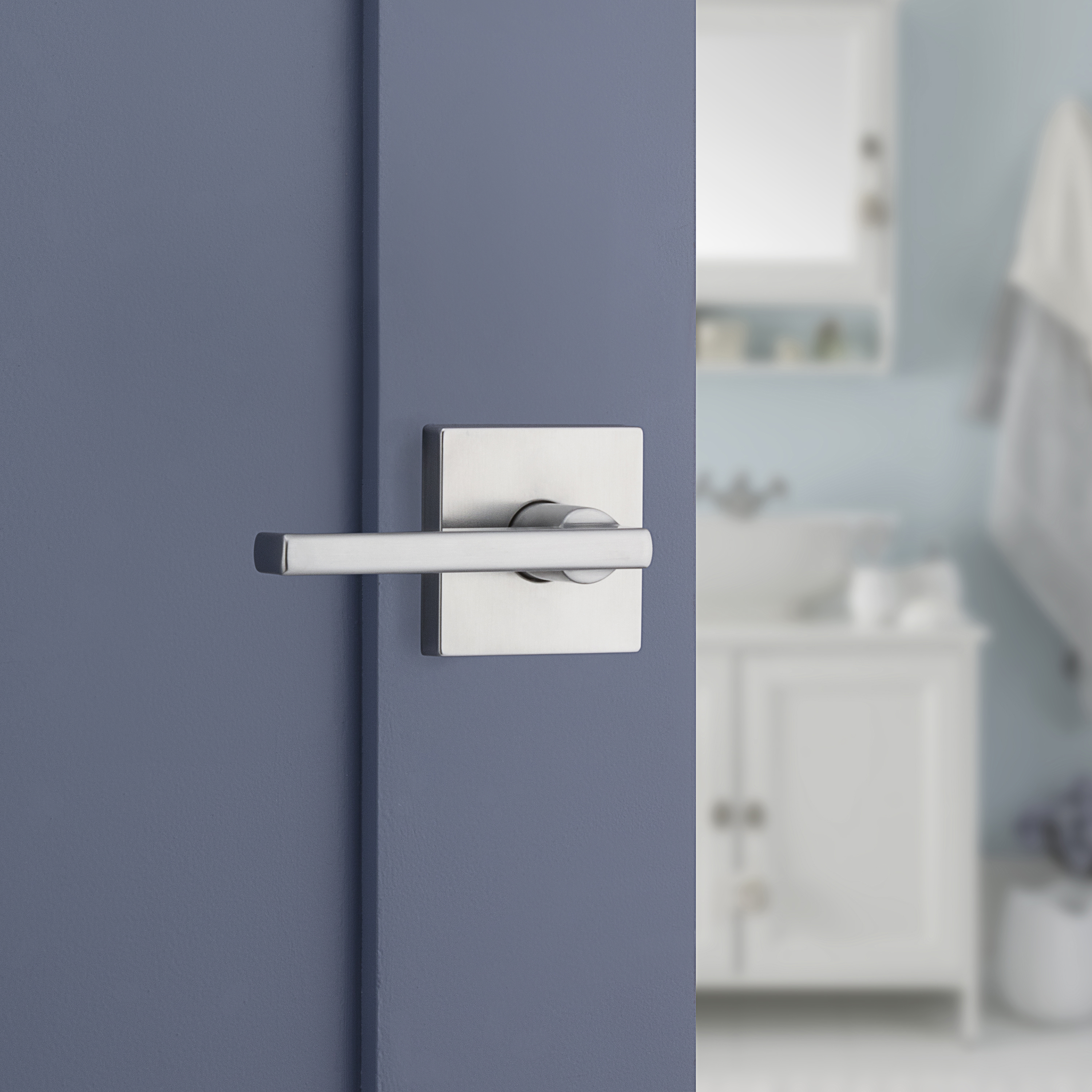 Halifax Bed/Bath Door Lever in Satin Chrome with Square Rosette