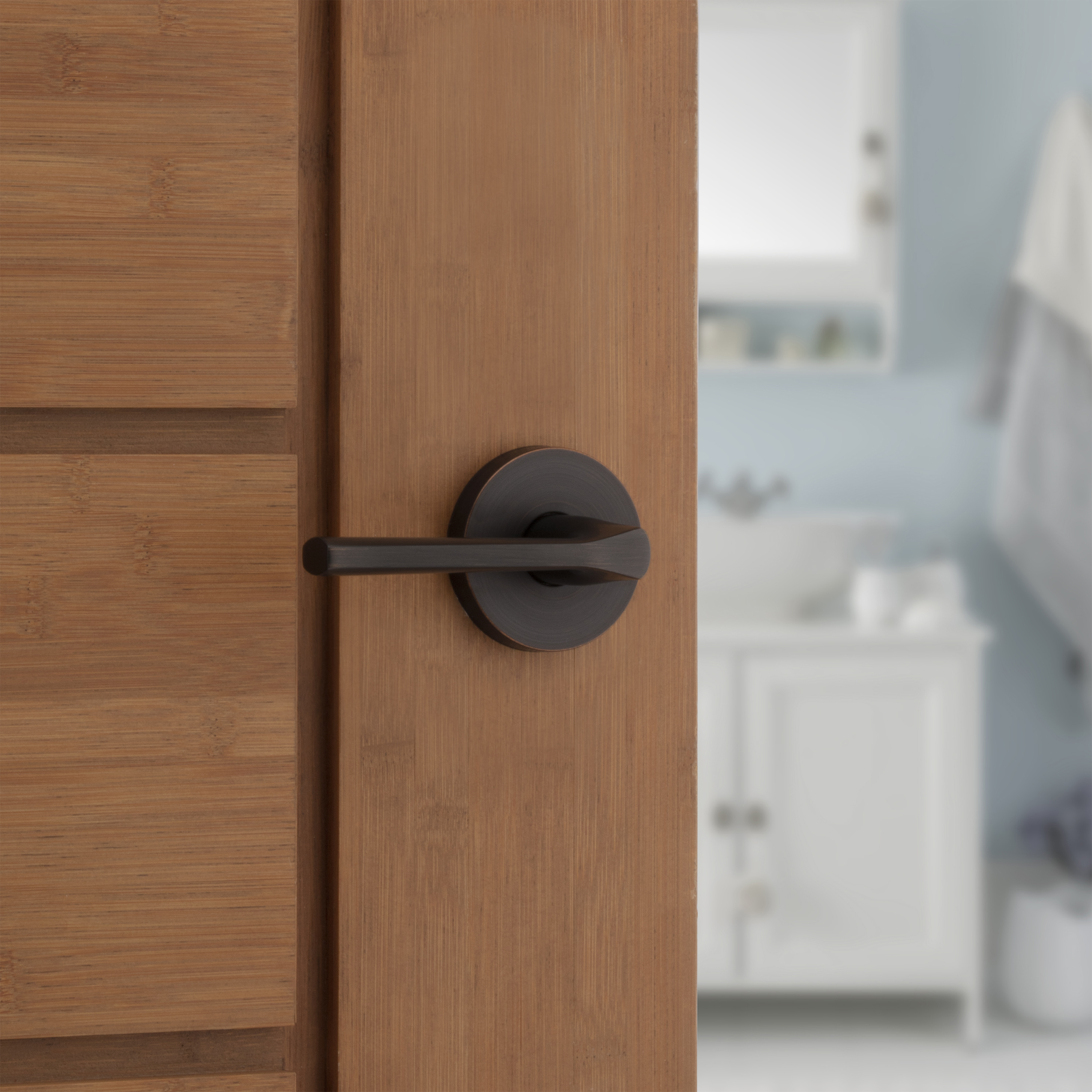 Lisbon Bed/Bath Door Lever in Venetian Bronze with Round Rosette