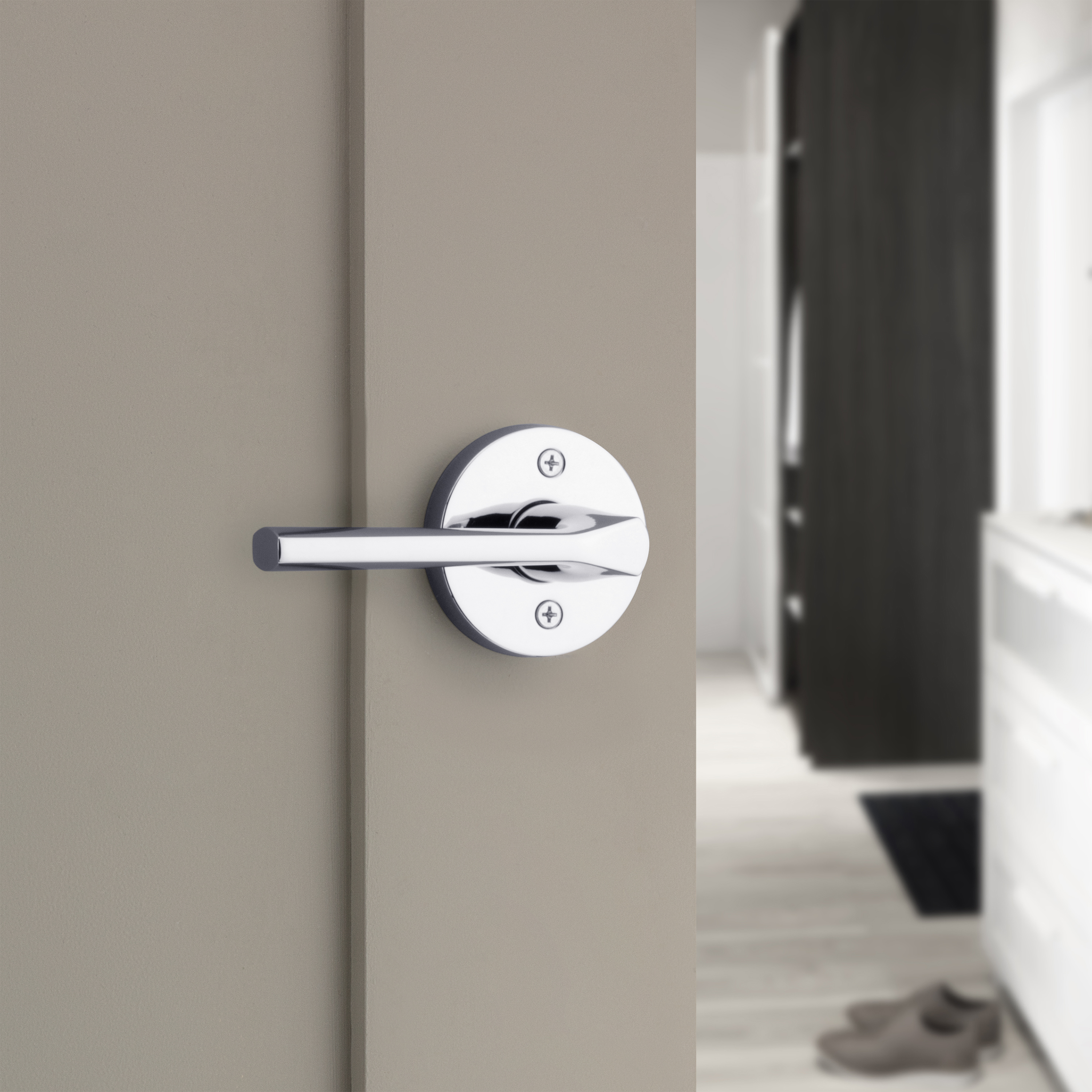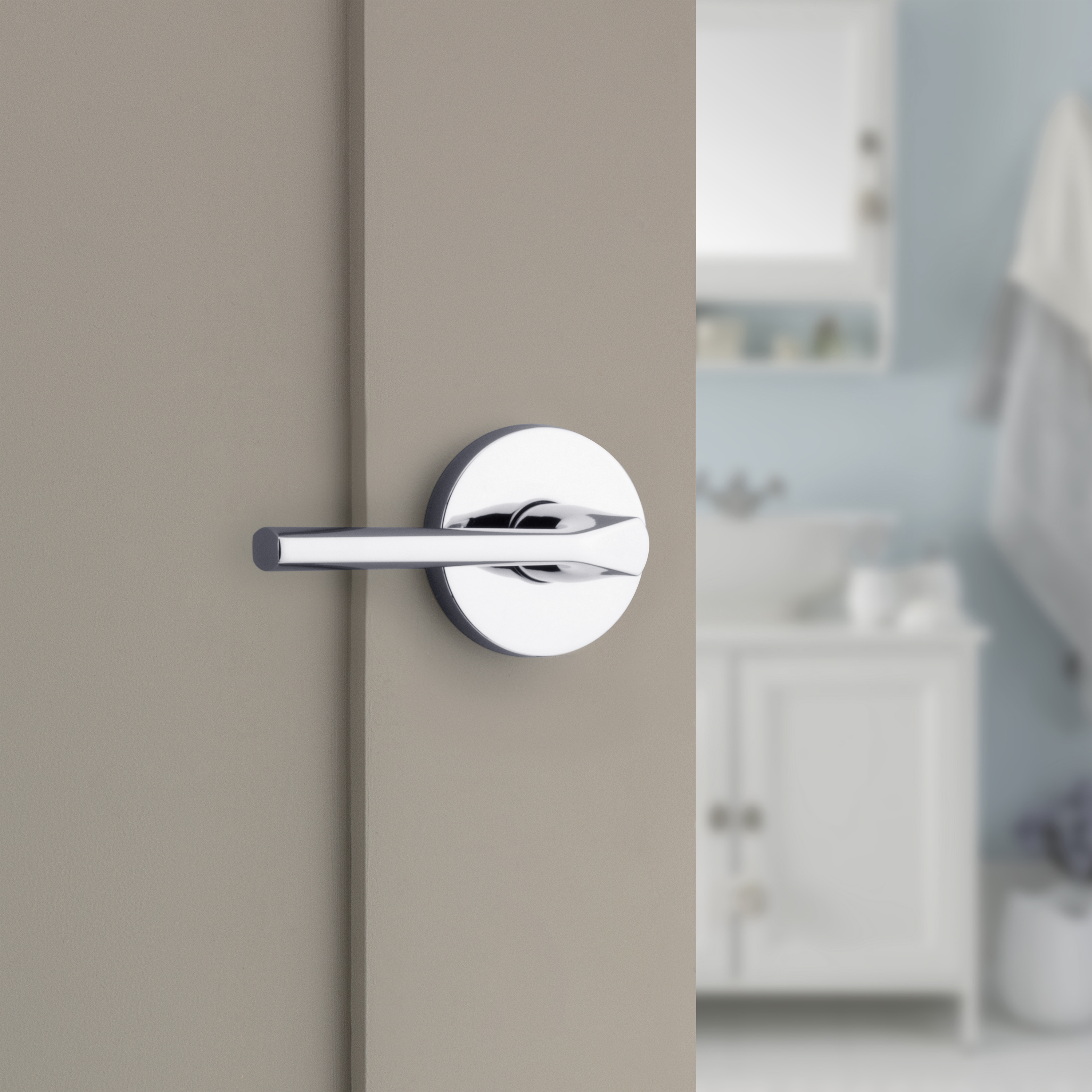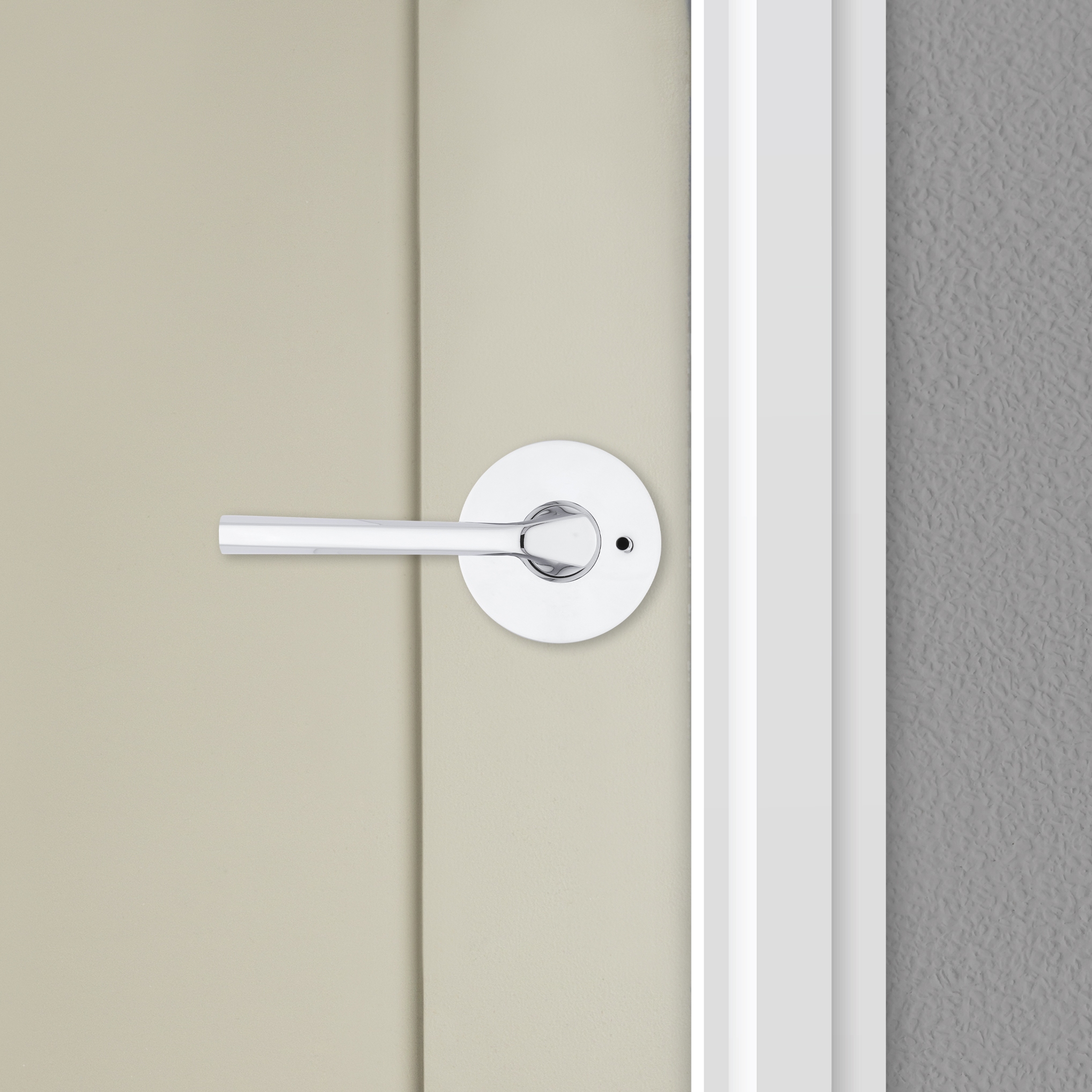 Lisbon Bed/Bath Door Lever in Polished Chrome with Round Rosette