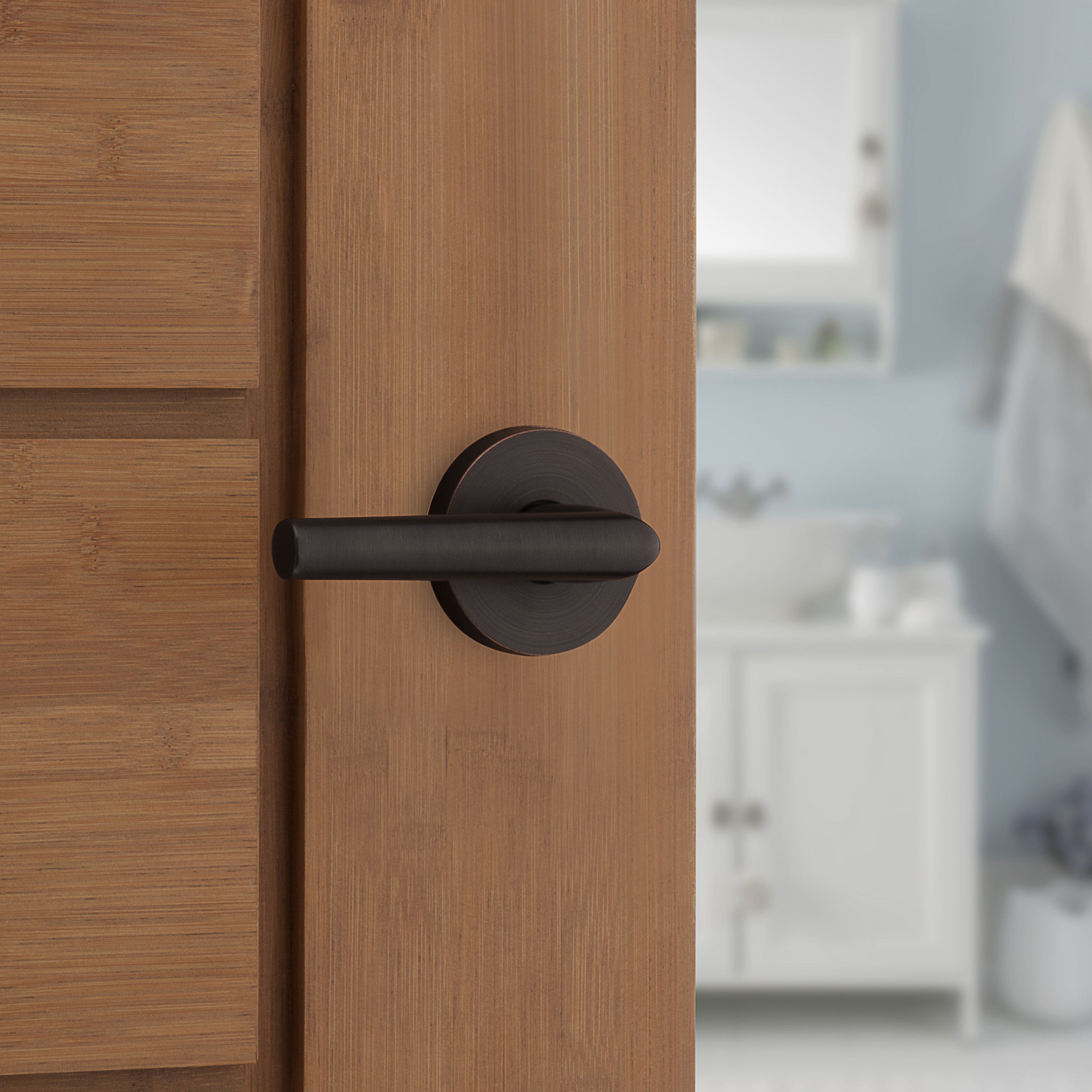 Milan Bed/Bath Door Lever in Venetian Bronze with Round Rosette