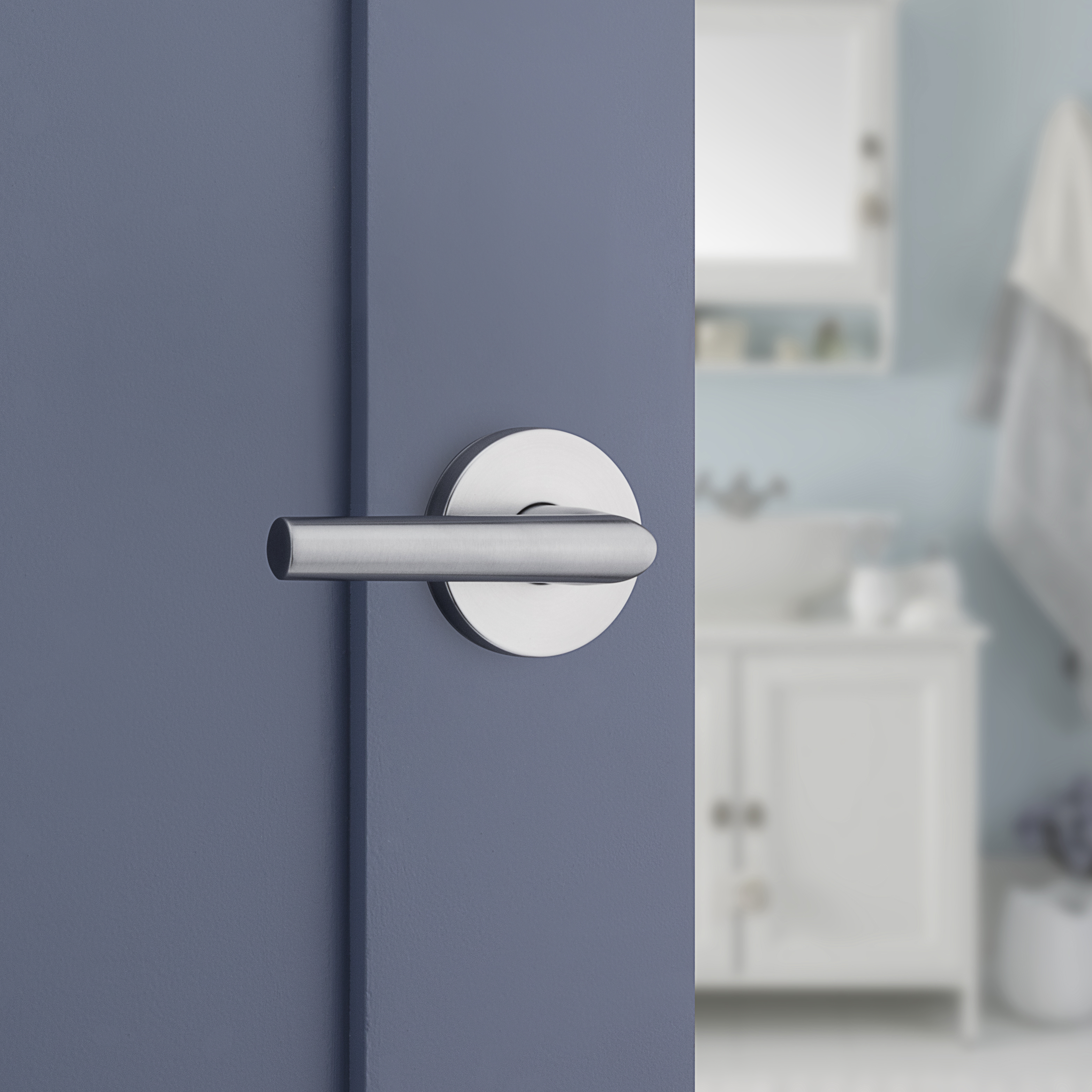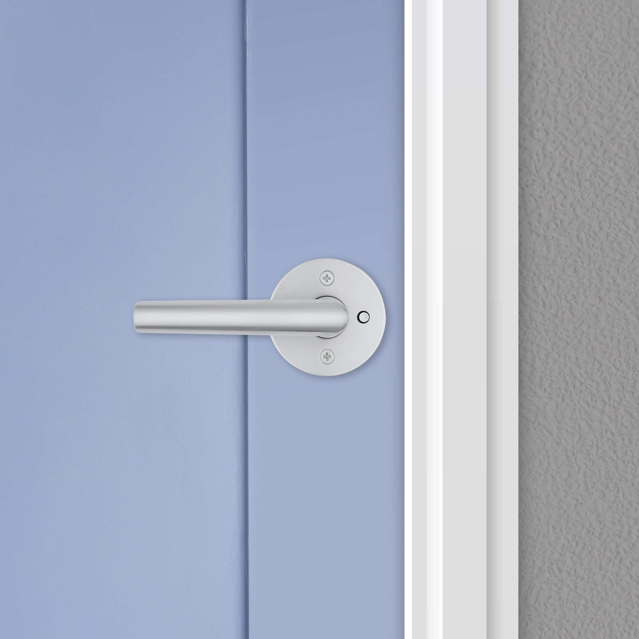 Milan Bed/Bath Door Lever in Satin Chrome with Round Rosette