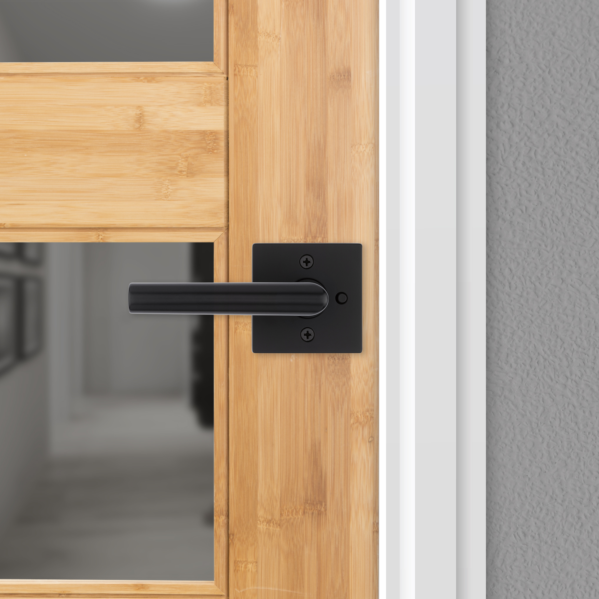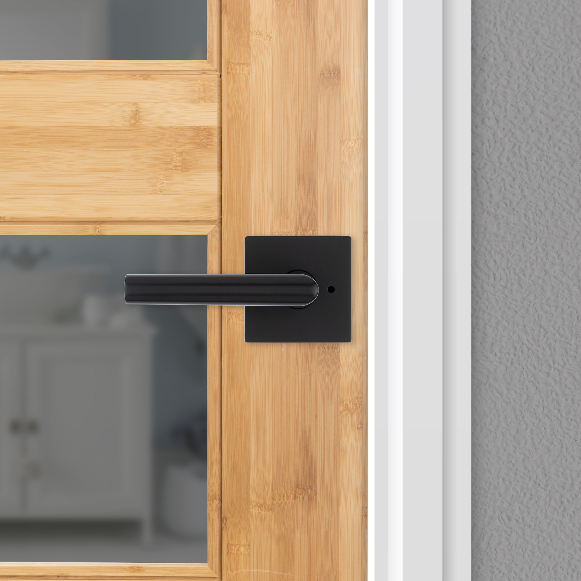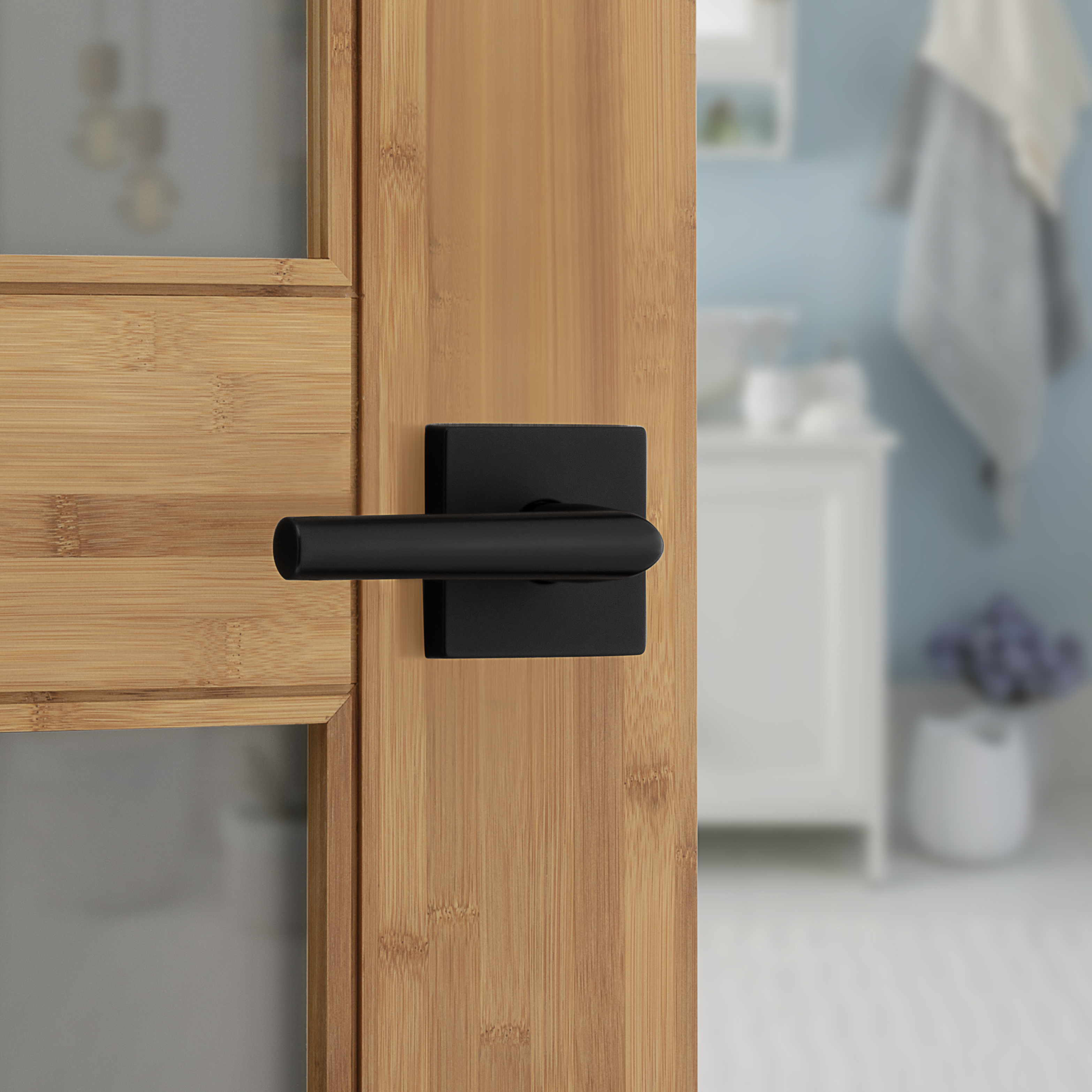 Milan Bed/Bath Door Lever in Matte Black with Square Rosette