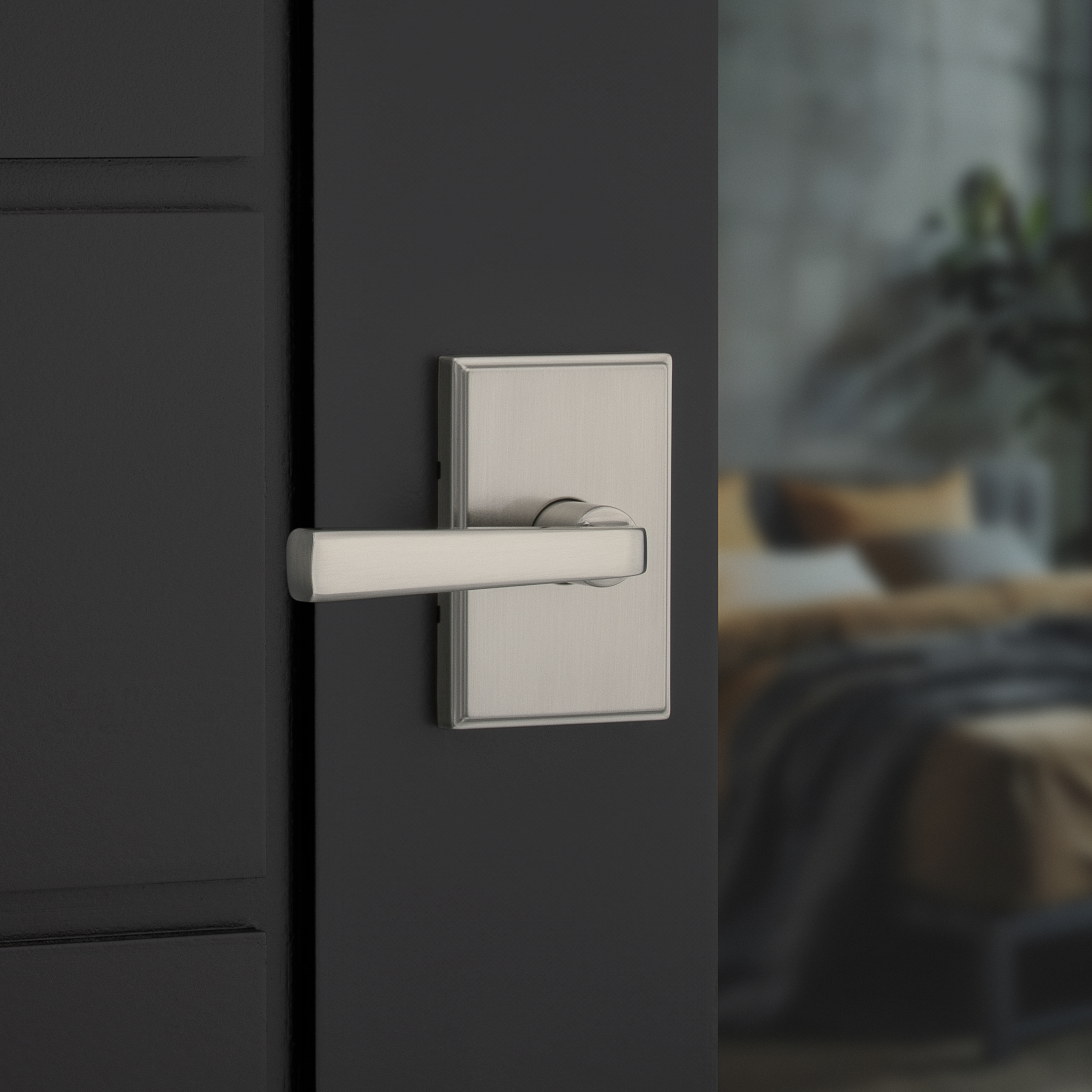 Trafford Rectangle Rose Bed/Bath Door Lever in Satin Nickel