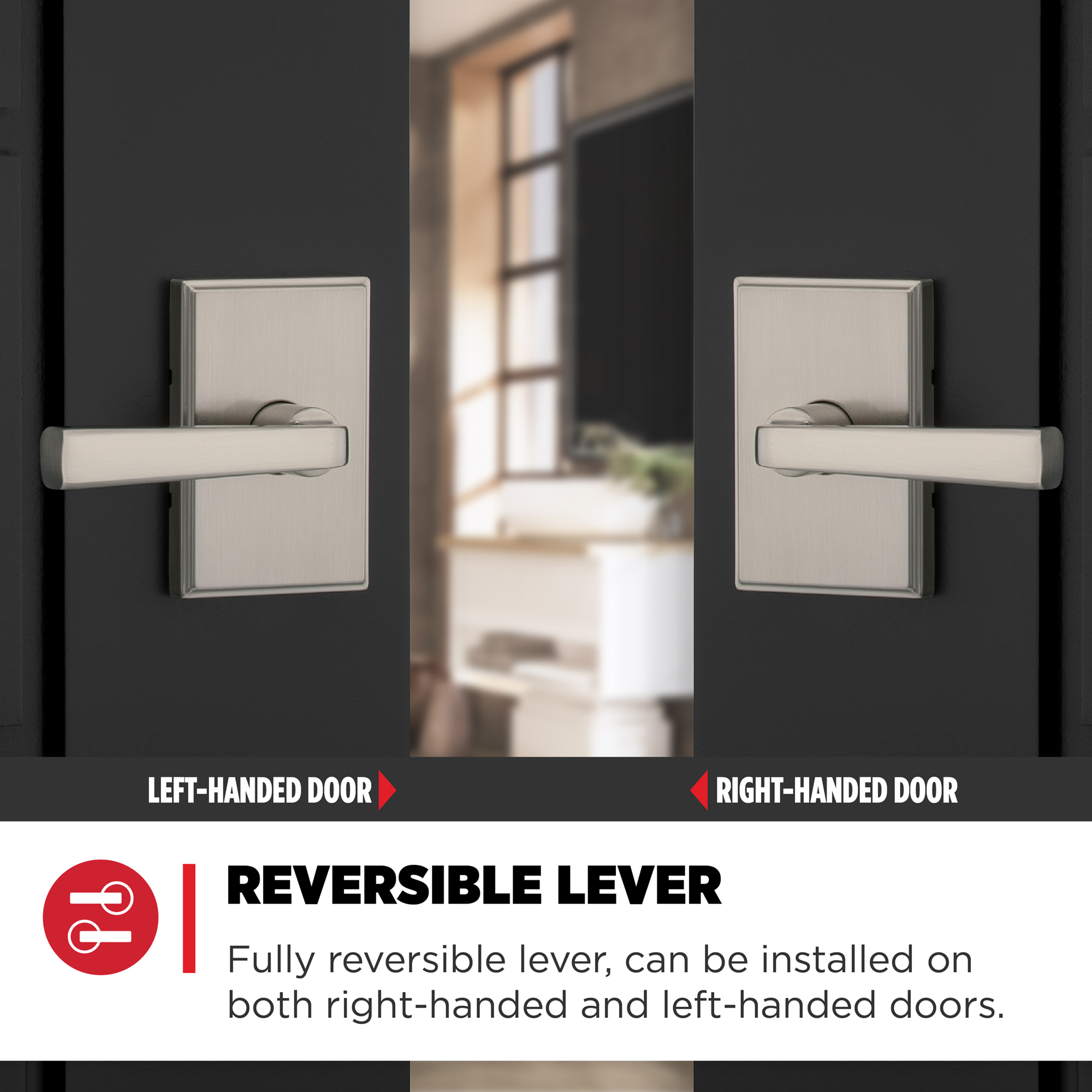 - Easy Install Reversible Lever: Do it yourself, installs in minutes with just a screwdriver. Reversible handle for left- or right-handed doors, detailed directions provided