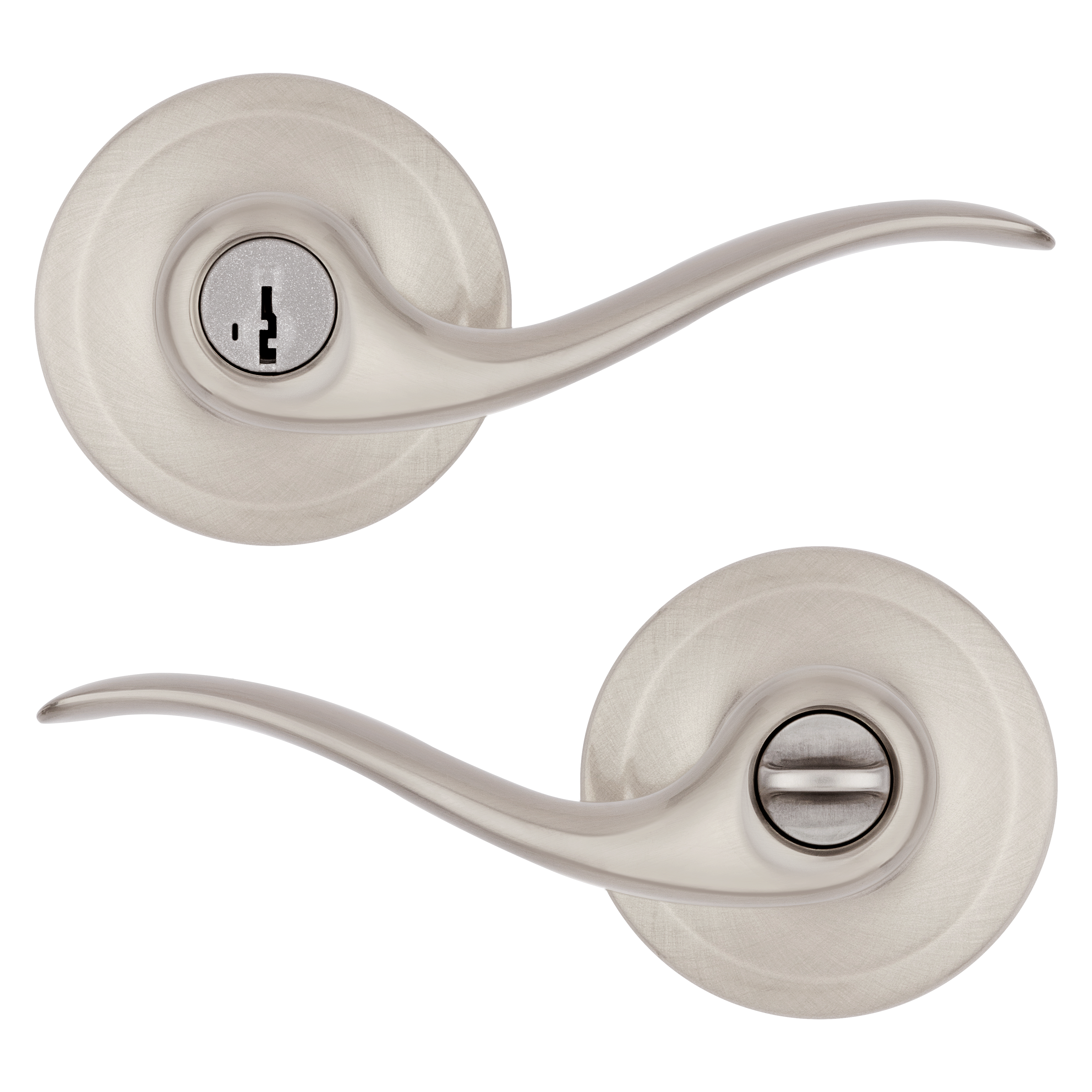Tustin™ levers feature a smooth, fluid design inspired by gentle ocean waves. With a natural curve that fits comfortably in your hand, opening any door is effortless and intuitive. This sleek yet classic lever offers premium Kwikset® style and quality at a price you’ll love.