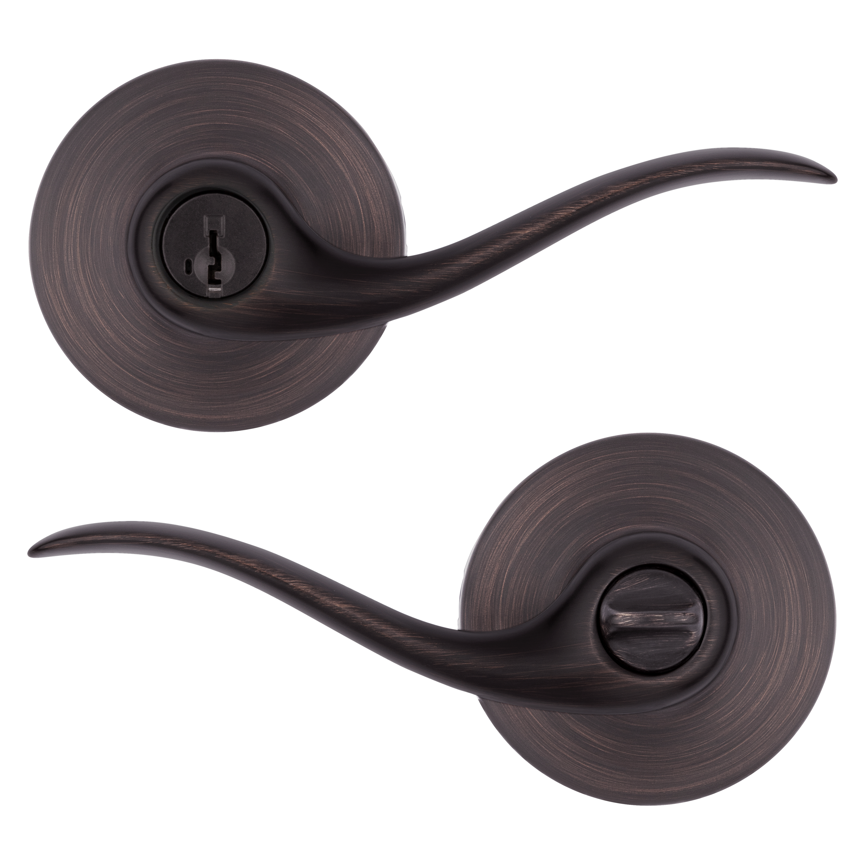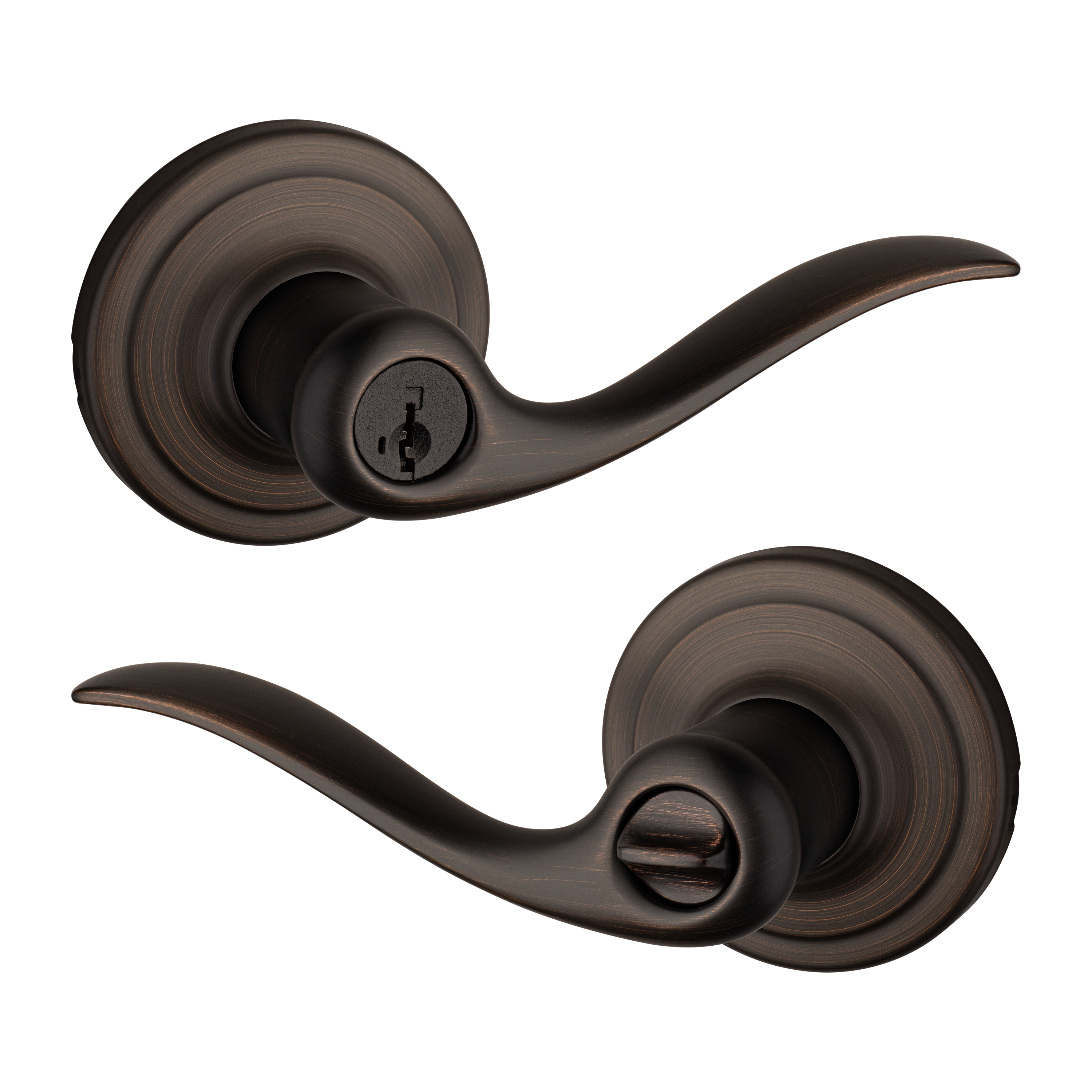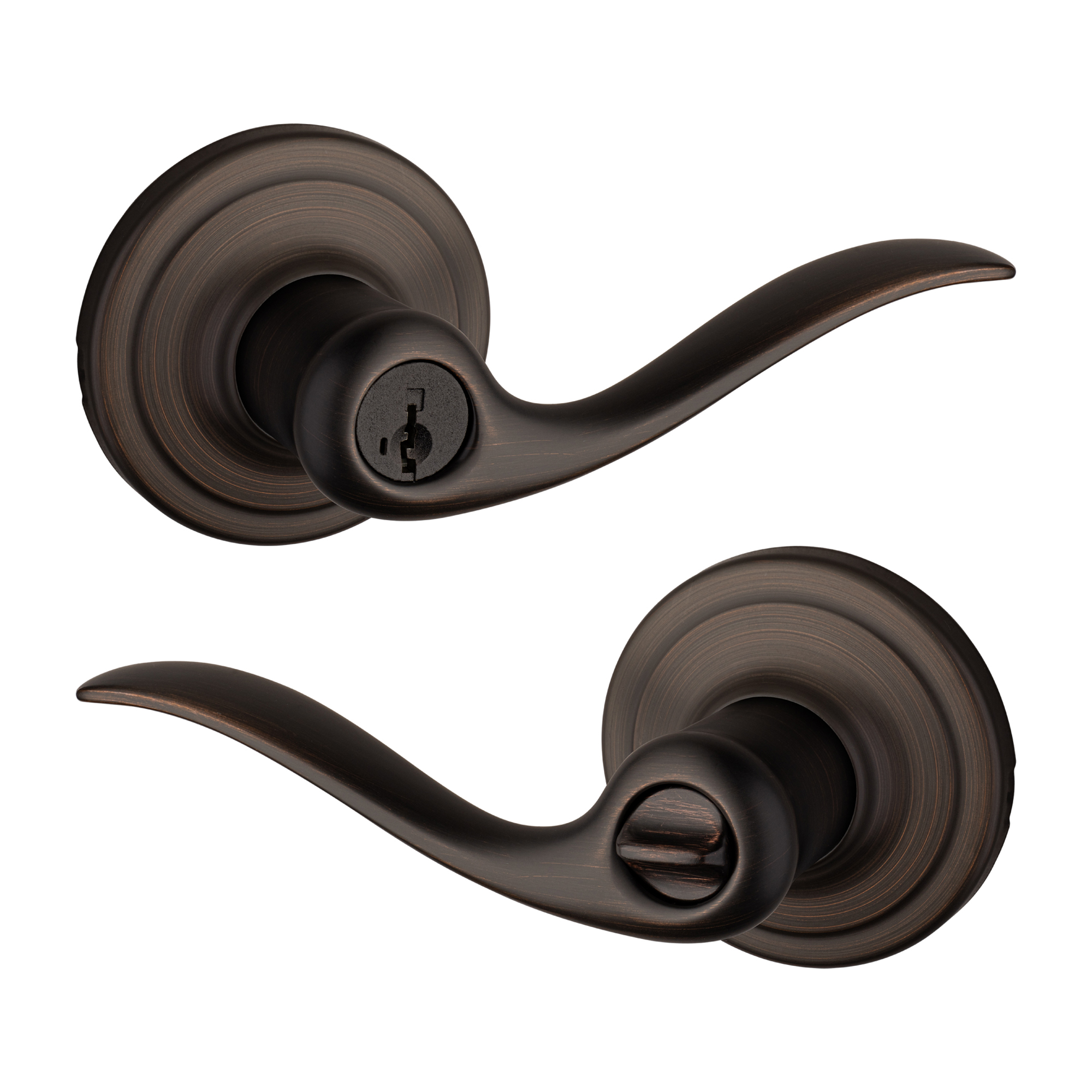 Tustin™ levers feature a smooth, fluid design inspired by gentle ocean waves. With a natural curve that fits comfortably in your hand, opening any door is effortless and intuitive. This sleek yet classic lever offers premium Kwikset® style and quality at a price you’ll love.