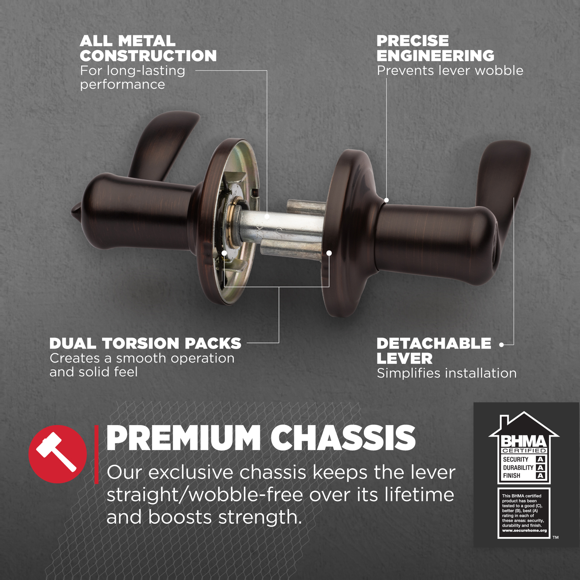 Certified Trusted Quality: Security, Durability and Finish are Grade AAA BHMA certified, designed for the highest level of security and the toughest environments with frequent use