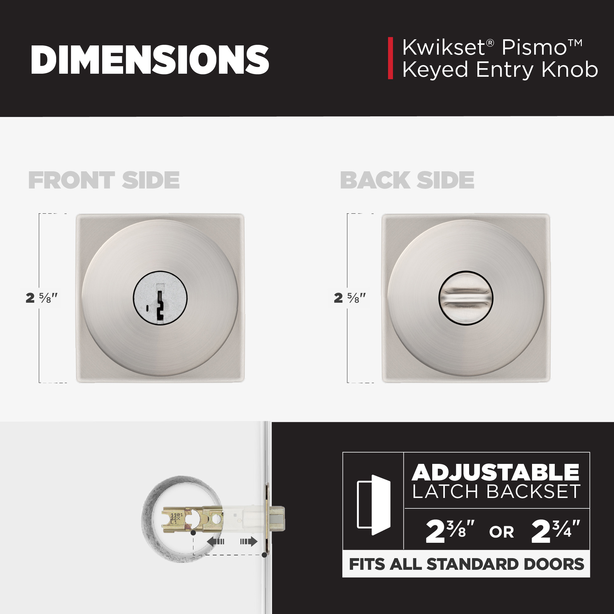Pismo Square Keyed Entry Knob featuring SmartKey Security™ in Satin Nickel