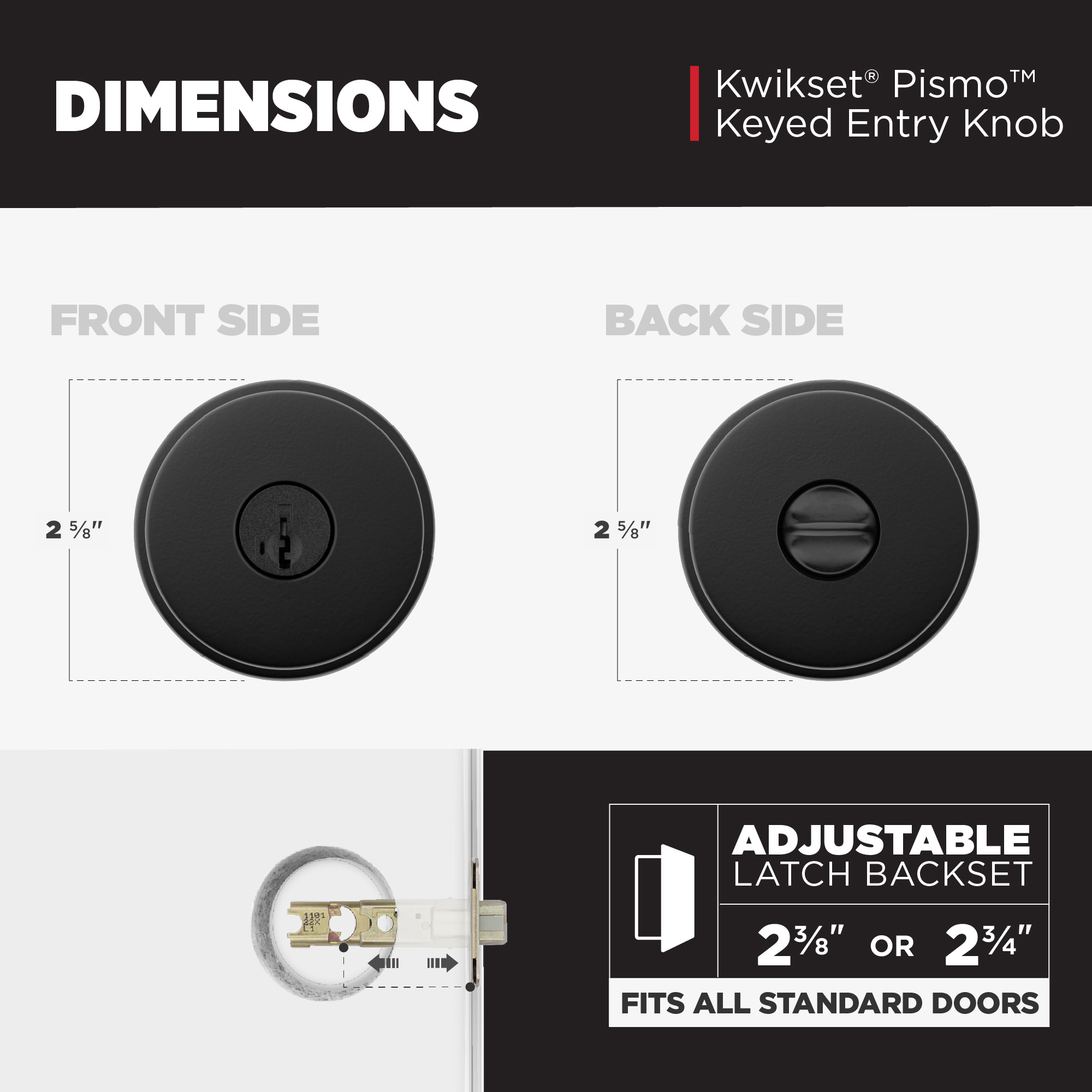Pismo Keyed Entry Knob in Matte Black featuring SmartKey Security