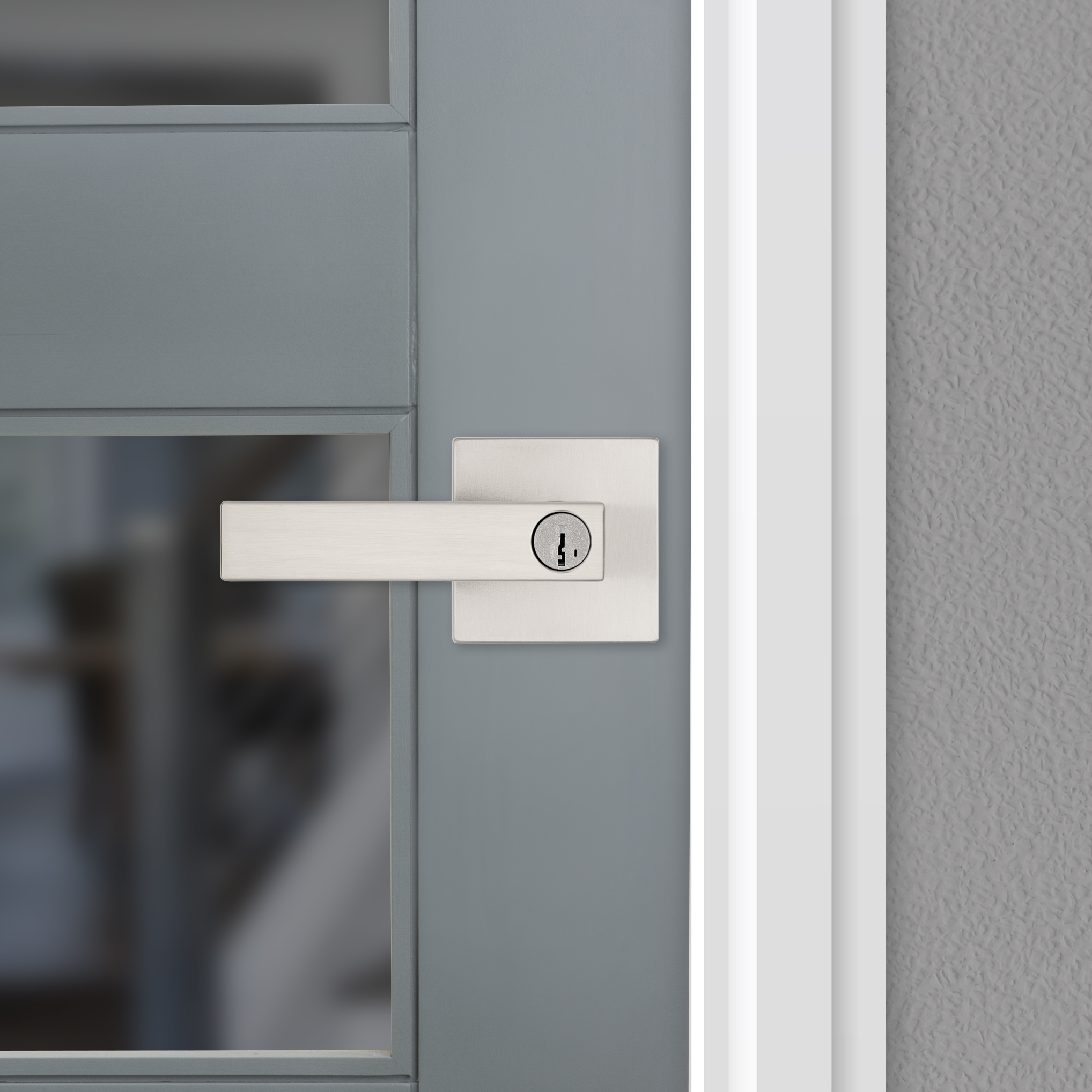 Singapore Square Keyed Entry Lever with Microban featuring SmartKey Security™ Security in Satin Nickel
