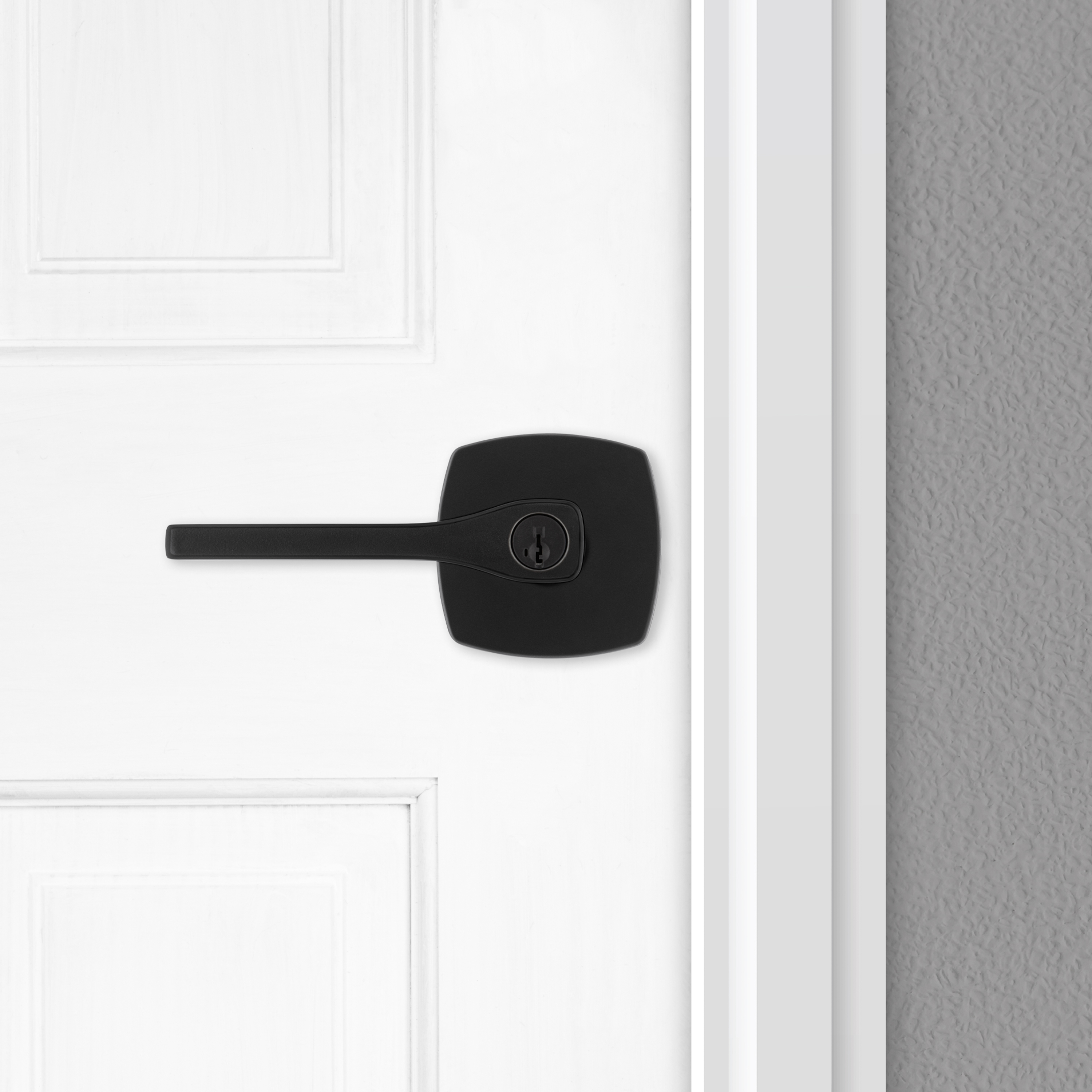 Tripoli Keyed Entry Lever with Soft Modern Rose featuring SmartKey Security™ in Matte Black